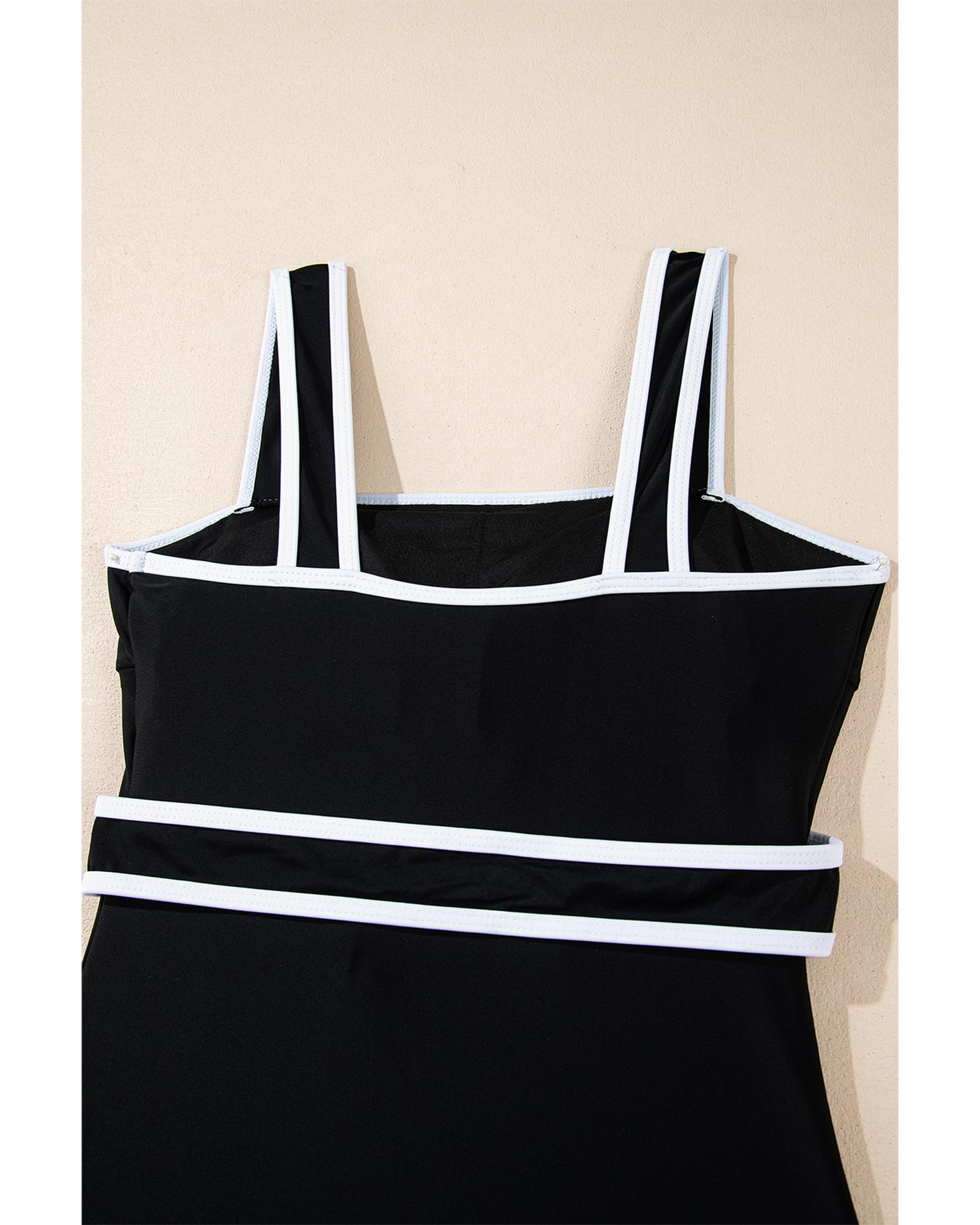Black Colorblock Edge Belted One Piece Swimsuit – L