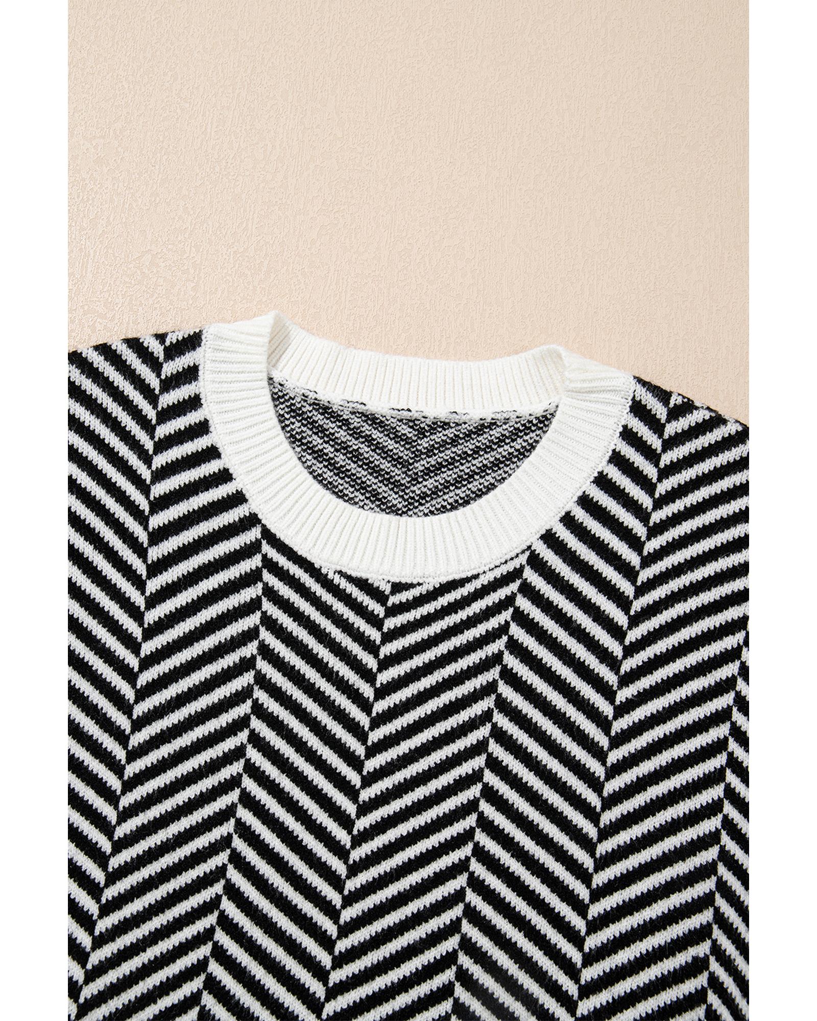 Black Contrast Edge Crew Neck Drop Shoulder Sweater – L