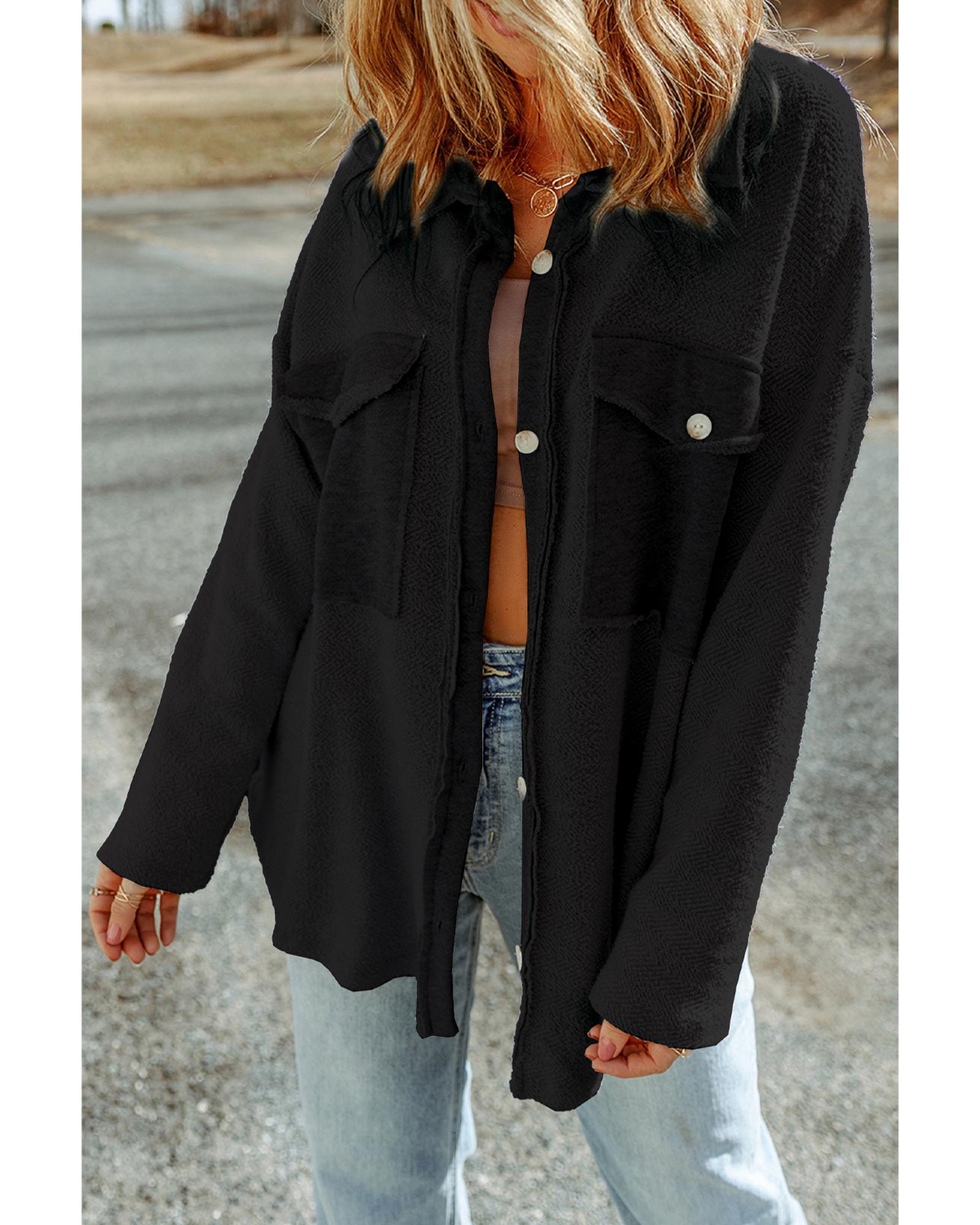 Black Contrast Flap Pockets Relaxed Shacket – 2XL