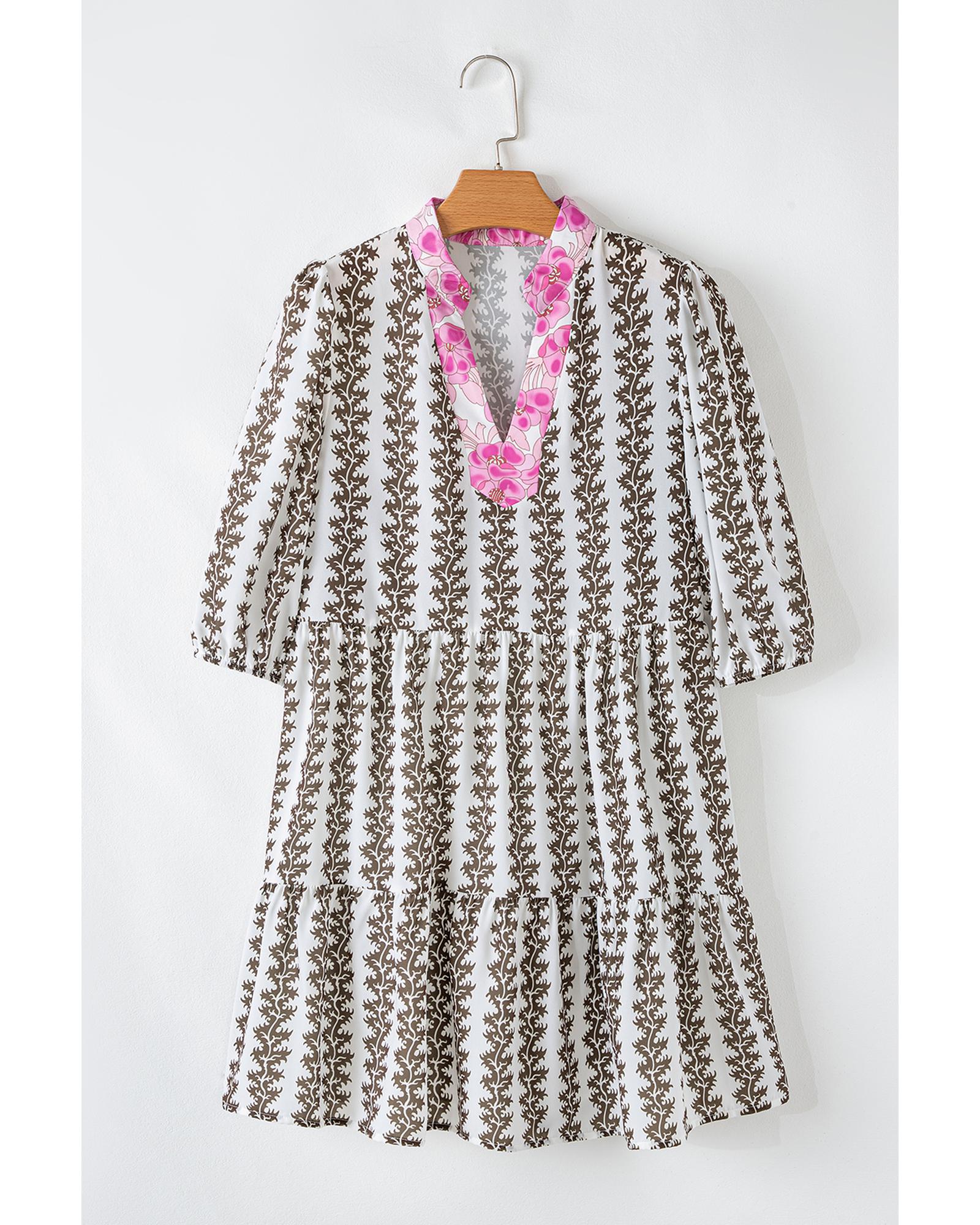 Black Contrast Floral V Neck Printed Bracelet Sleeve Dress – M