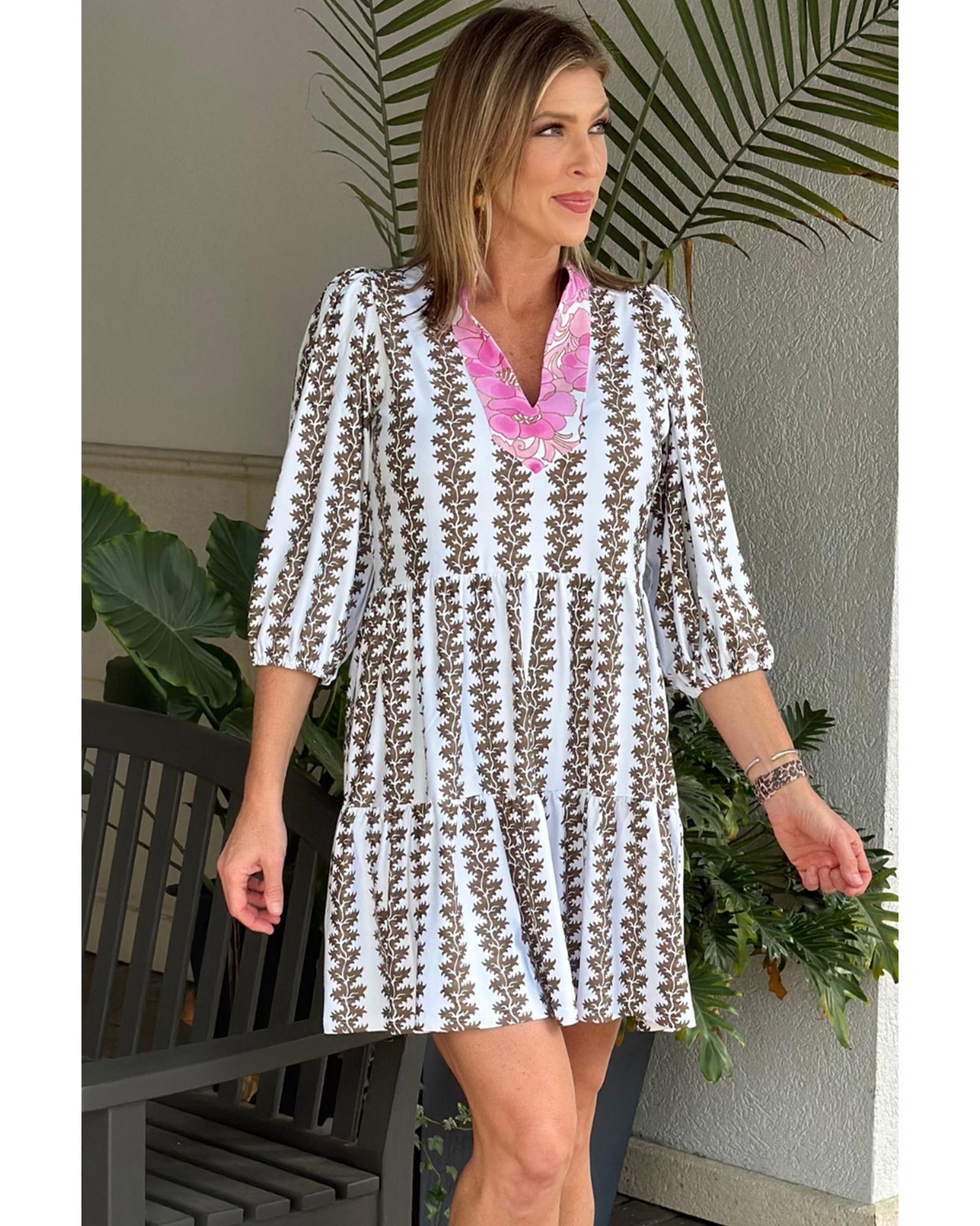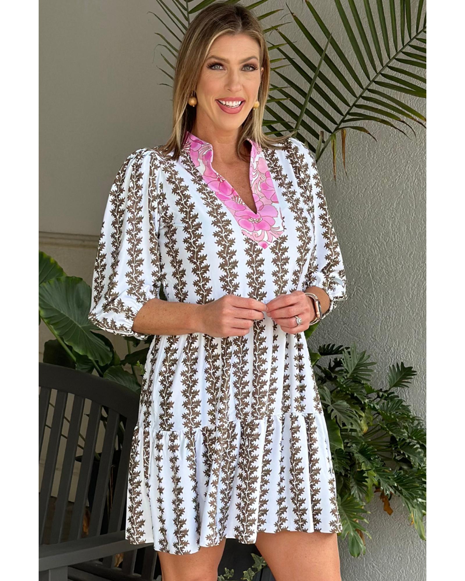 Black Contrast Floral V Neck Printed Bracelet Sleeve Dress – S