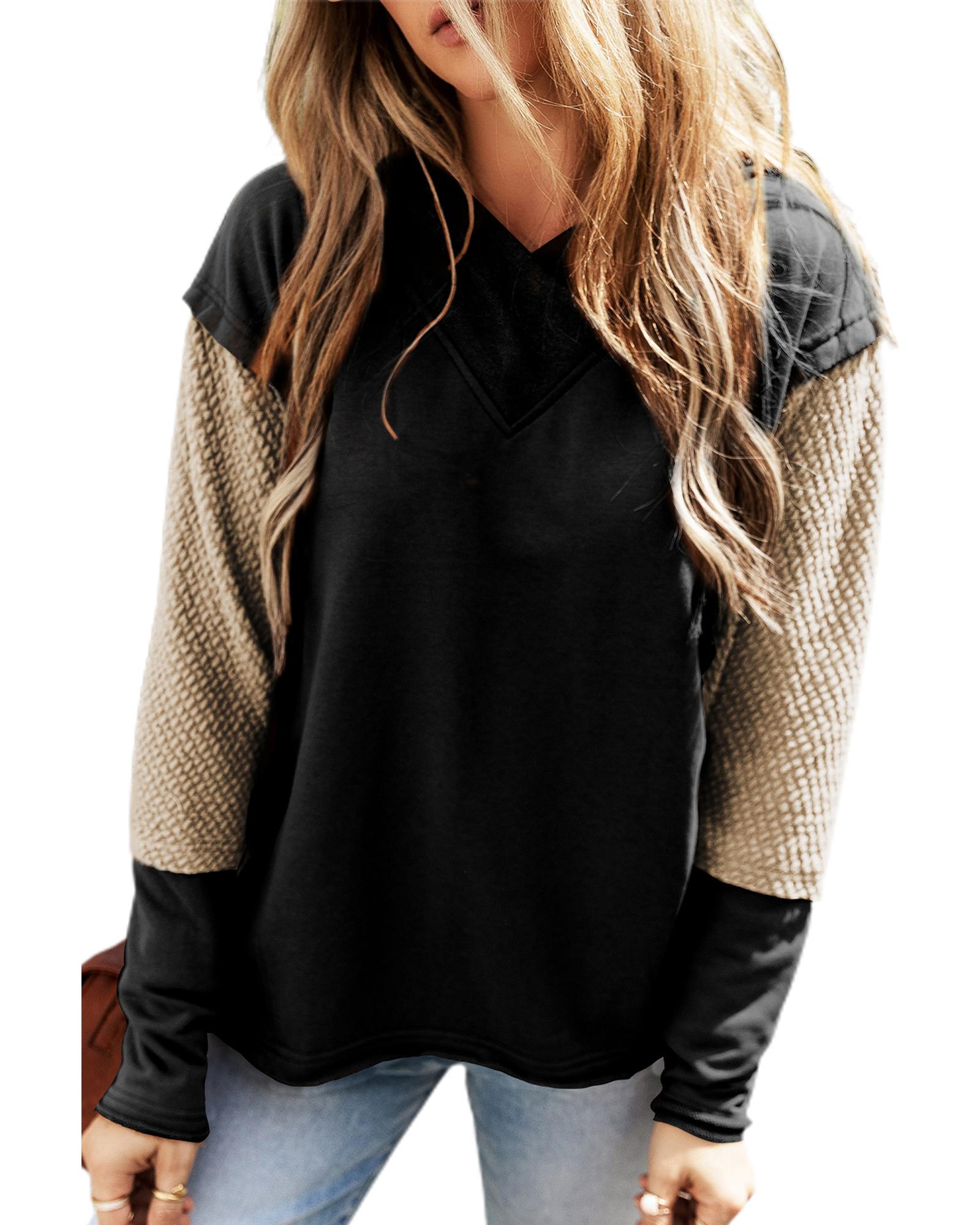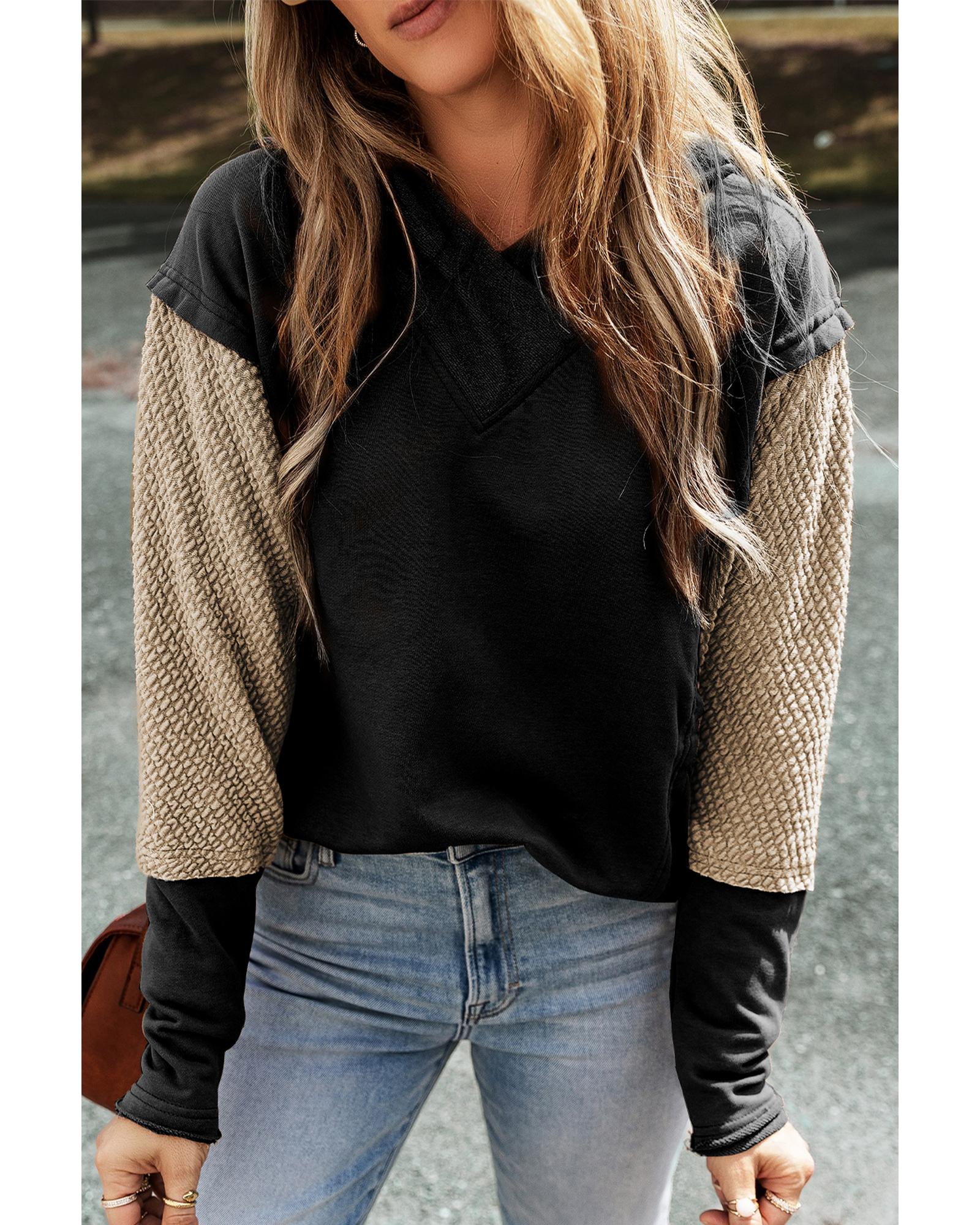 • Black Contrast Sleeves Patchwork Colorblock Hoodie