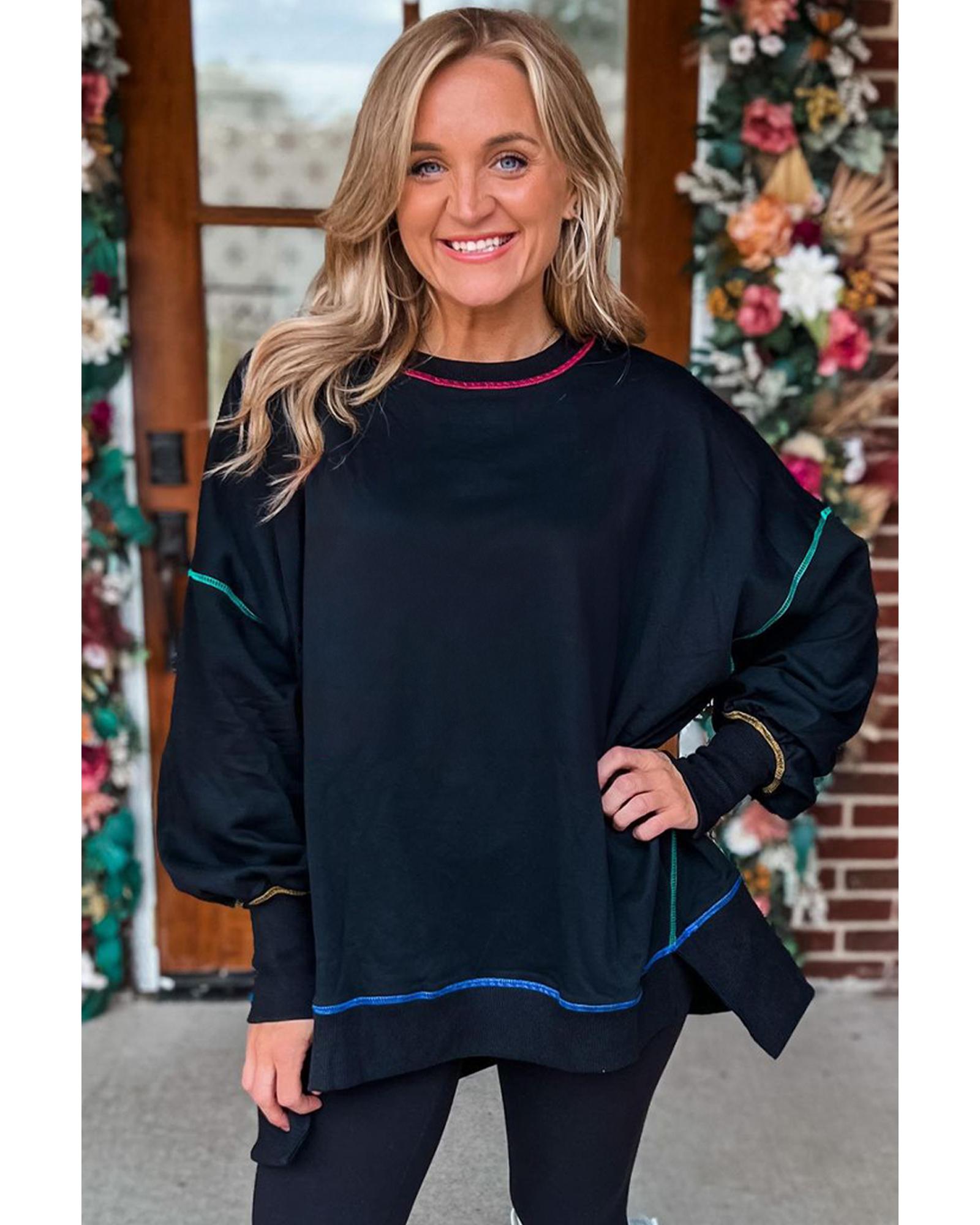 Black Contrast Stitching Split Baggy Sweatshirt – M