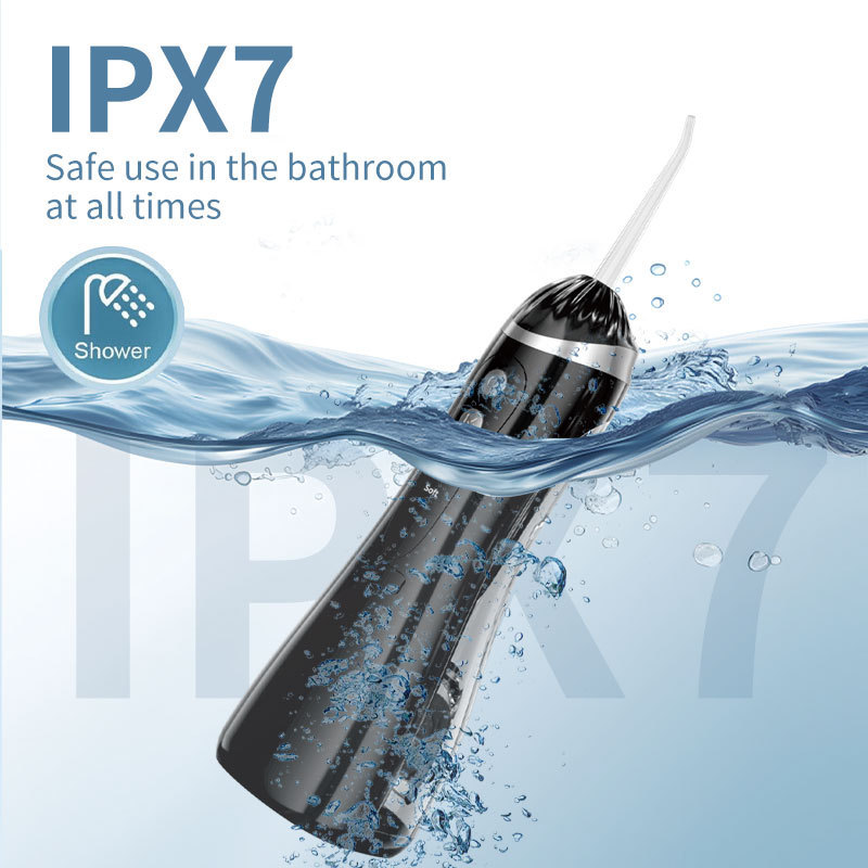 Black Cordless Water Flosser & Oral Irrigator – Portable Teeth Cleaner with 3 Modes & 4 Jet Tips