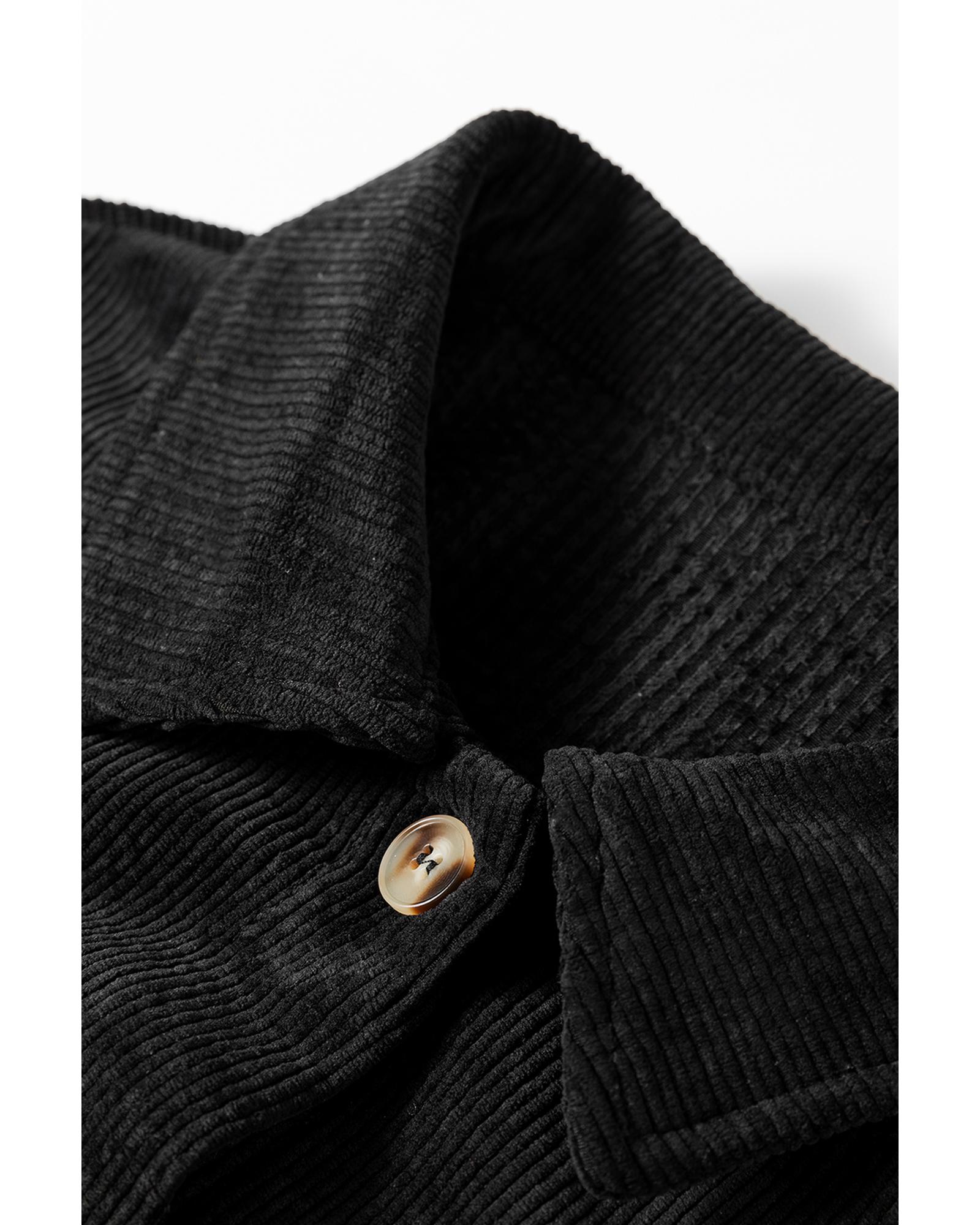Black Corduroy Flap Pocket Button Up Shacket – XL
