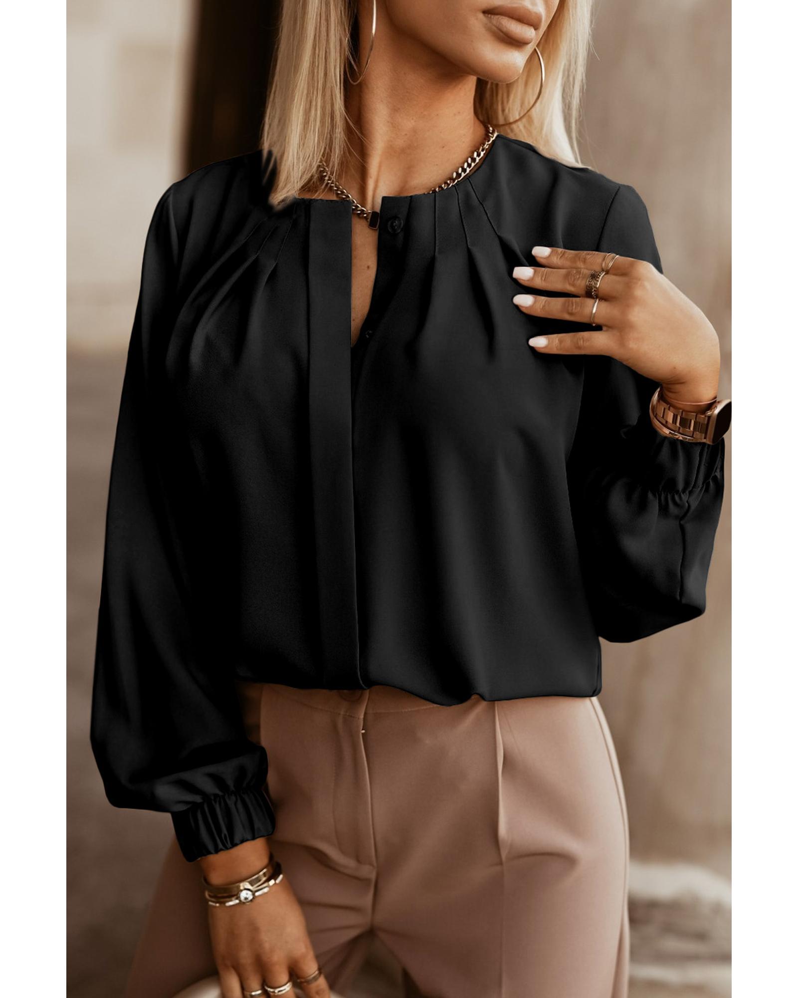 Black Crew Neck Gathered Stretch Cuff Shirt – M