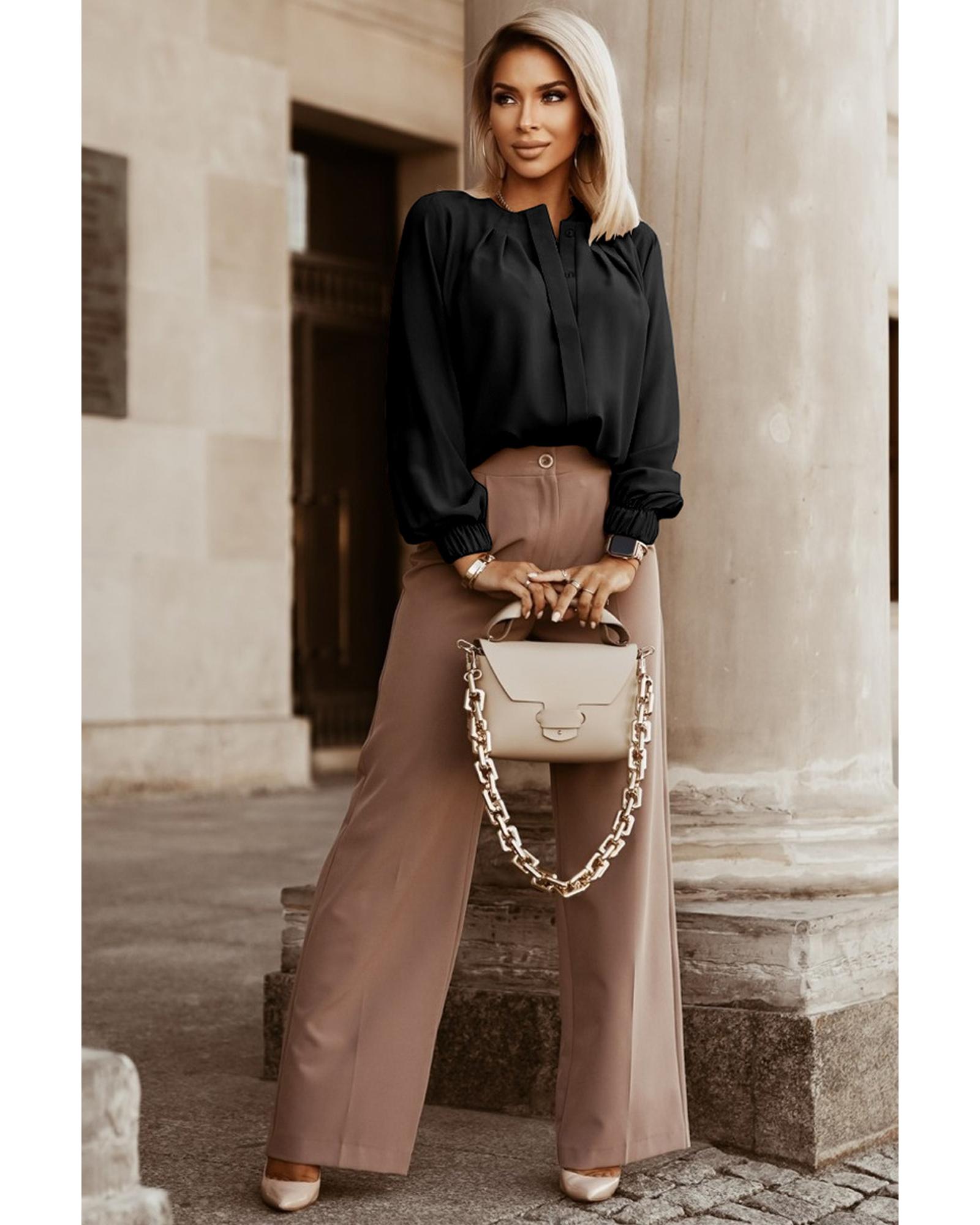 Black Crew Neck Gathered Stretch Cuff Shirt – XL