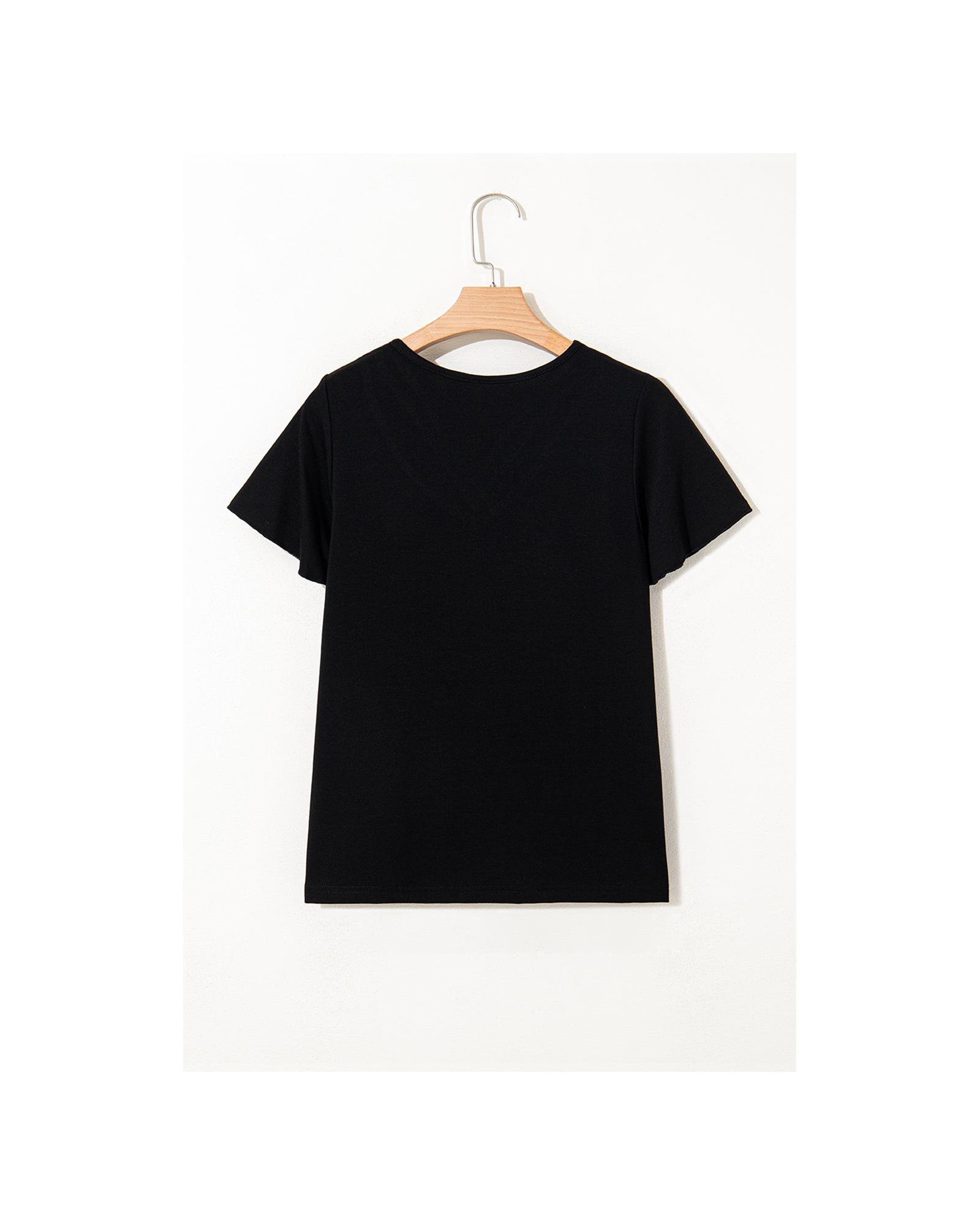 Black Crisscross V Neck Butterfly Sleeve T Shirt – L