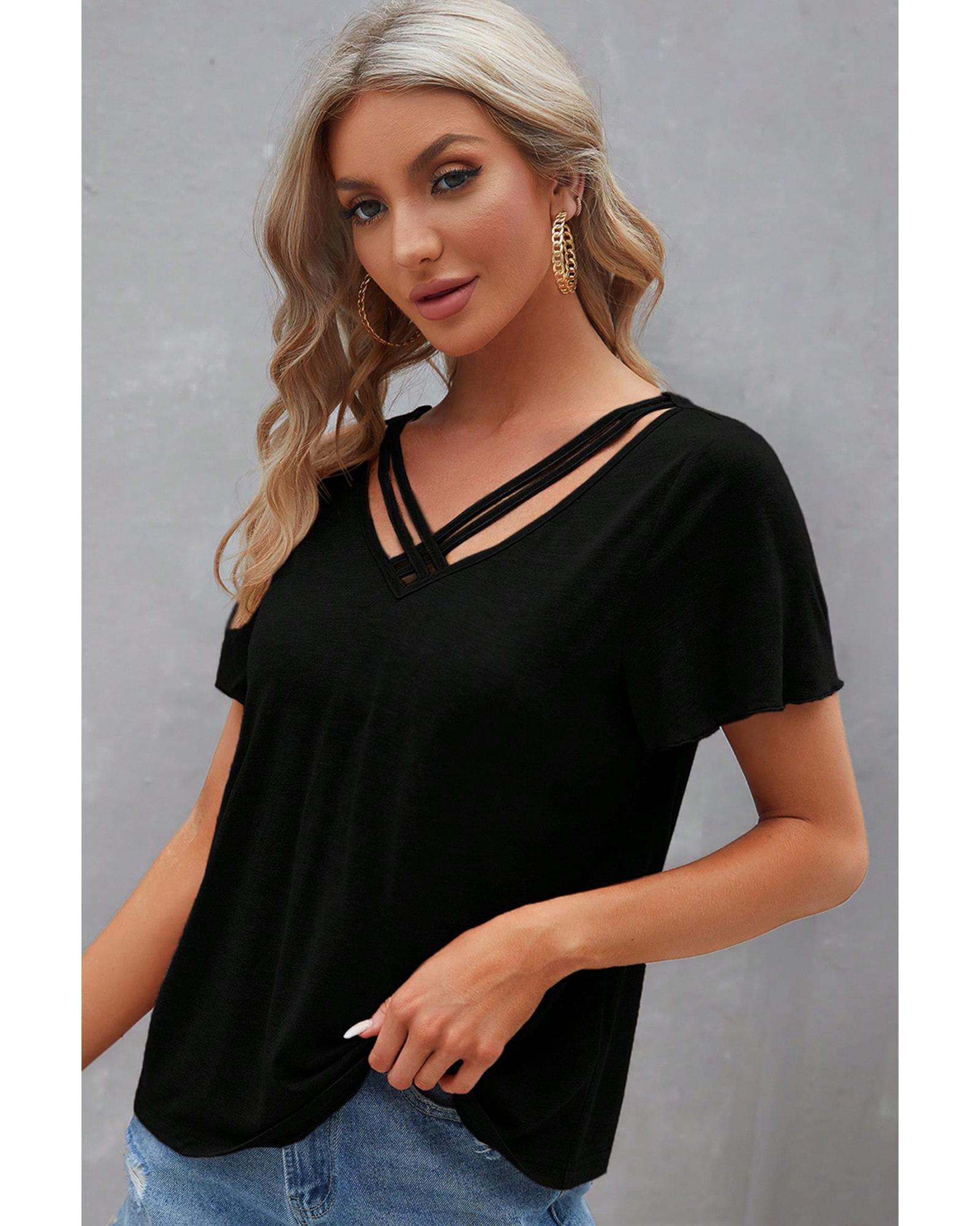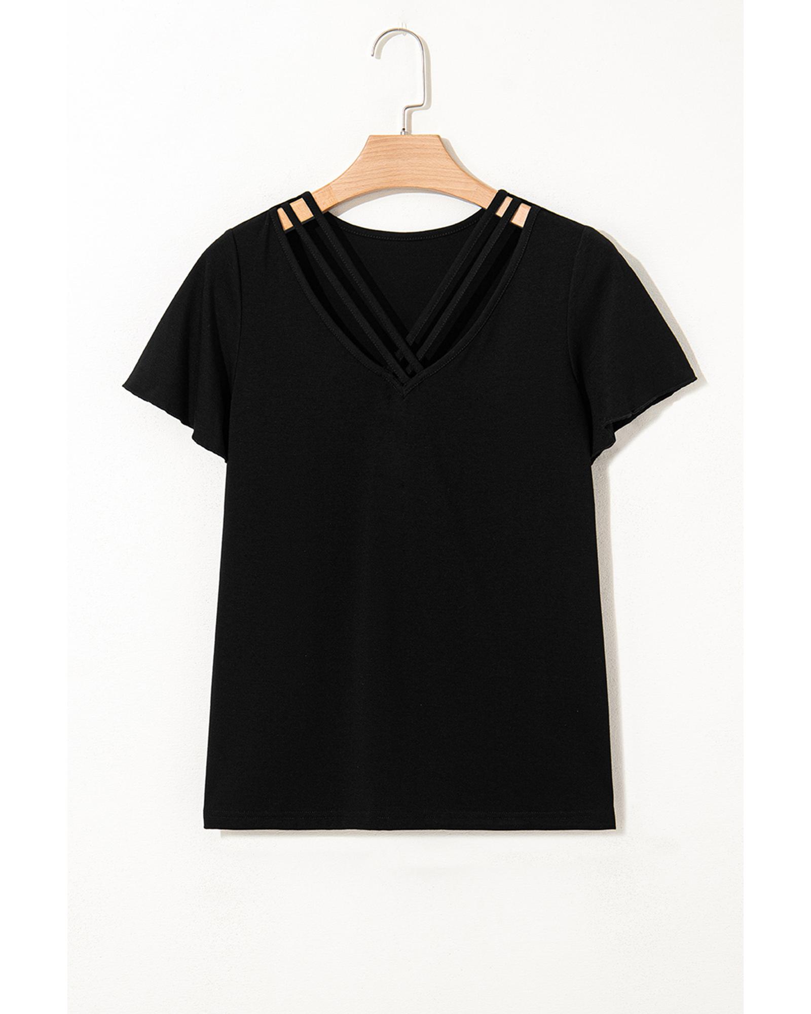 Black Crisscross V Neck Butterfly Sleeve T Shirt – XL