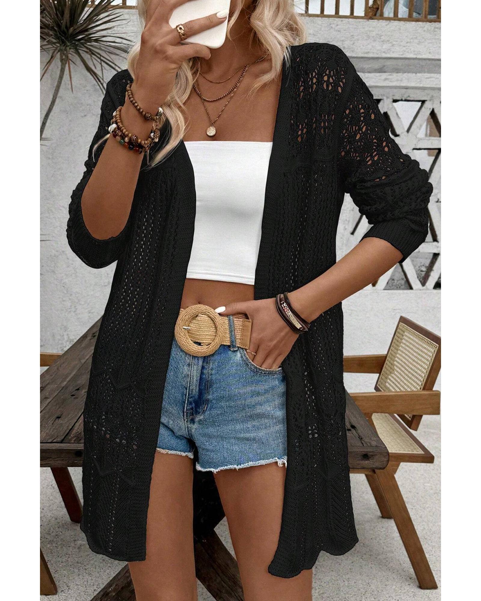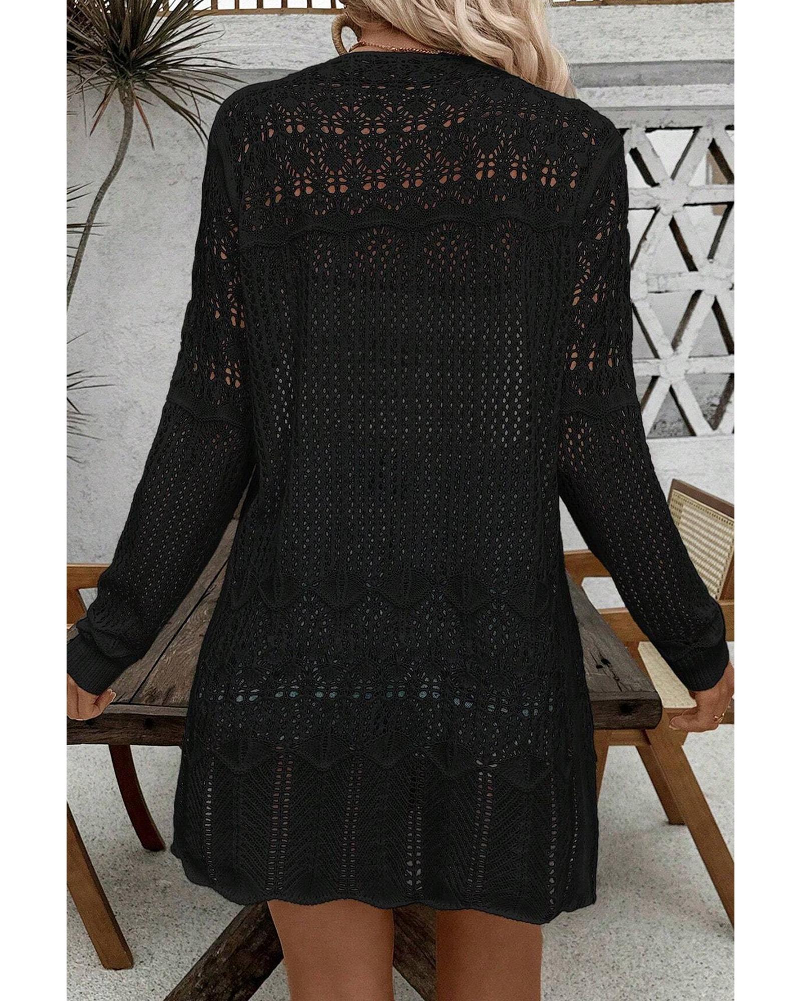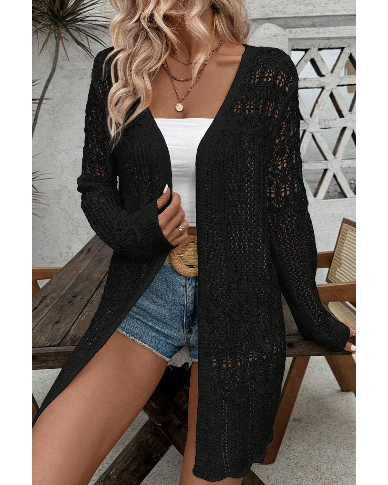 Black Crochet Hollow Out Open Front Cardigan – S
