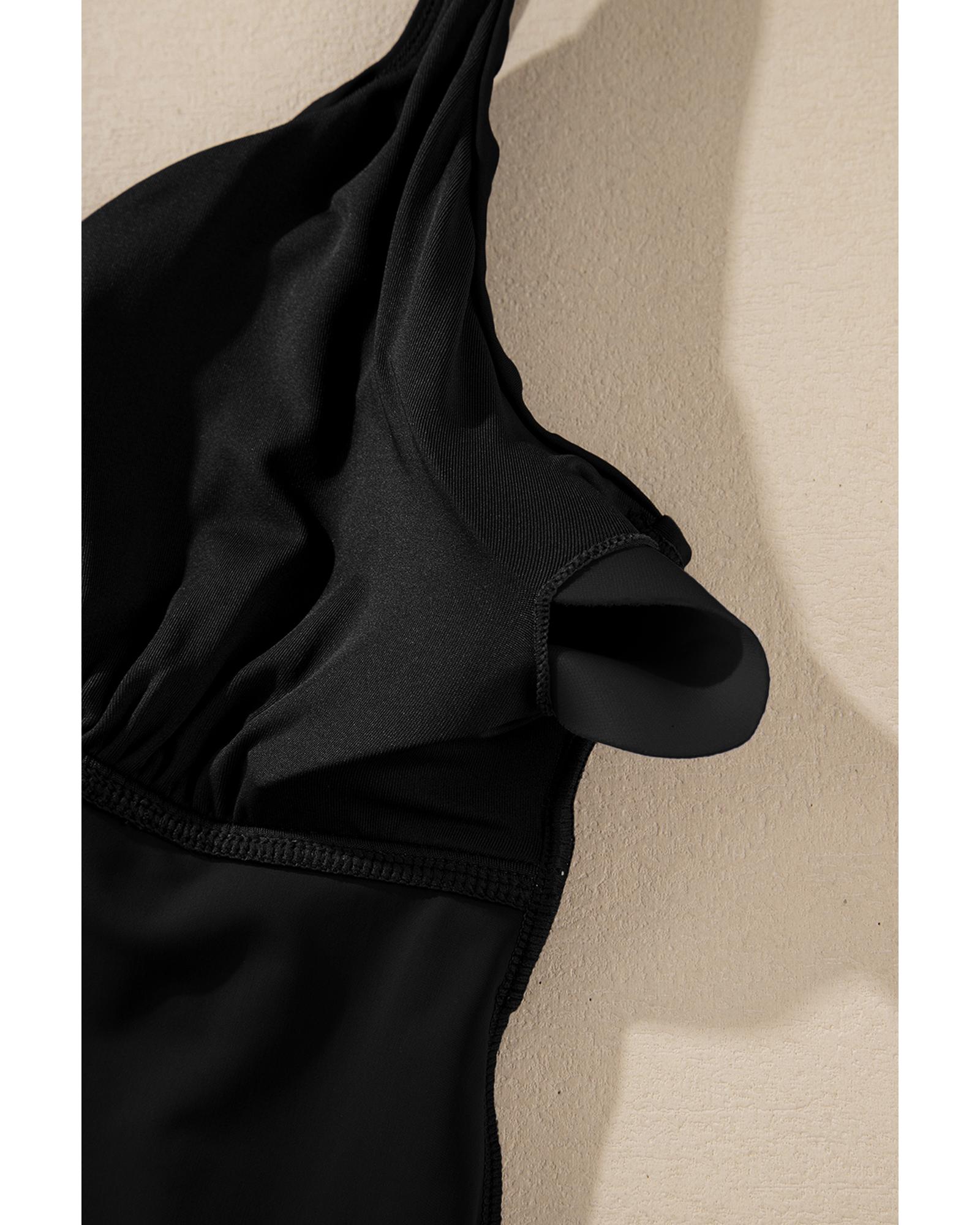 Black Crossed V Neck Adjustable Strap Babydoll Tankini Top – XL