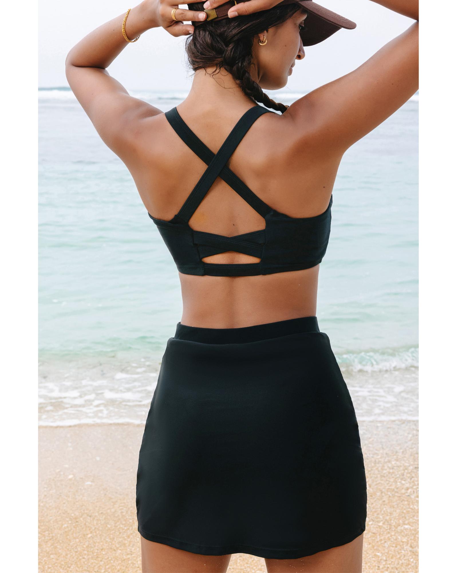 Black Crossover Bikini Tank and Skort Swimwear – M