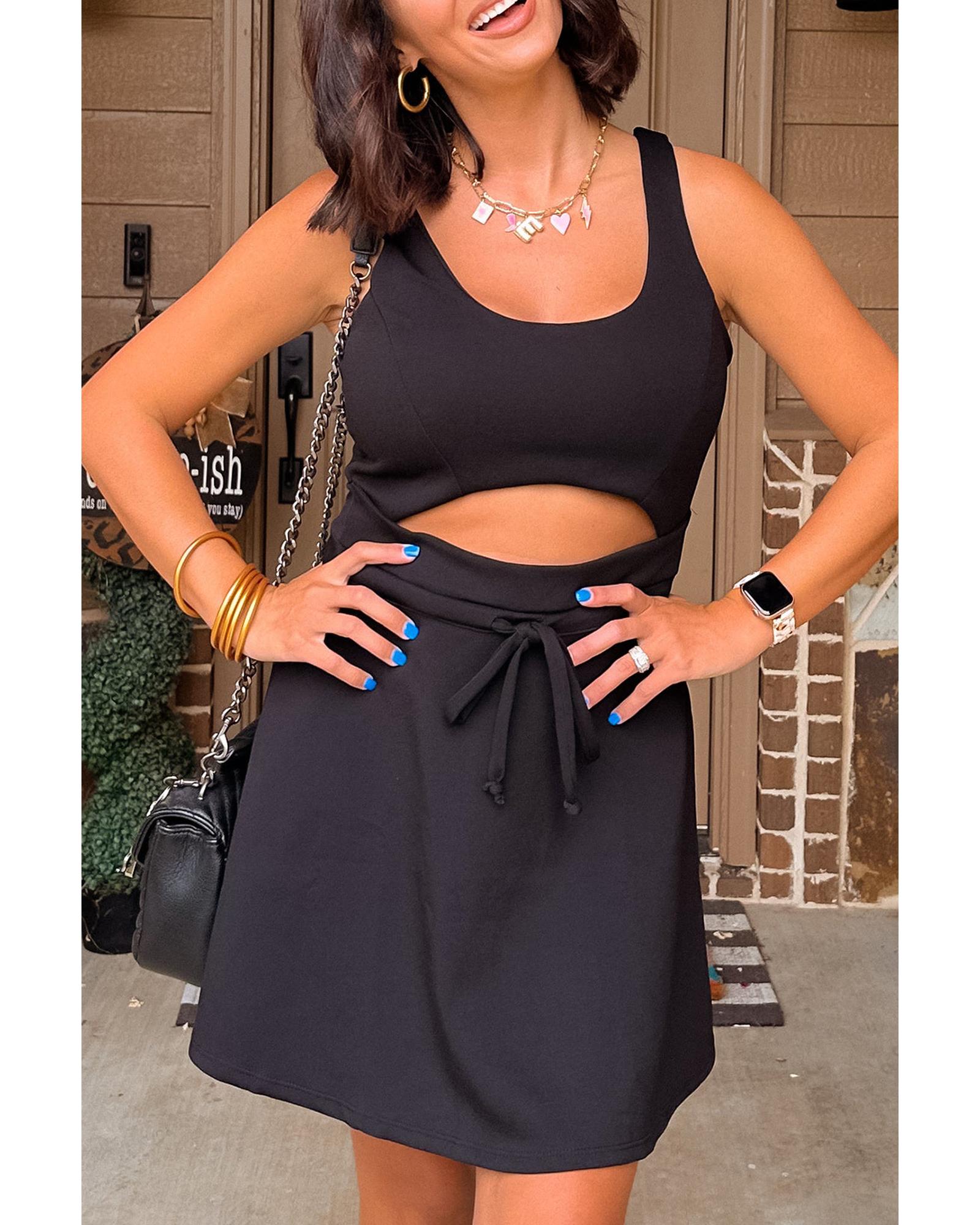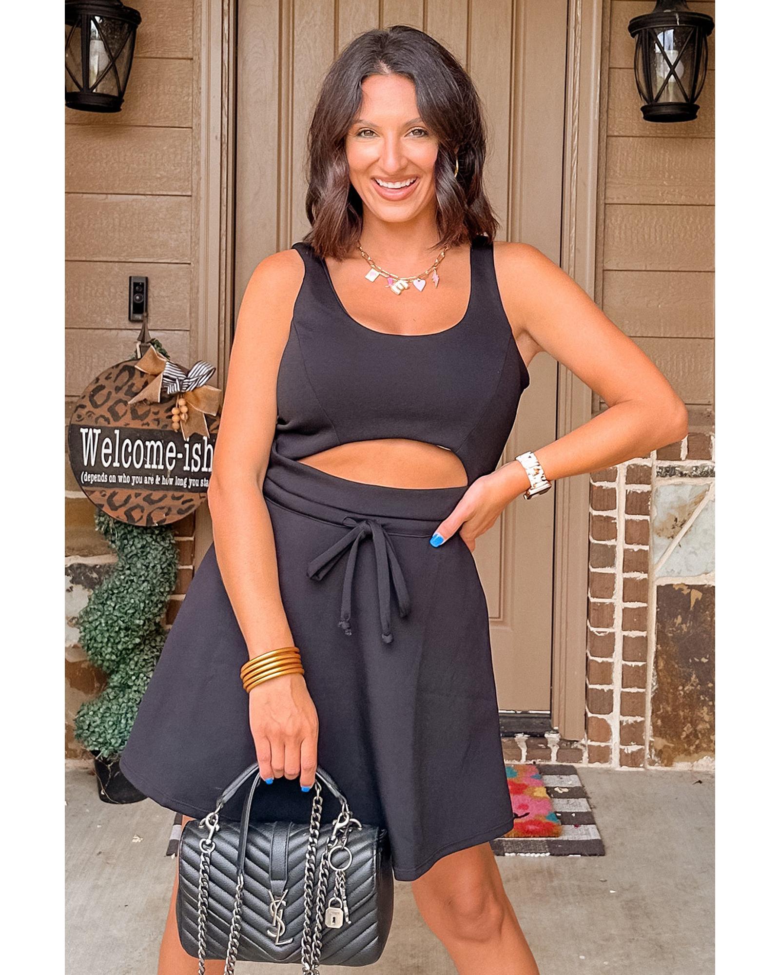 Black Cut Out Front High Waist Tank Mini Dress – M