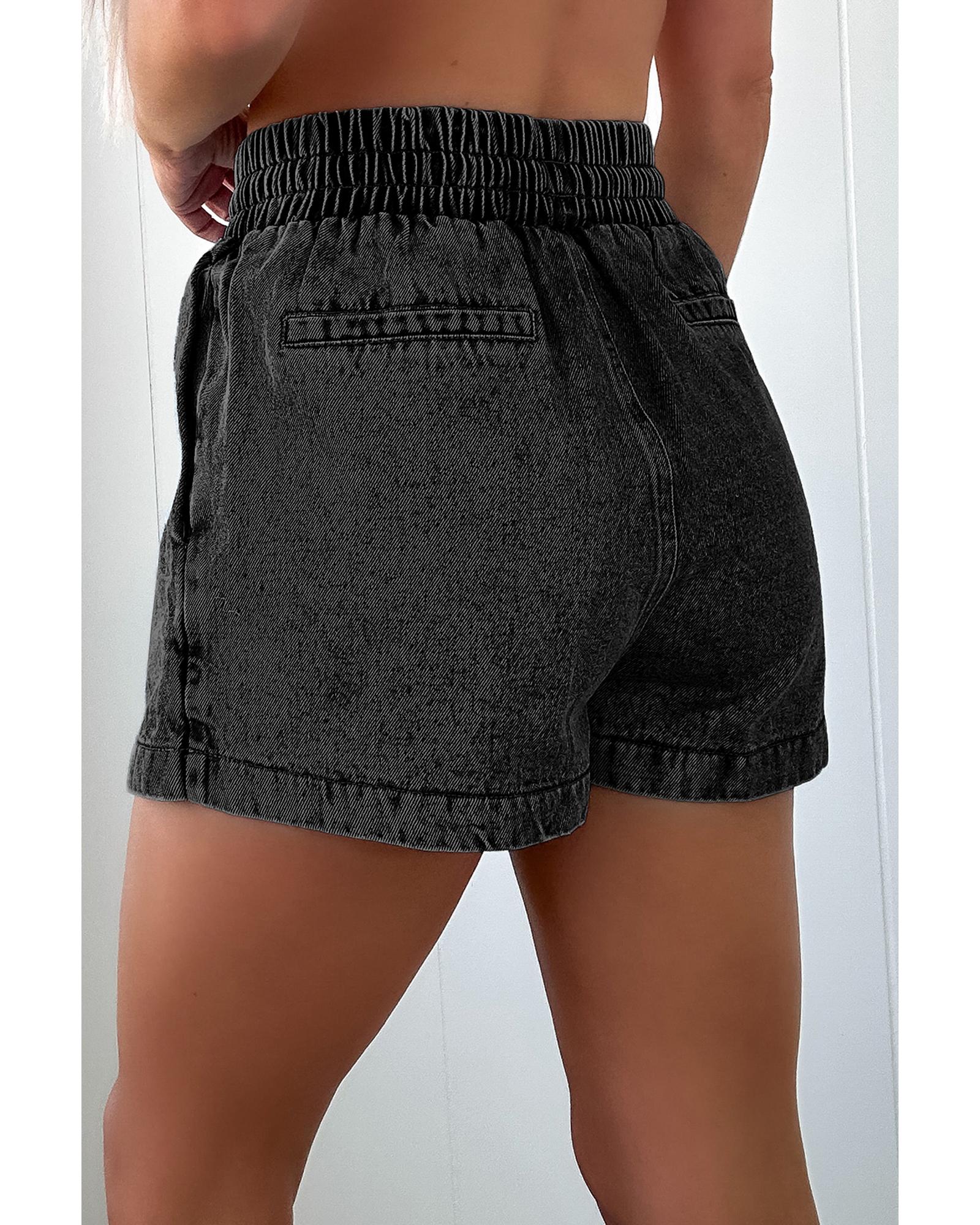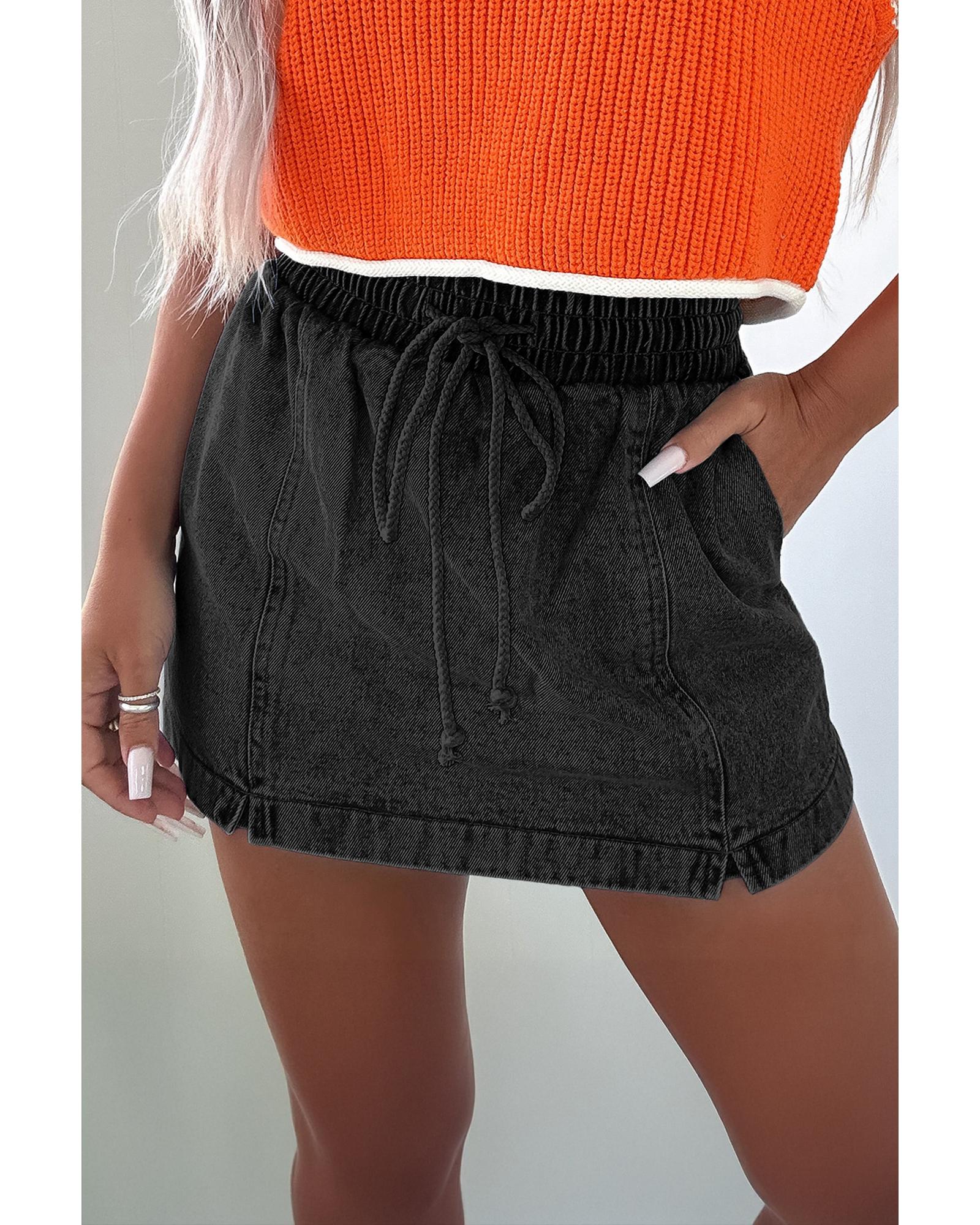 • Black drawstring high waist pocketed denim shorts