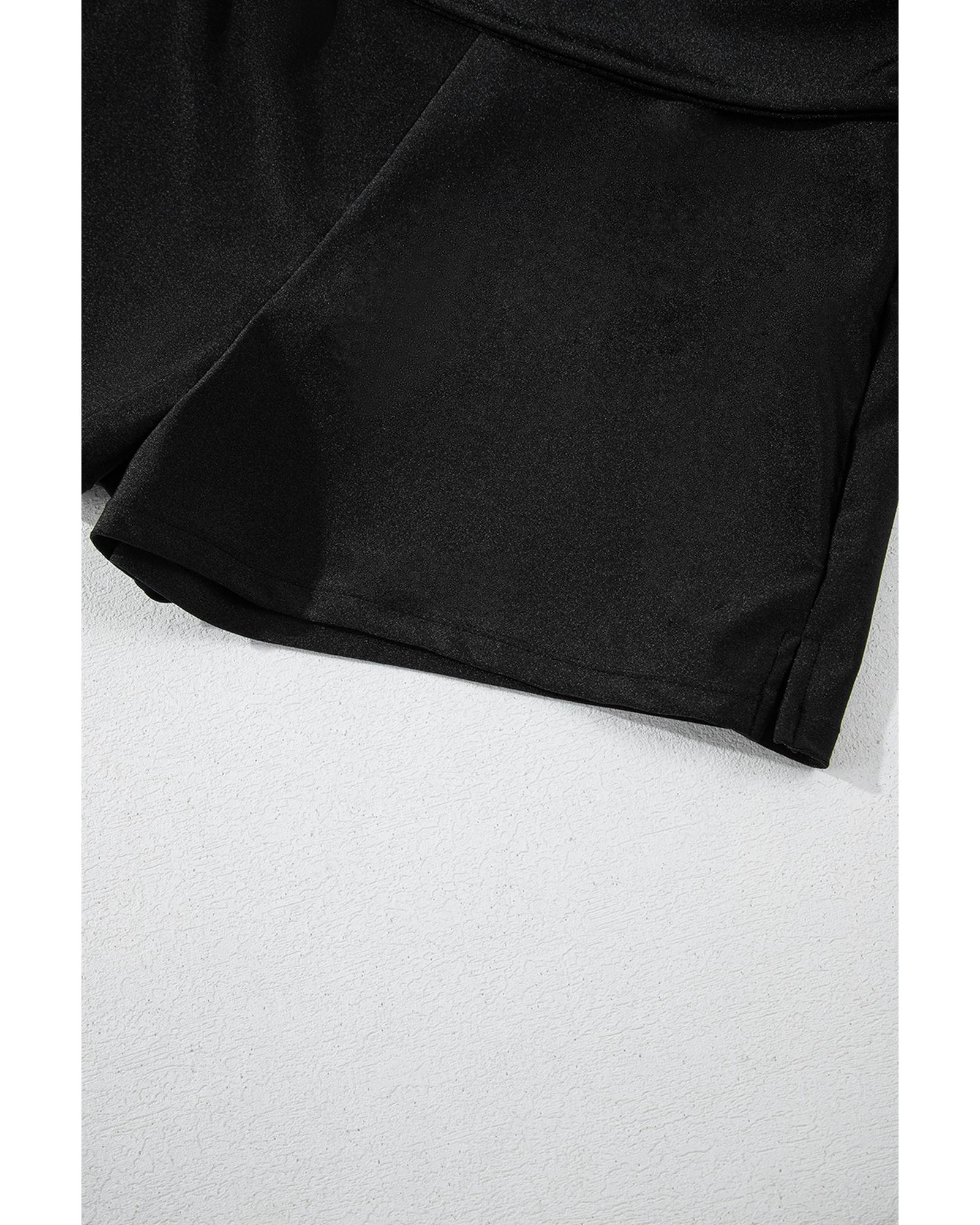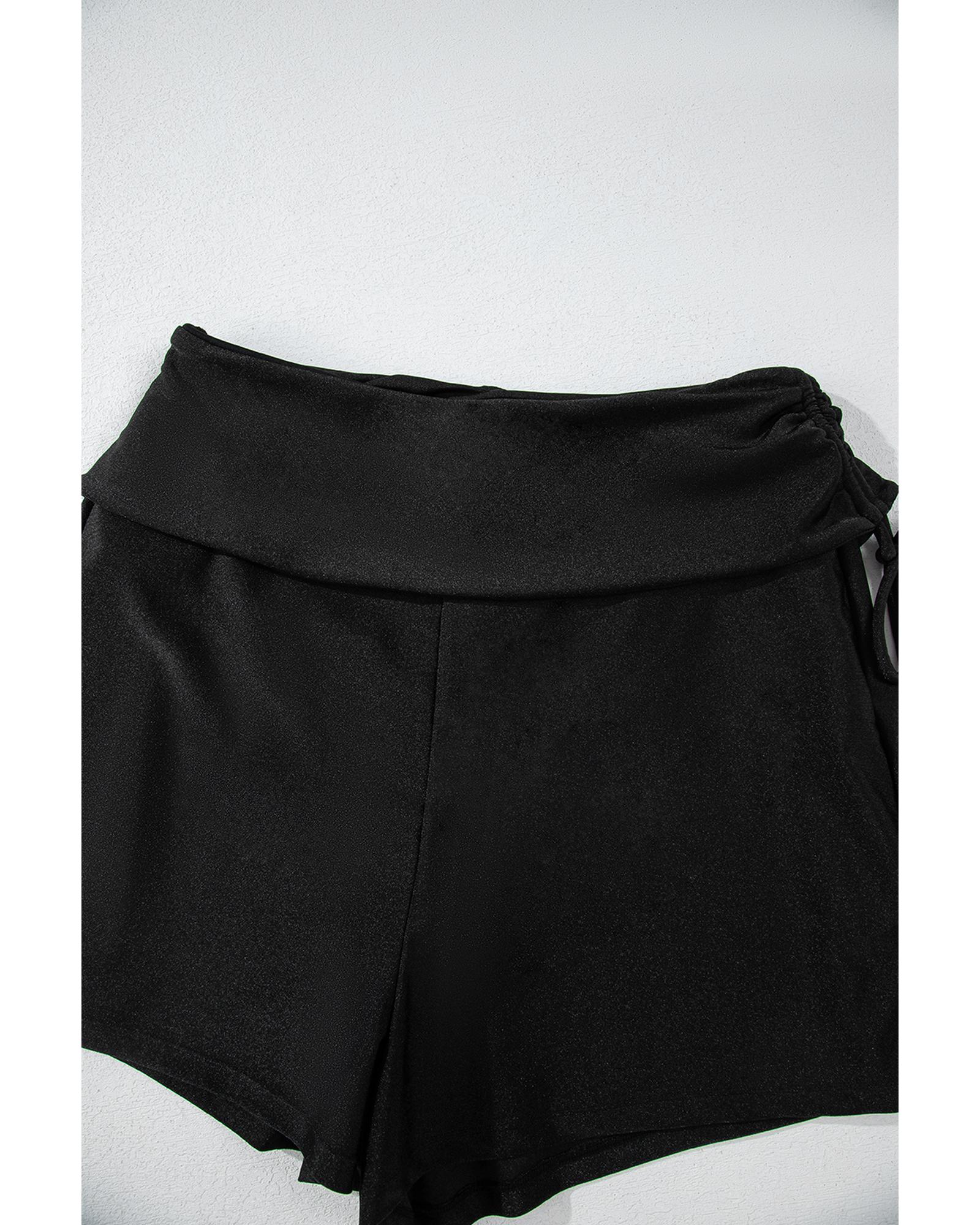 Black Drawstring Ruched High Waist Loose Swim Shorts – L