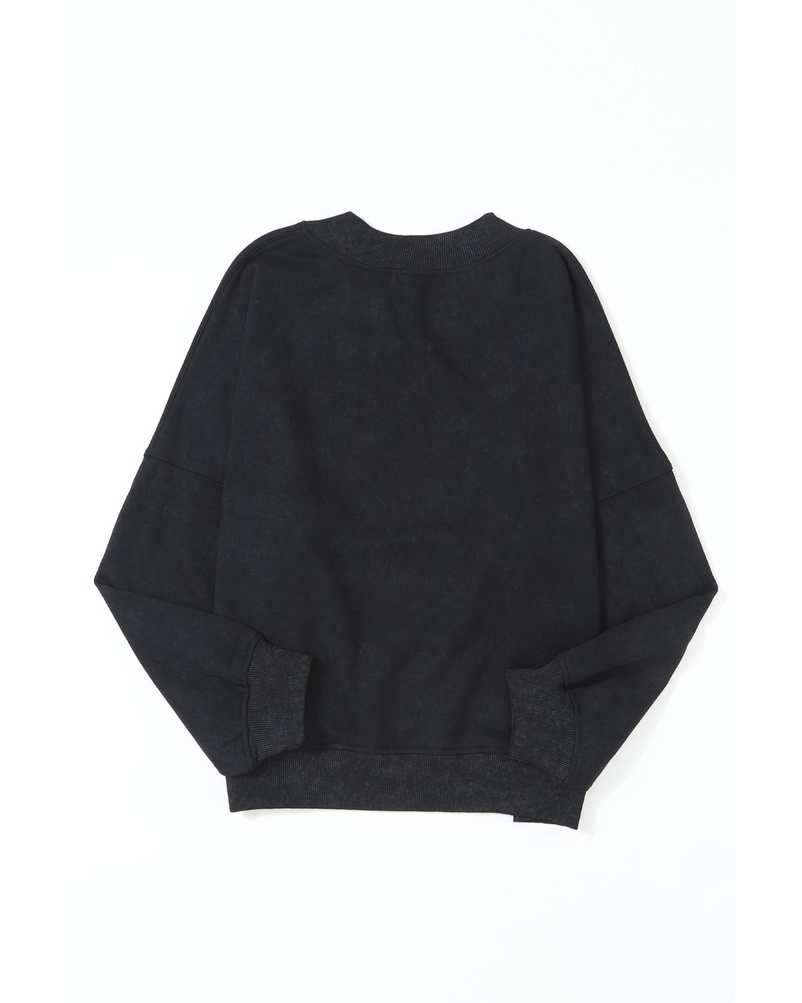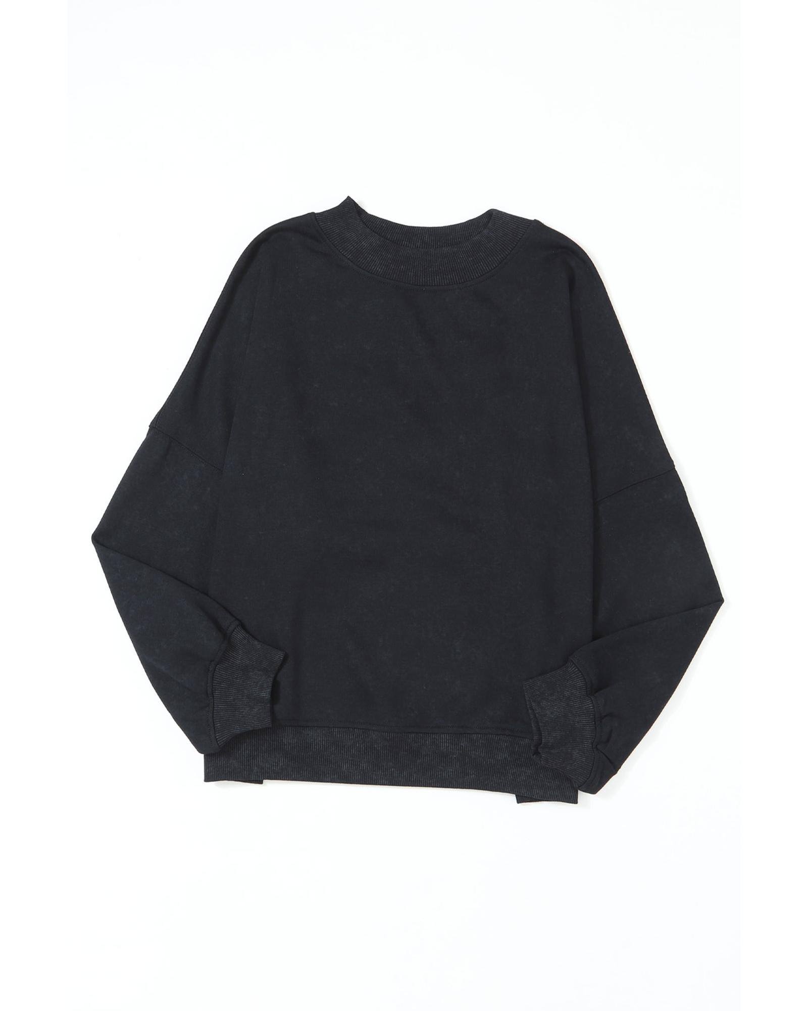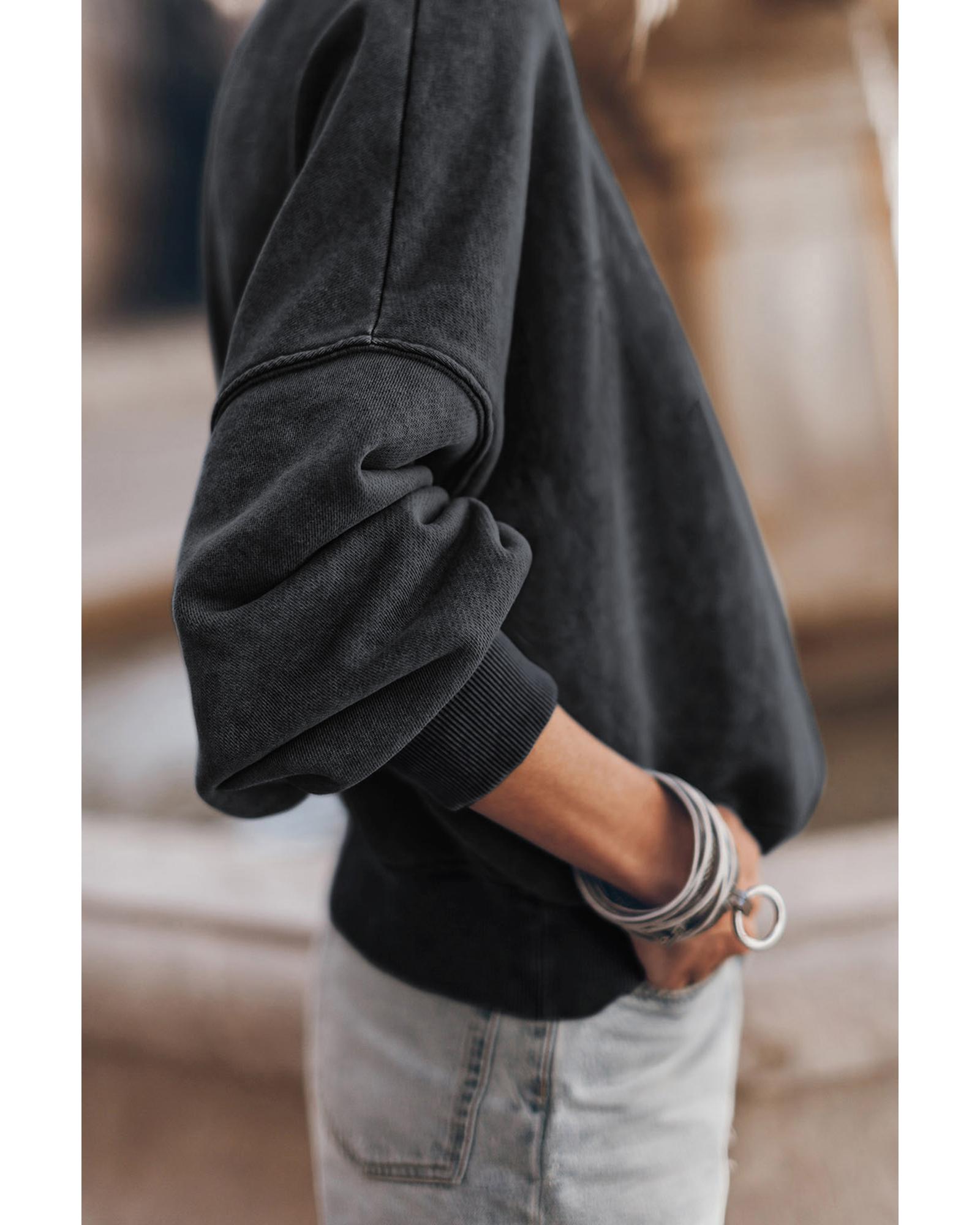 Black Drop Shoulder Crew Neck Pullover Sweatshirt – M