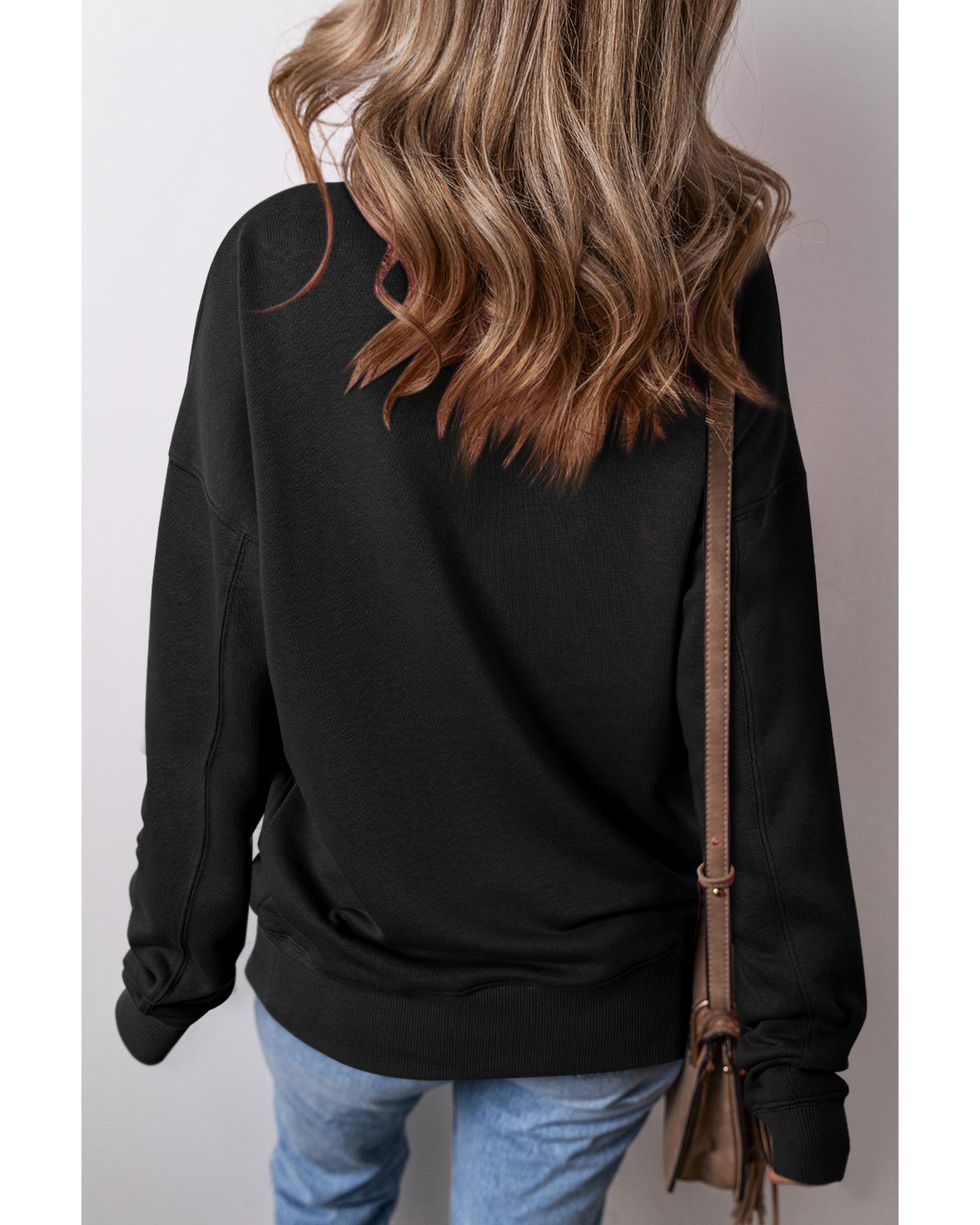 Black Drop Shoulder Crisscross Stitching Pocketed Loose Sweatshirt – S