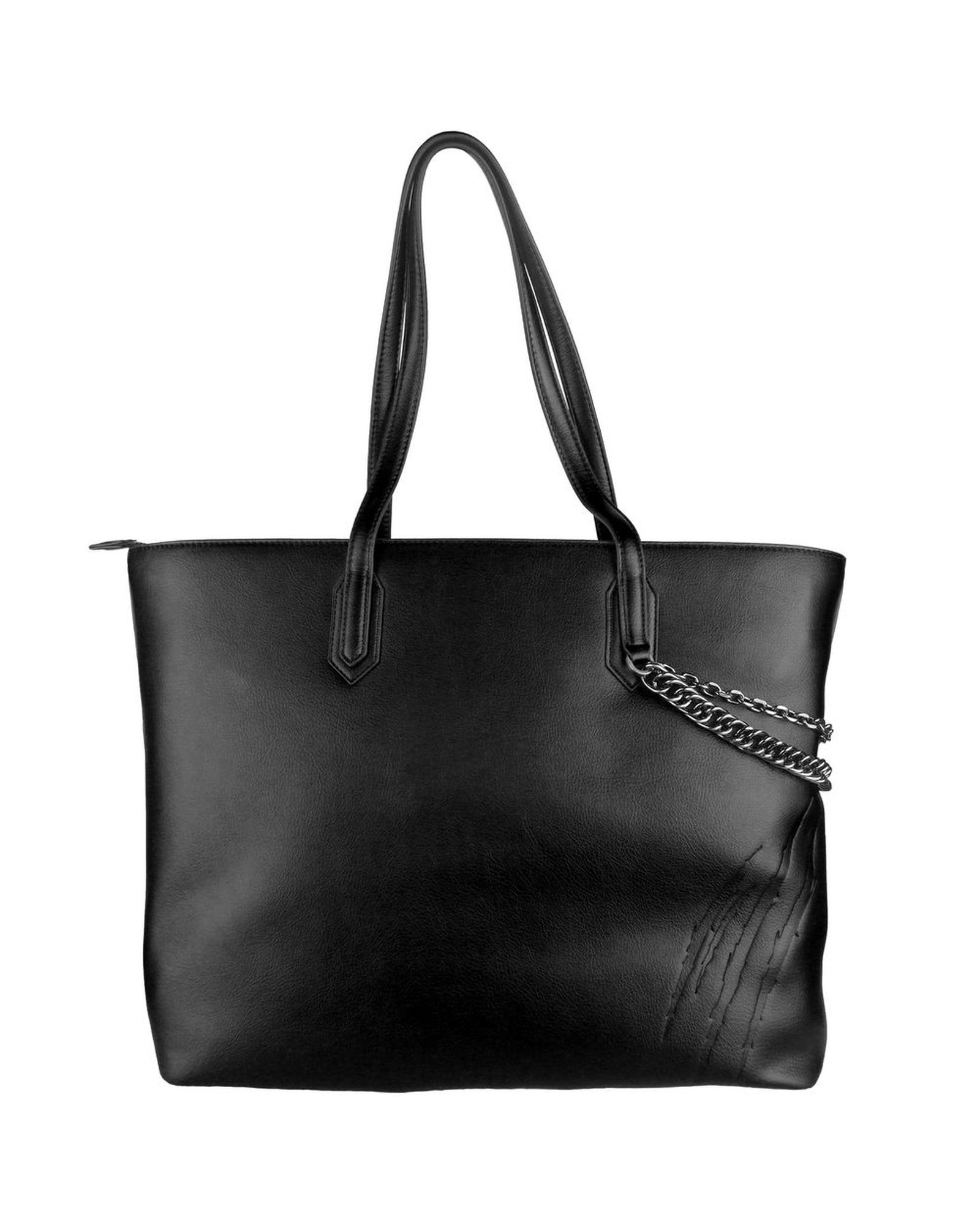 Black Eco-Leather Plein Sport Shopping Bag with Chain Detail One Size Women