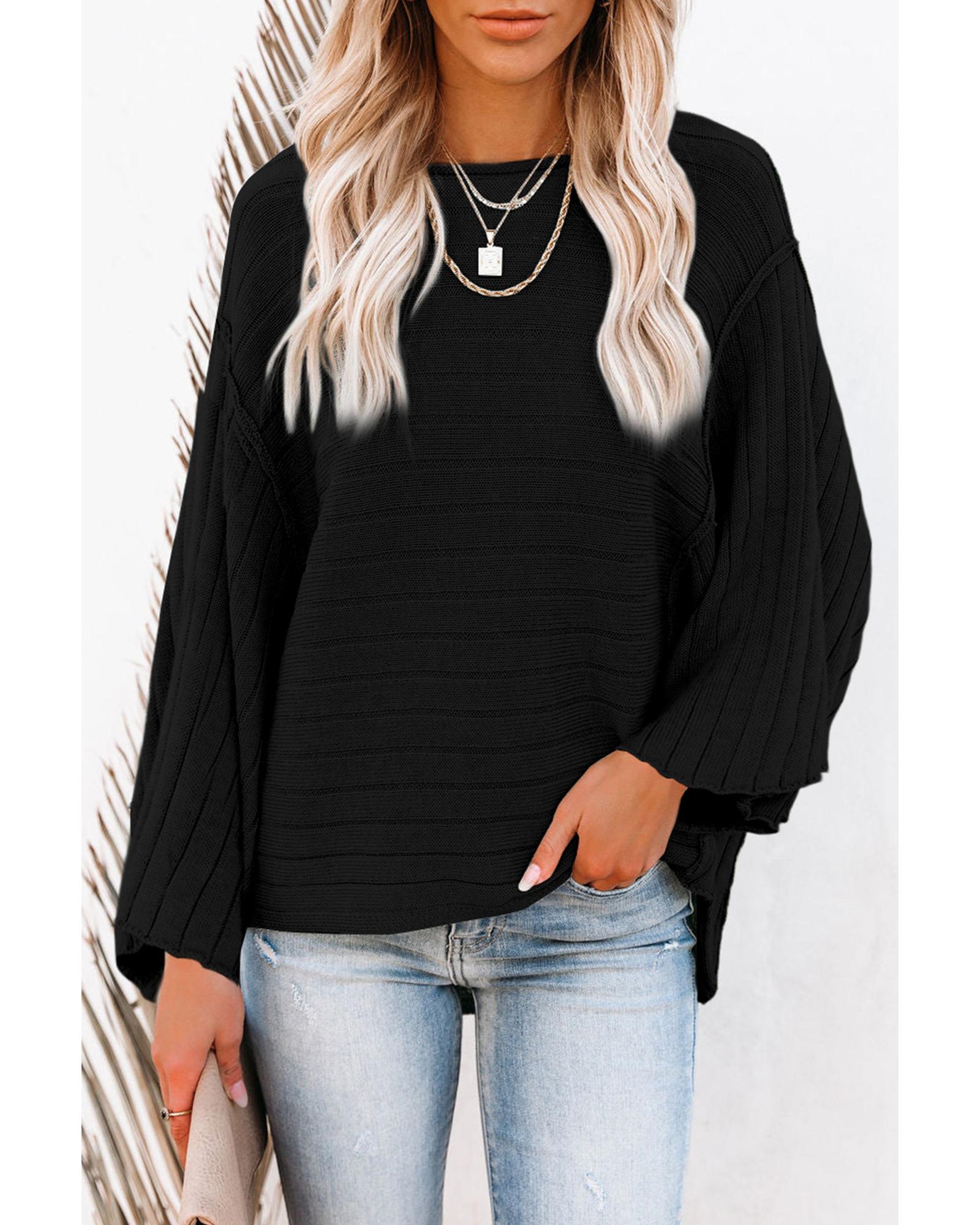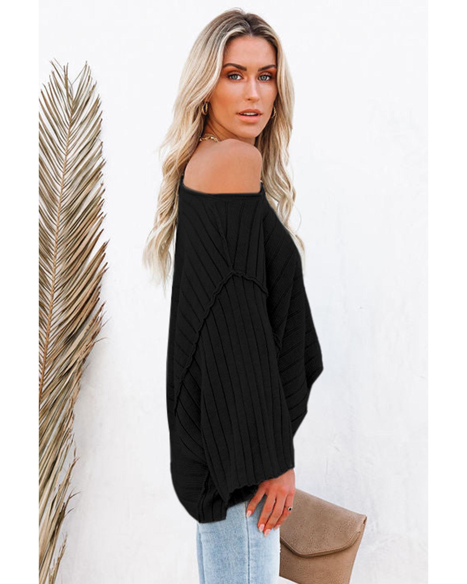 Black Exposed Seam Ribbed Knit Dolman Top – S