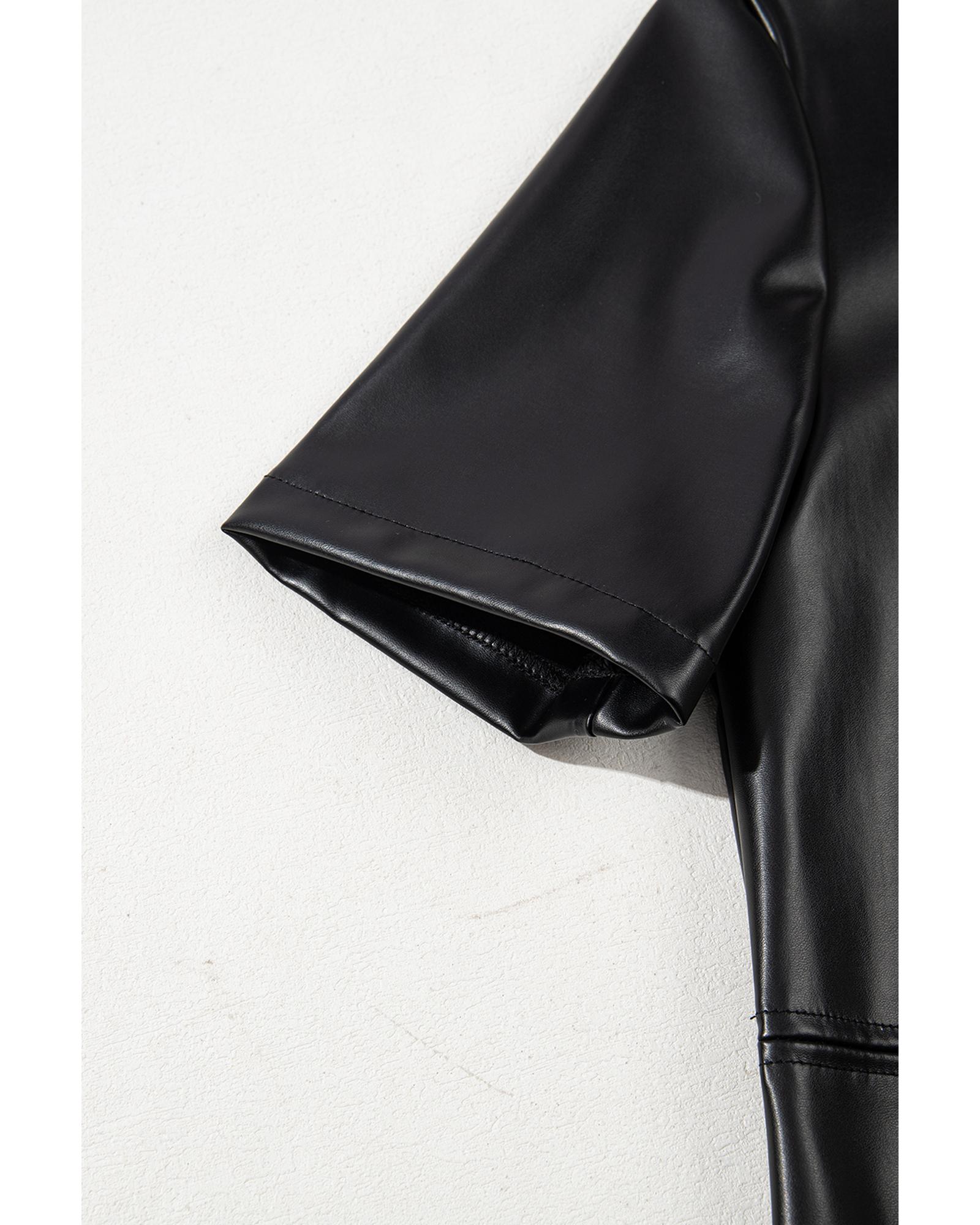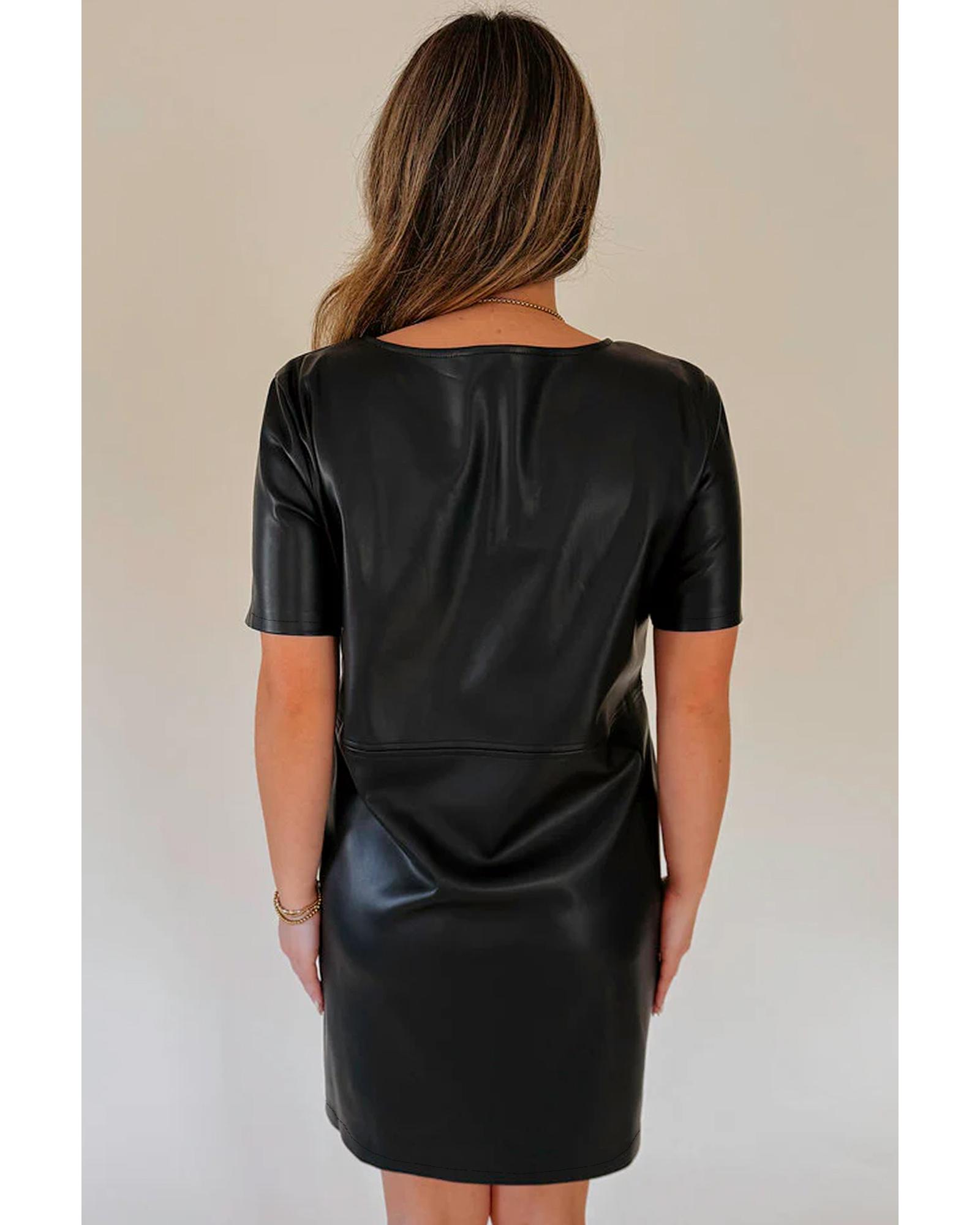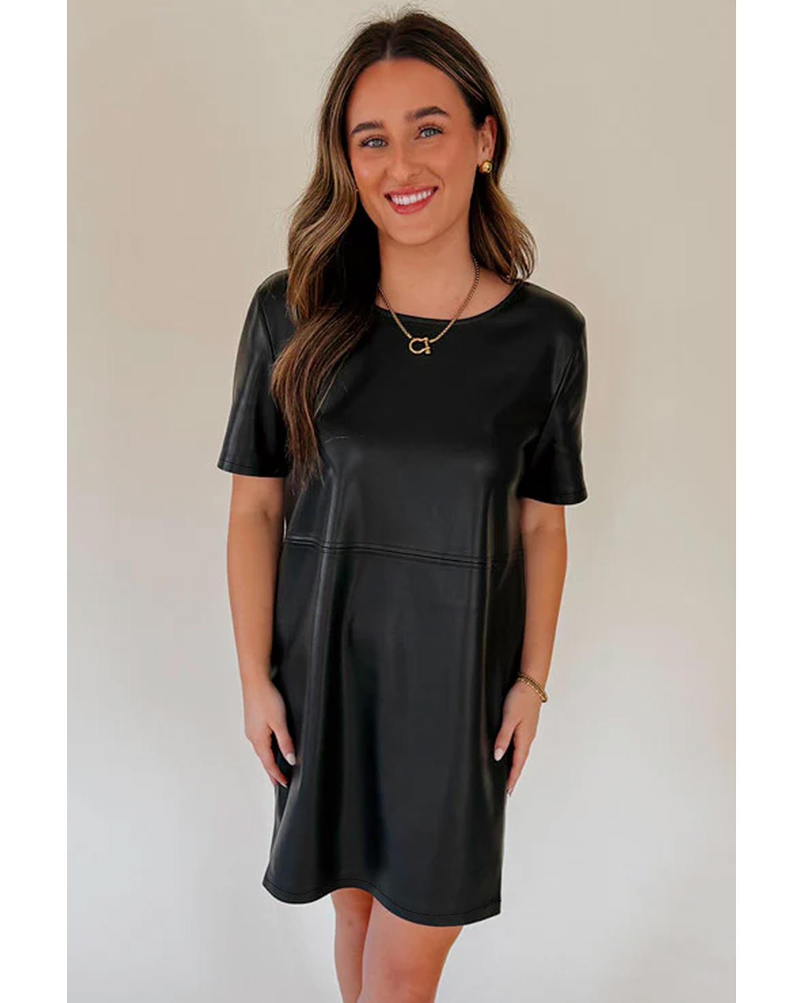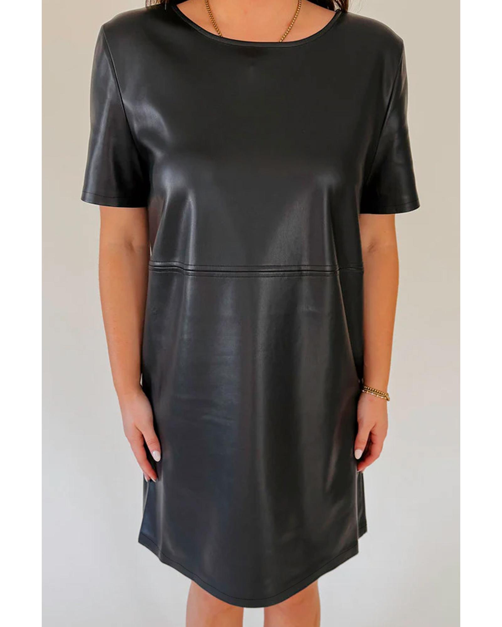 Black Faux Leather Loose T-shirt Dress – L