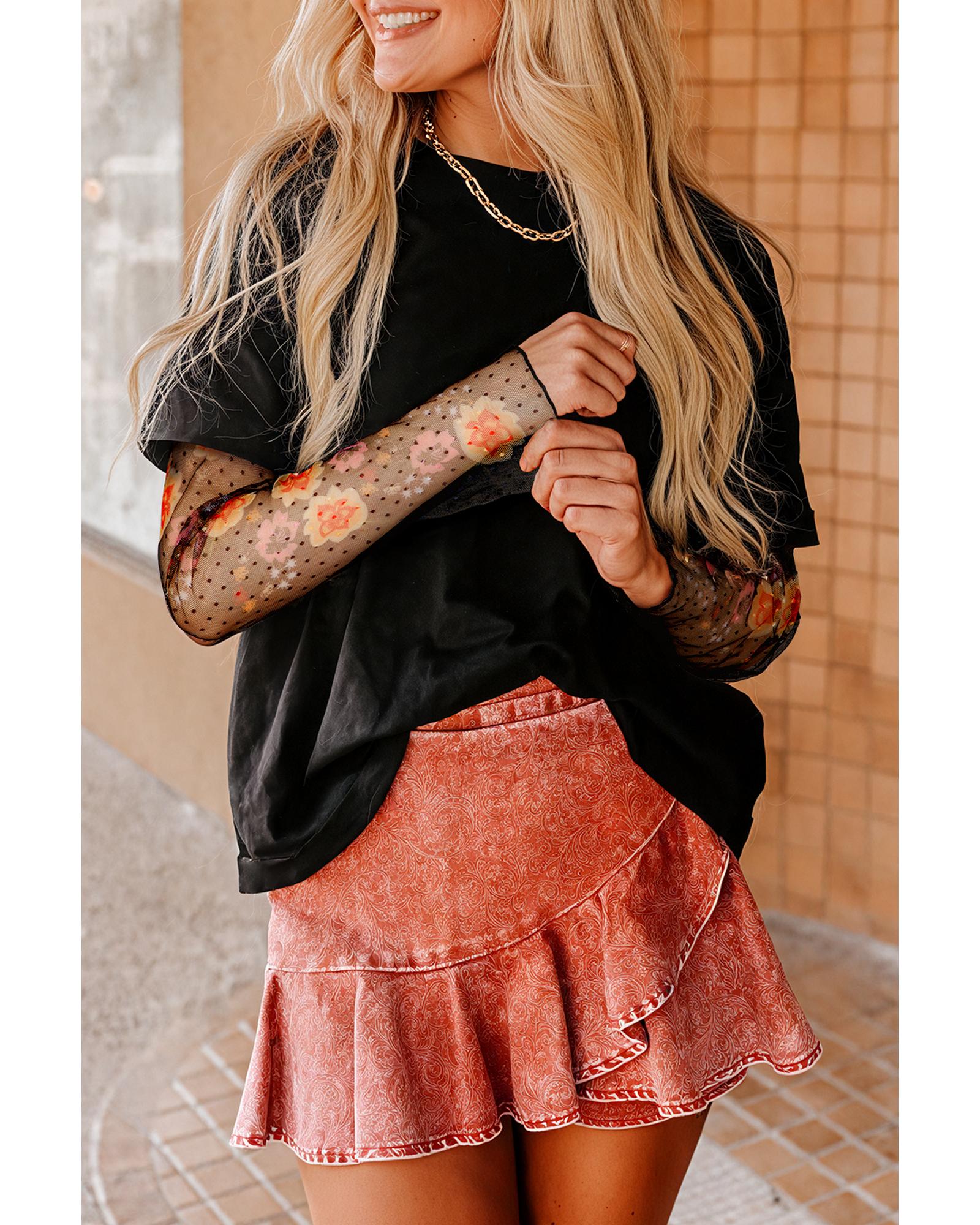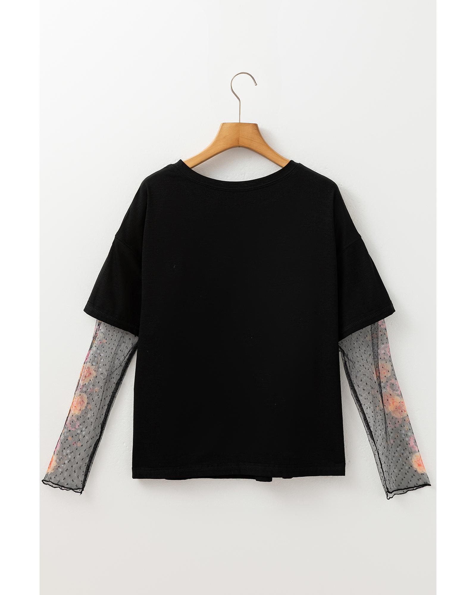- Black Faux Two Piece Floral Long Sleeve Patchwork Tee