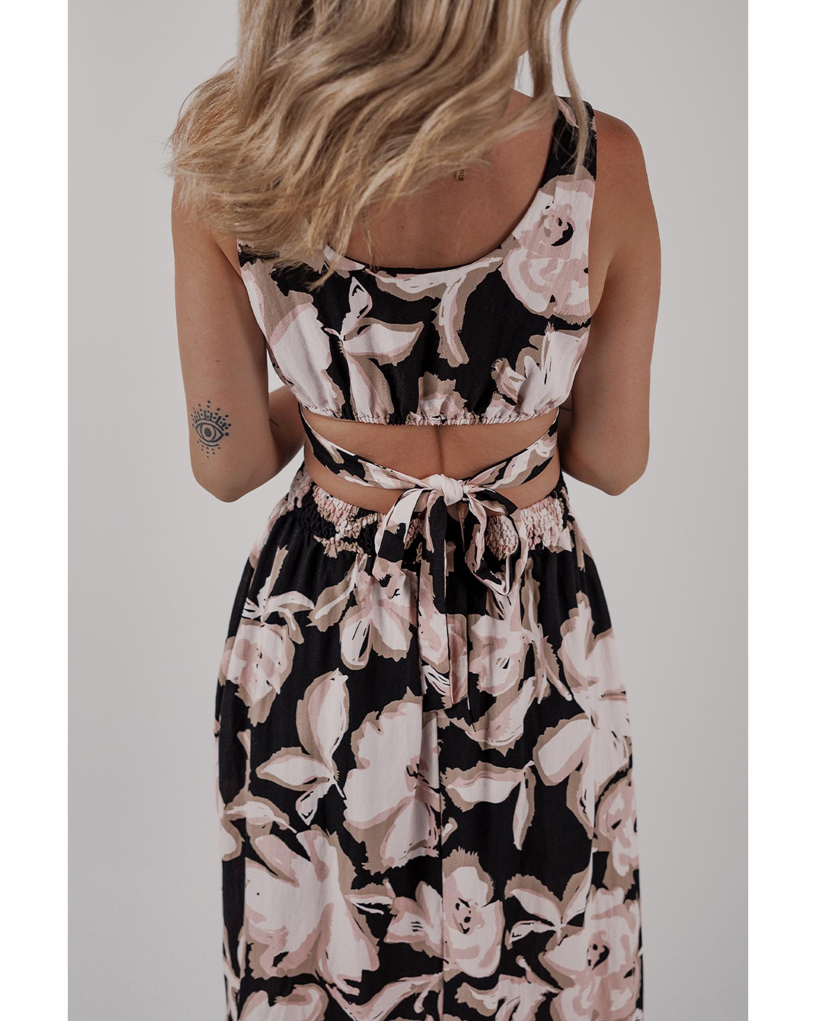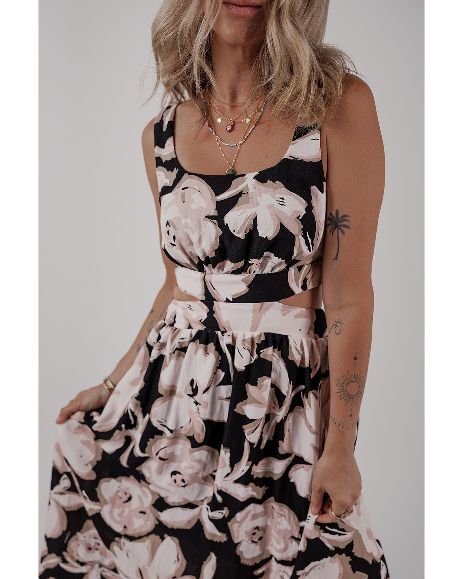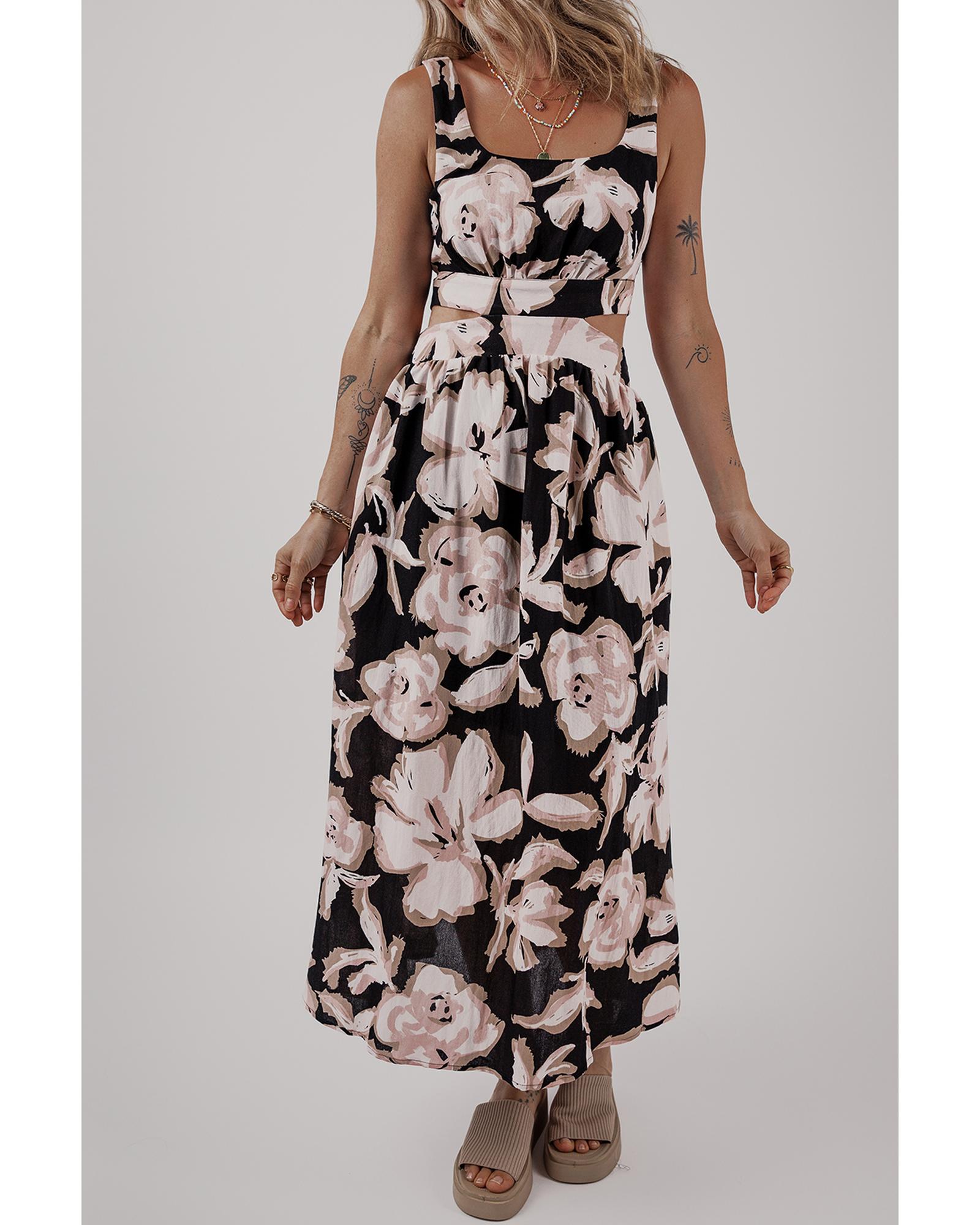 Black Floral Cutout Square Neck Knot Back Sleeveless Maxi Dress – XL