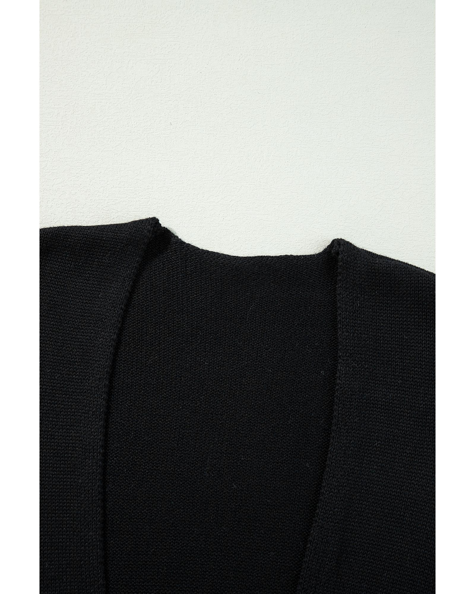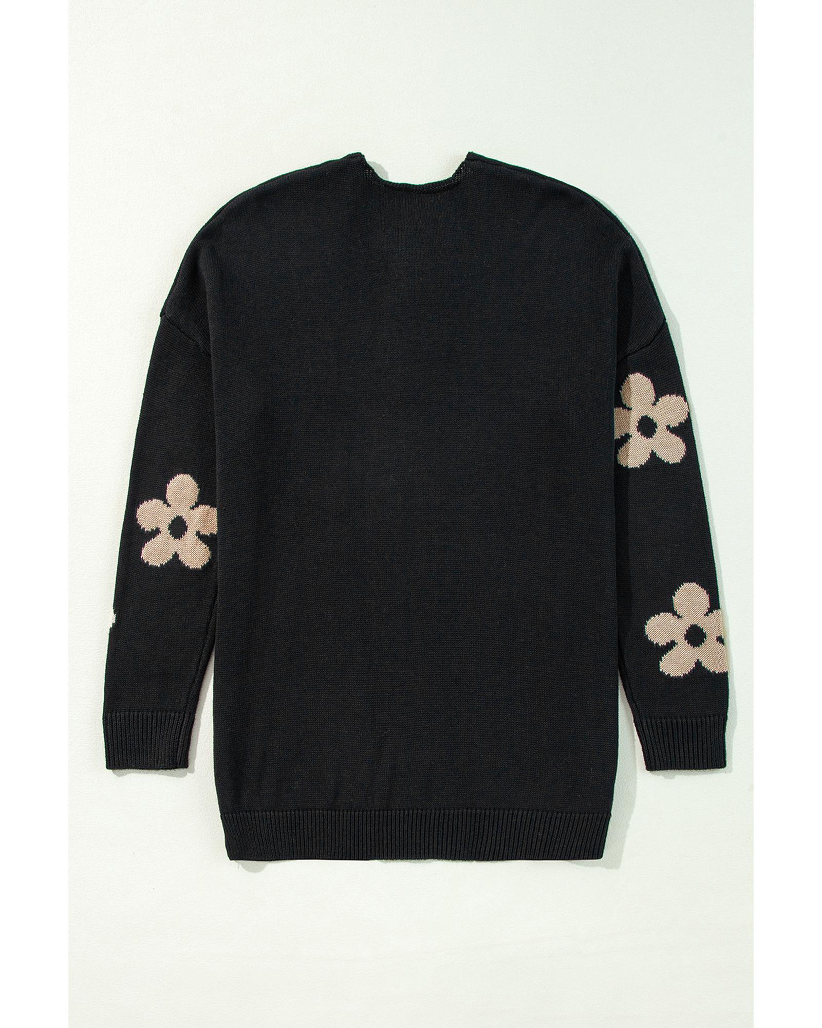 - Black Floral Print Knitted Open Front Loose Cardigan