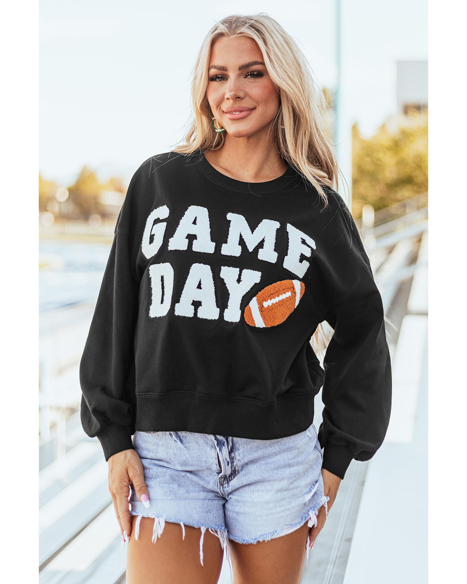 - Black GAME DAY Graphic Varsity Pullover Sweatshirt