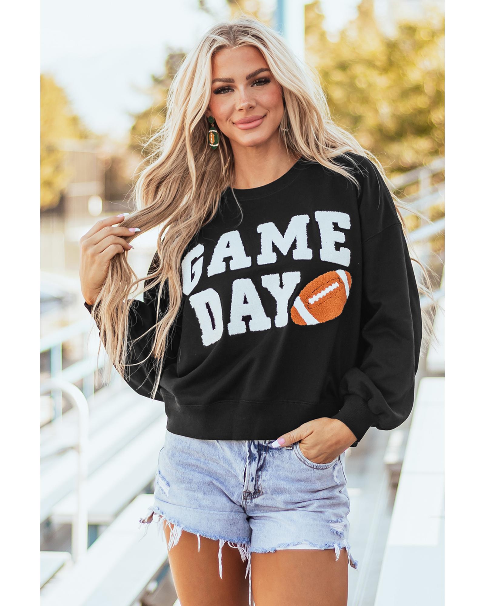 • Black GAME DAY Graphic Varsity Pullover Sweatshirt
