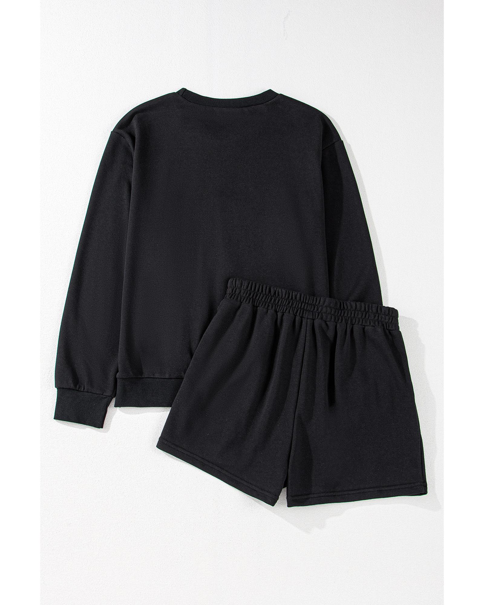 • Black GAME DAY Rugby Football Graphic Pullover and Shorts Casual Outfit