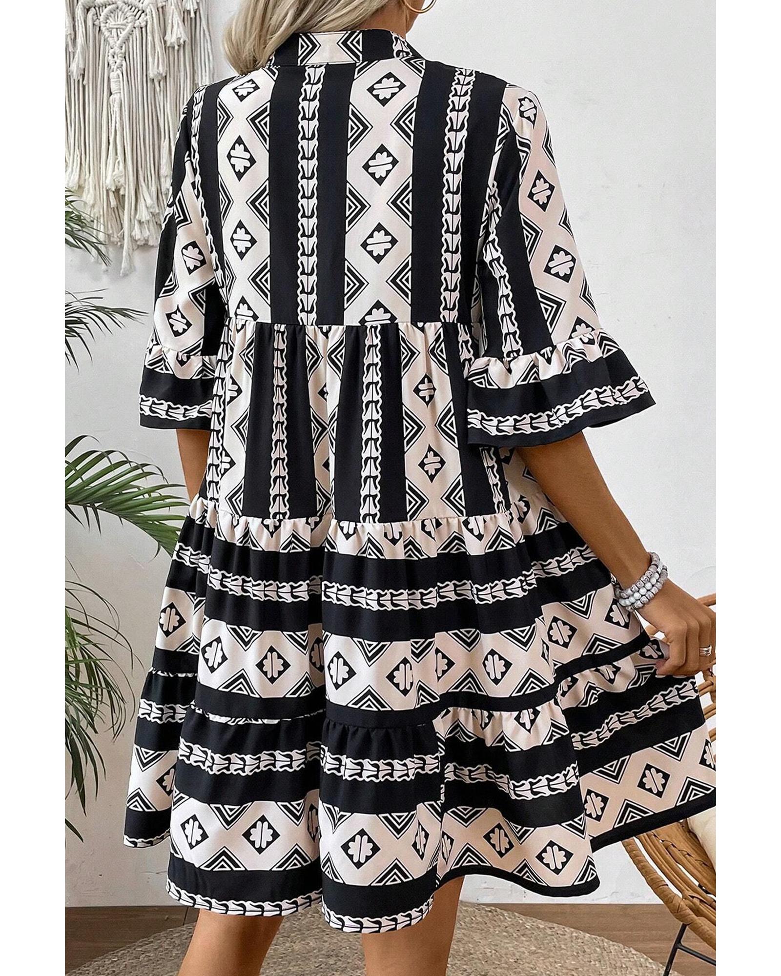 Black V Neck Flutter Sleeve Smocked Bodice High Waist Ruffle Maxi Dress - S