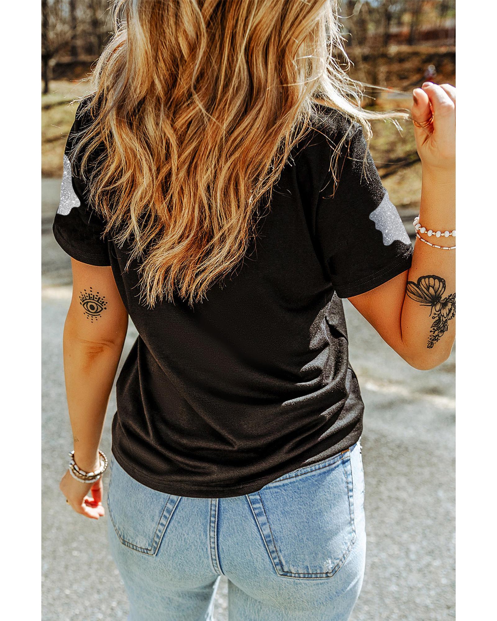 Black Glitter Ghost Pattern Crew Neck Halloween T Shirt – 2XL