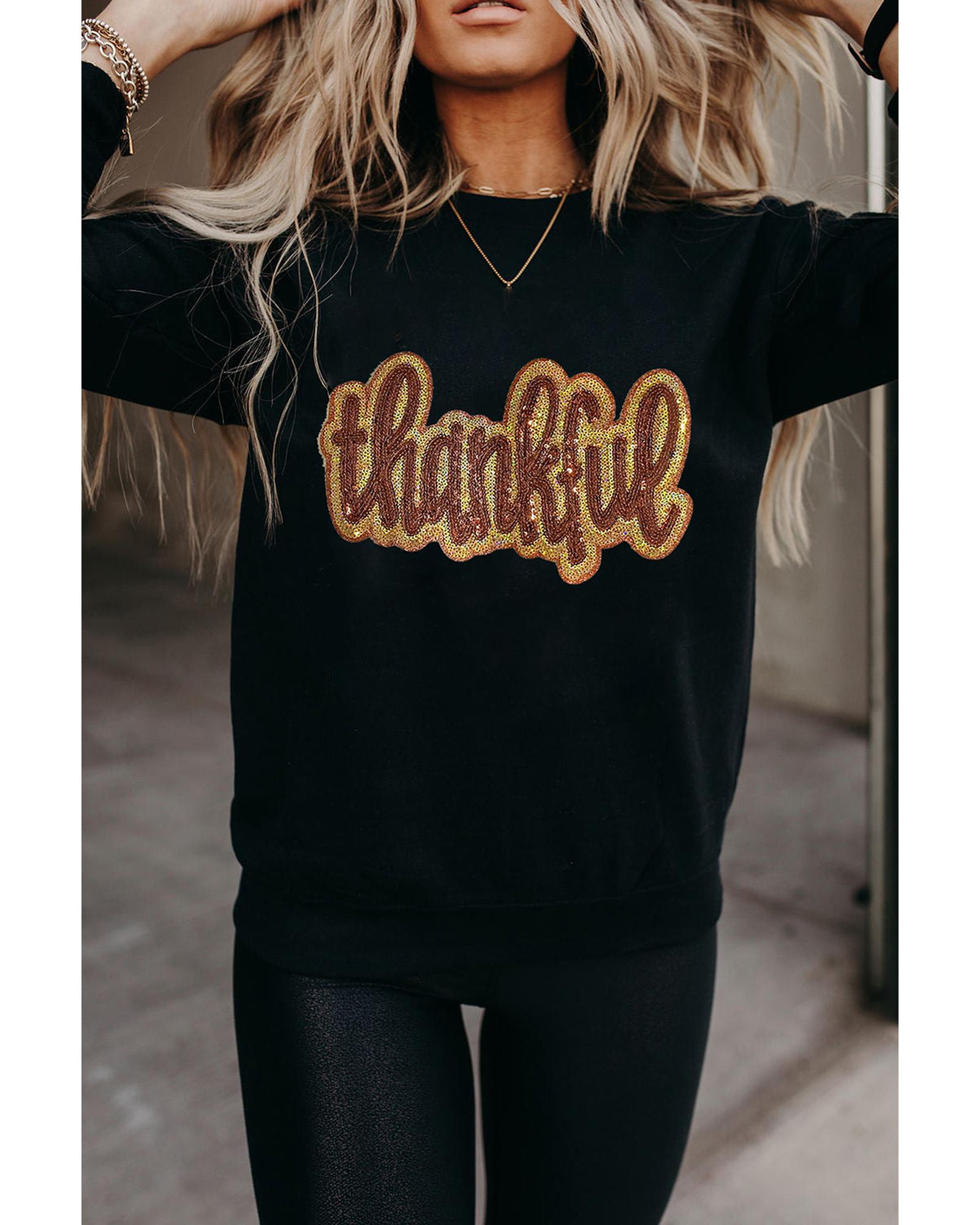 Black Glittering thankful Graphic Drop Shoulder Sweatshirt – L