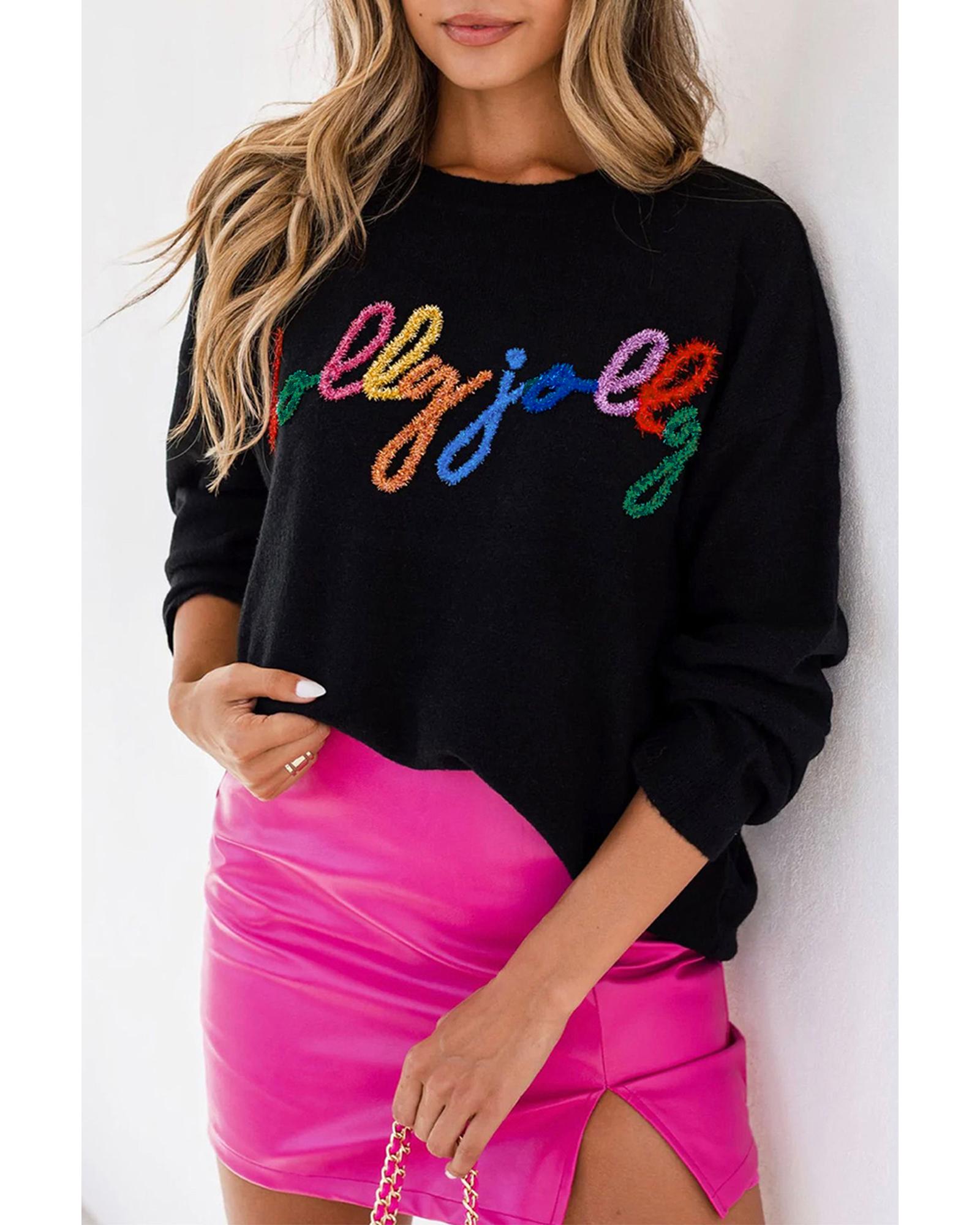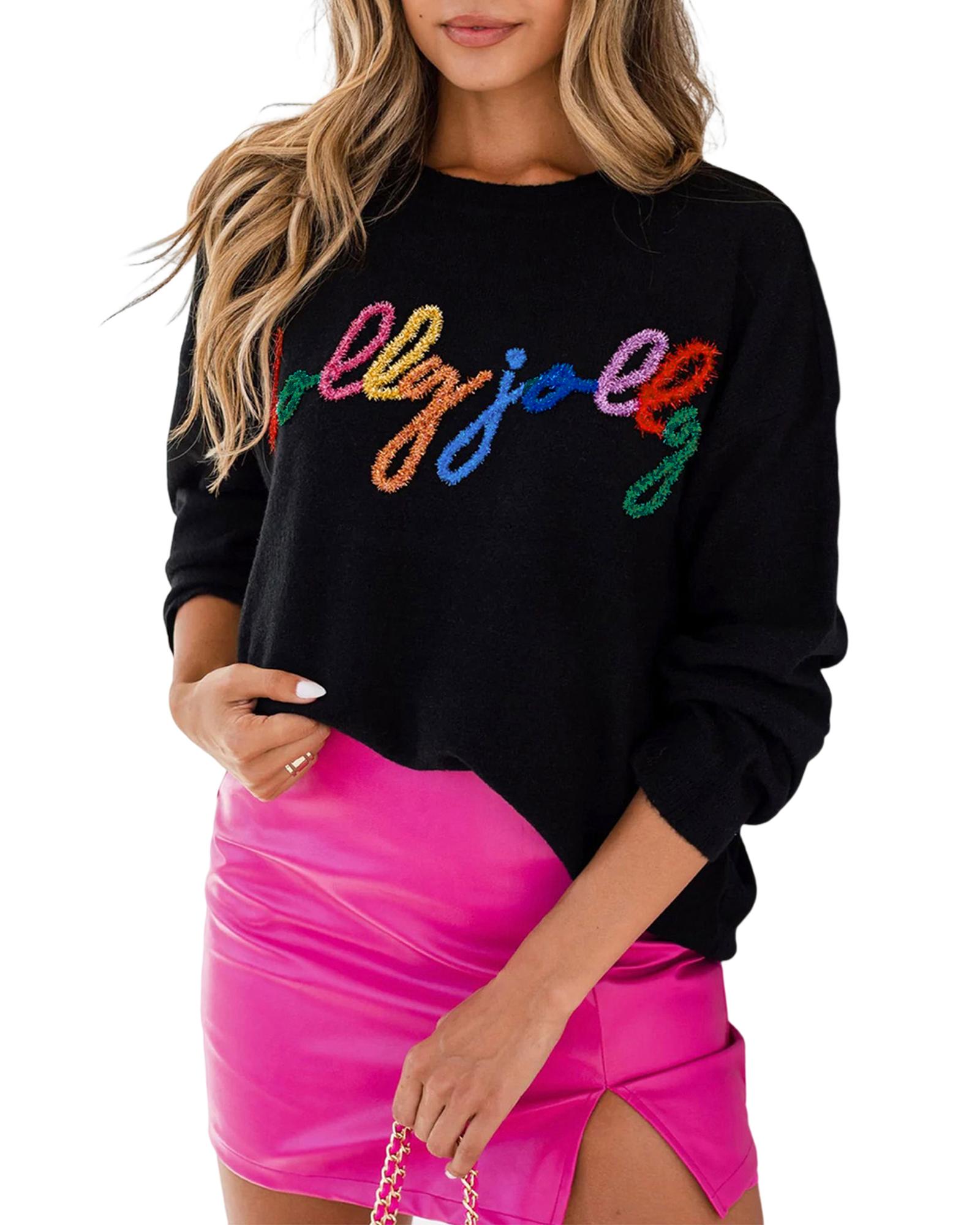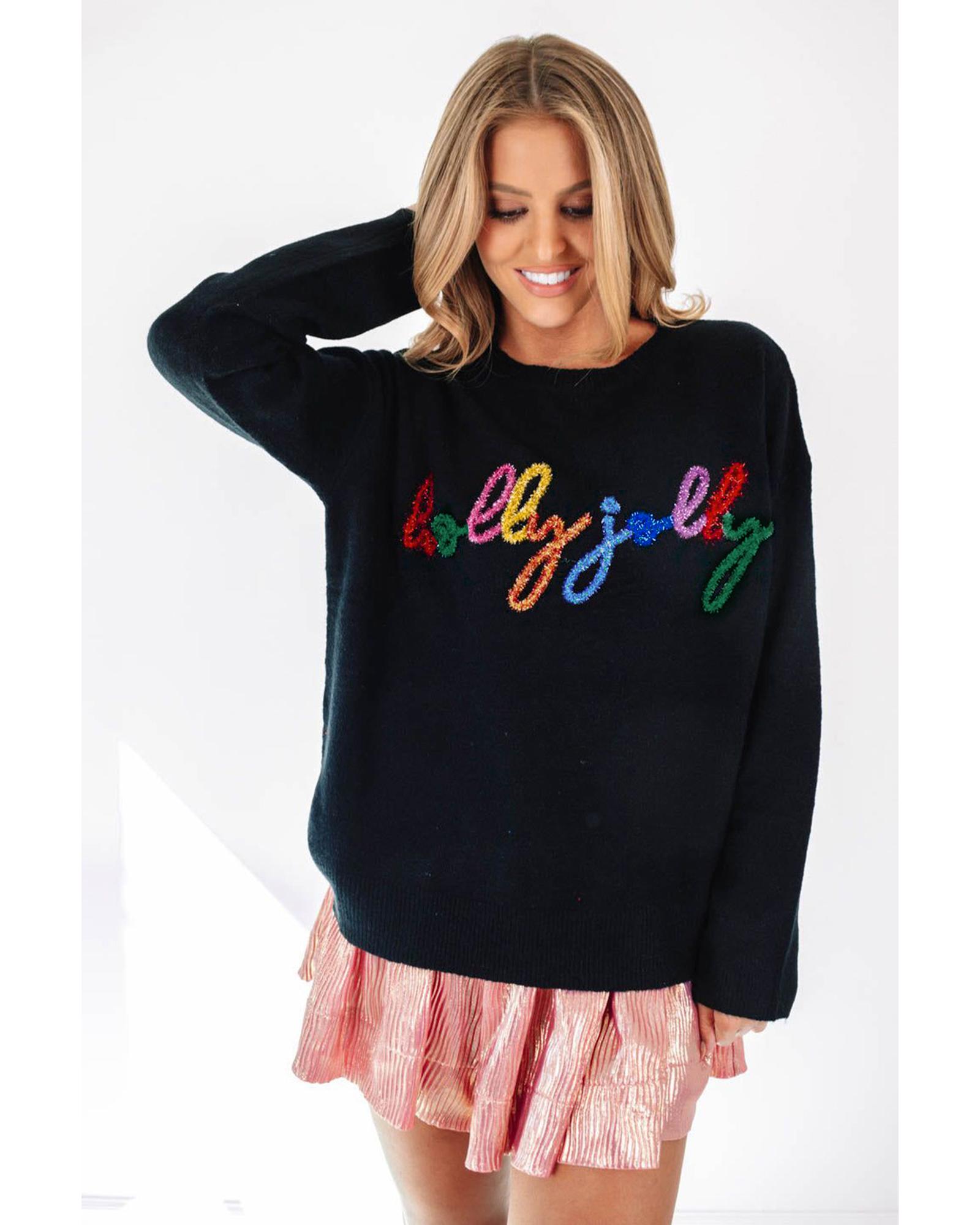 Black Holly Jolly Round Neck Casual Sweater – L