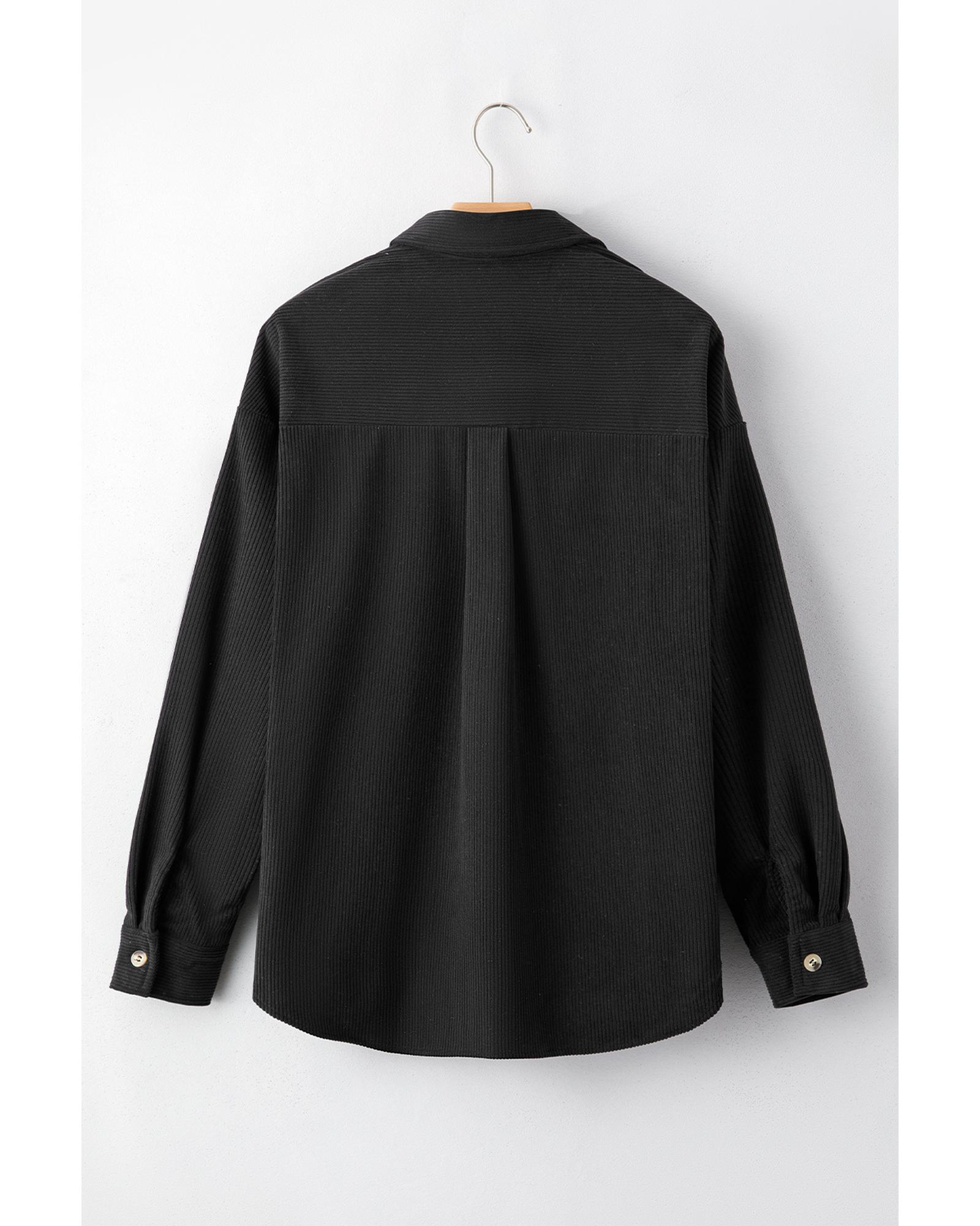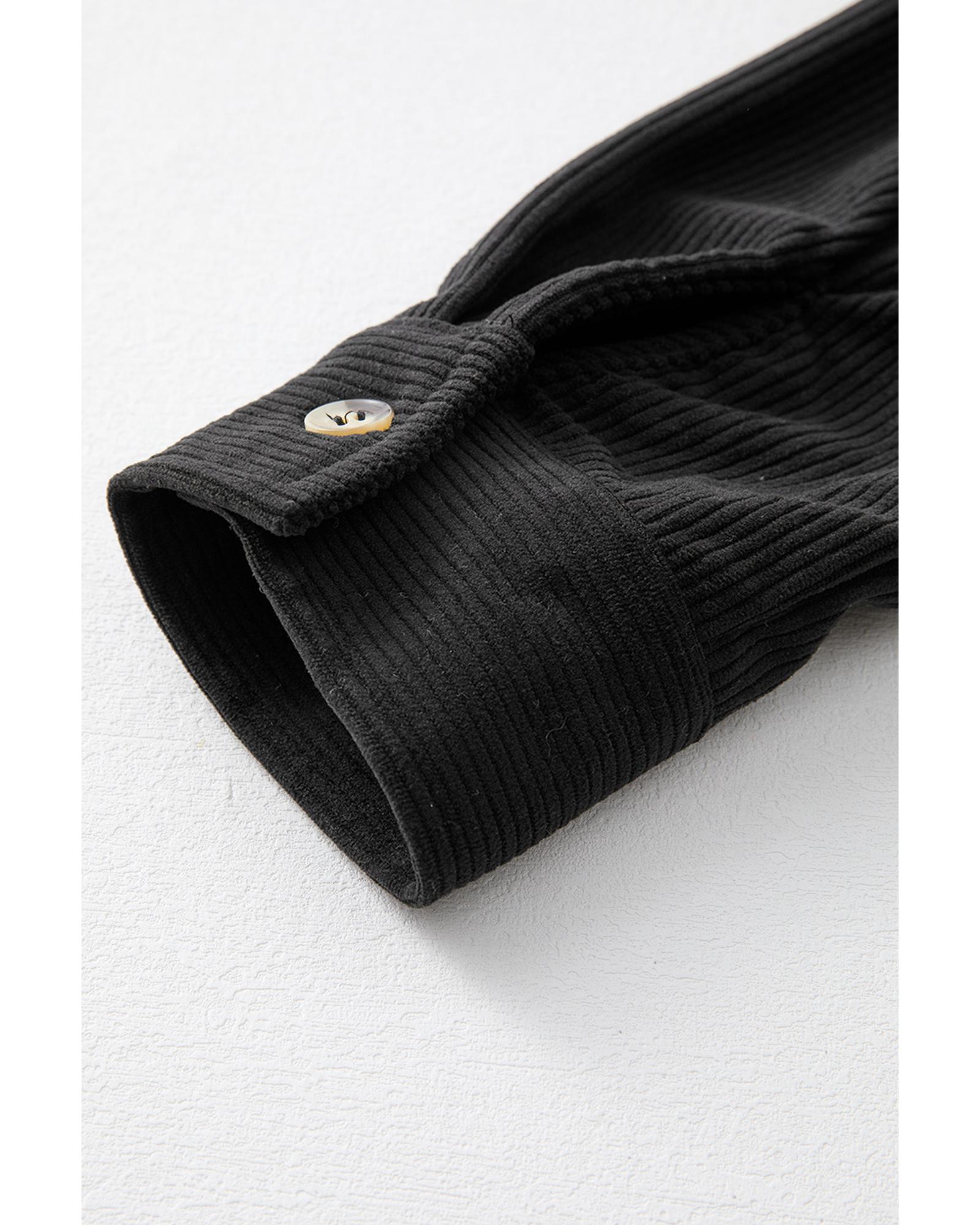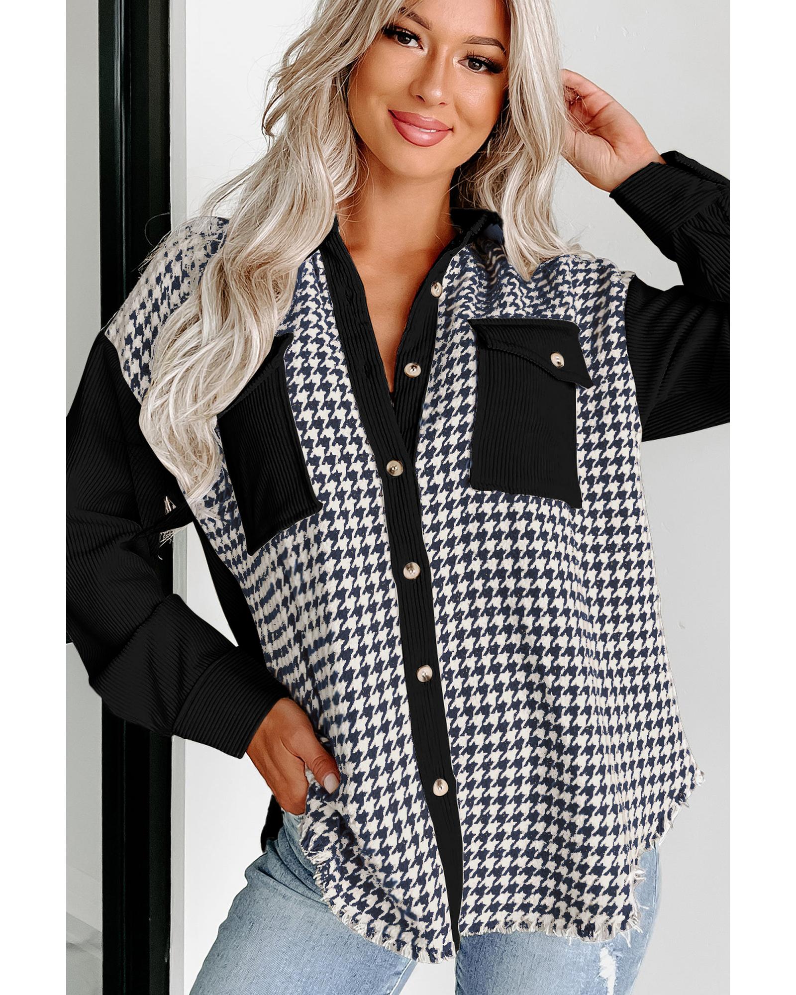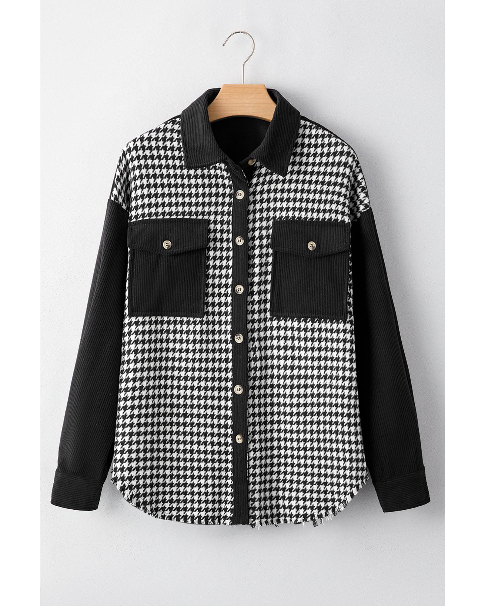 Black Houndstooth Corduroy Patchwork Flap Pocket Shacket - S