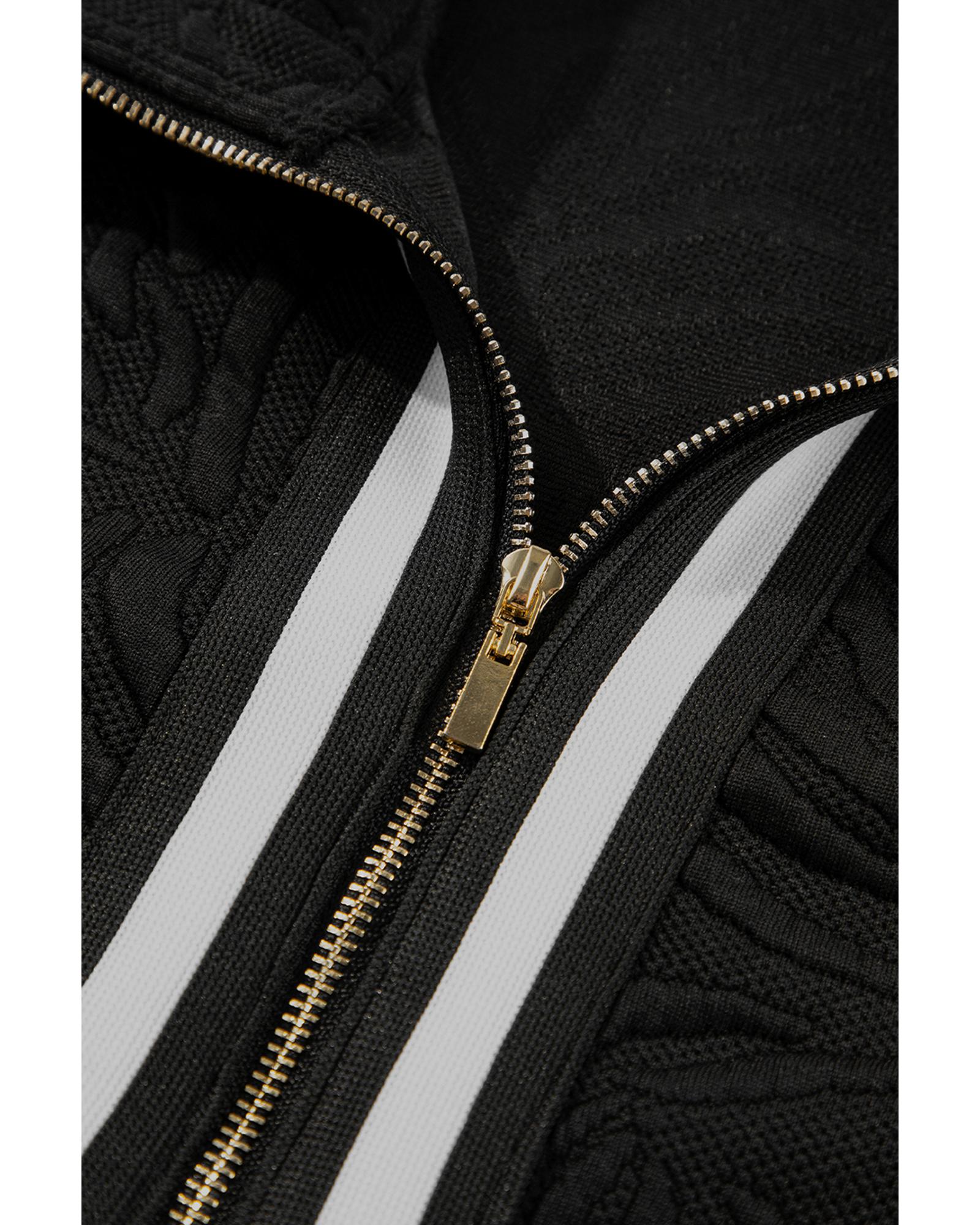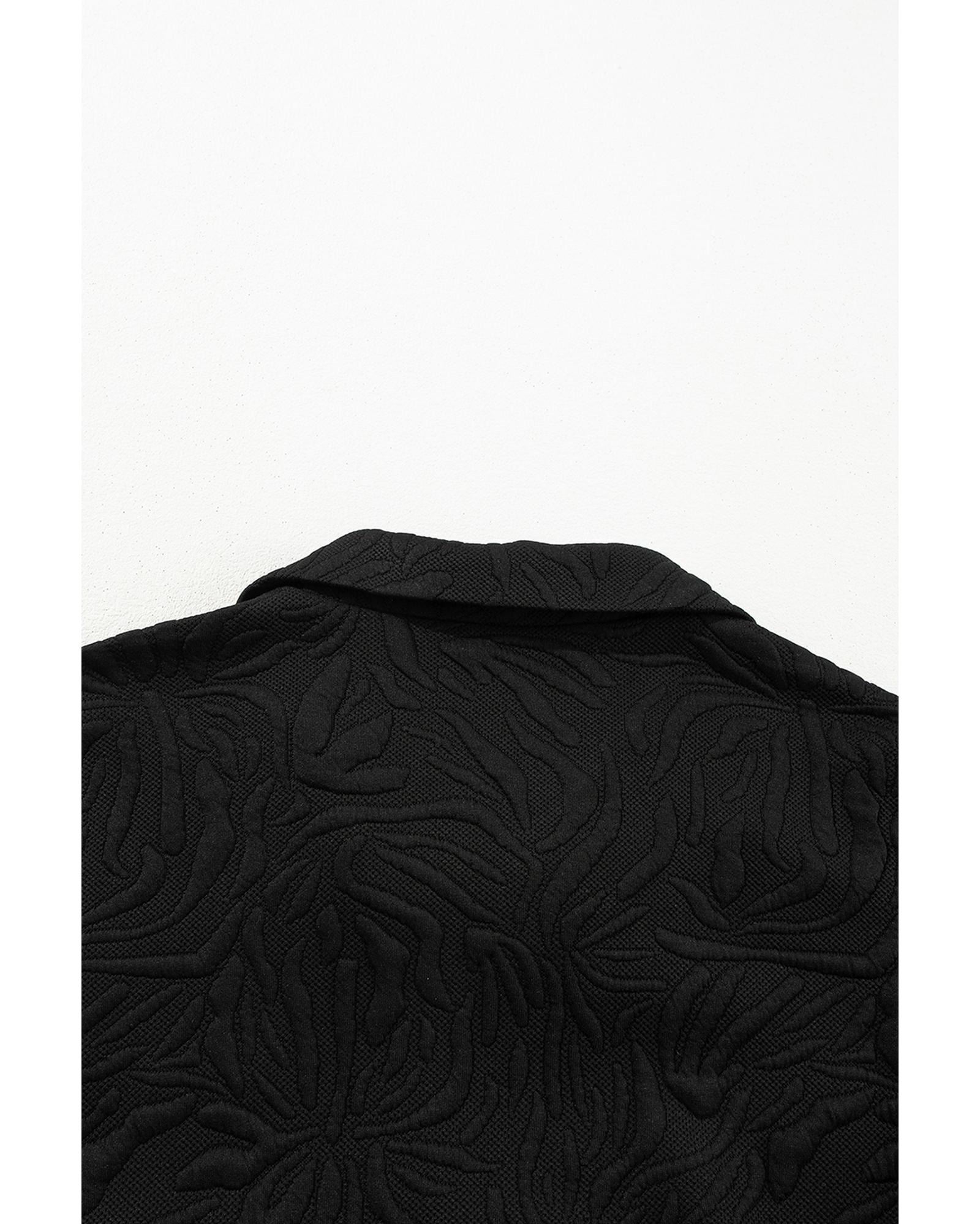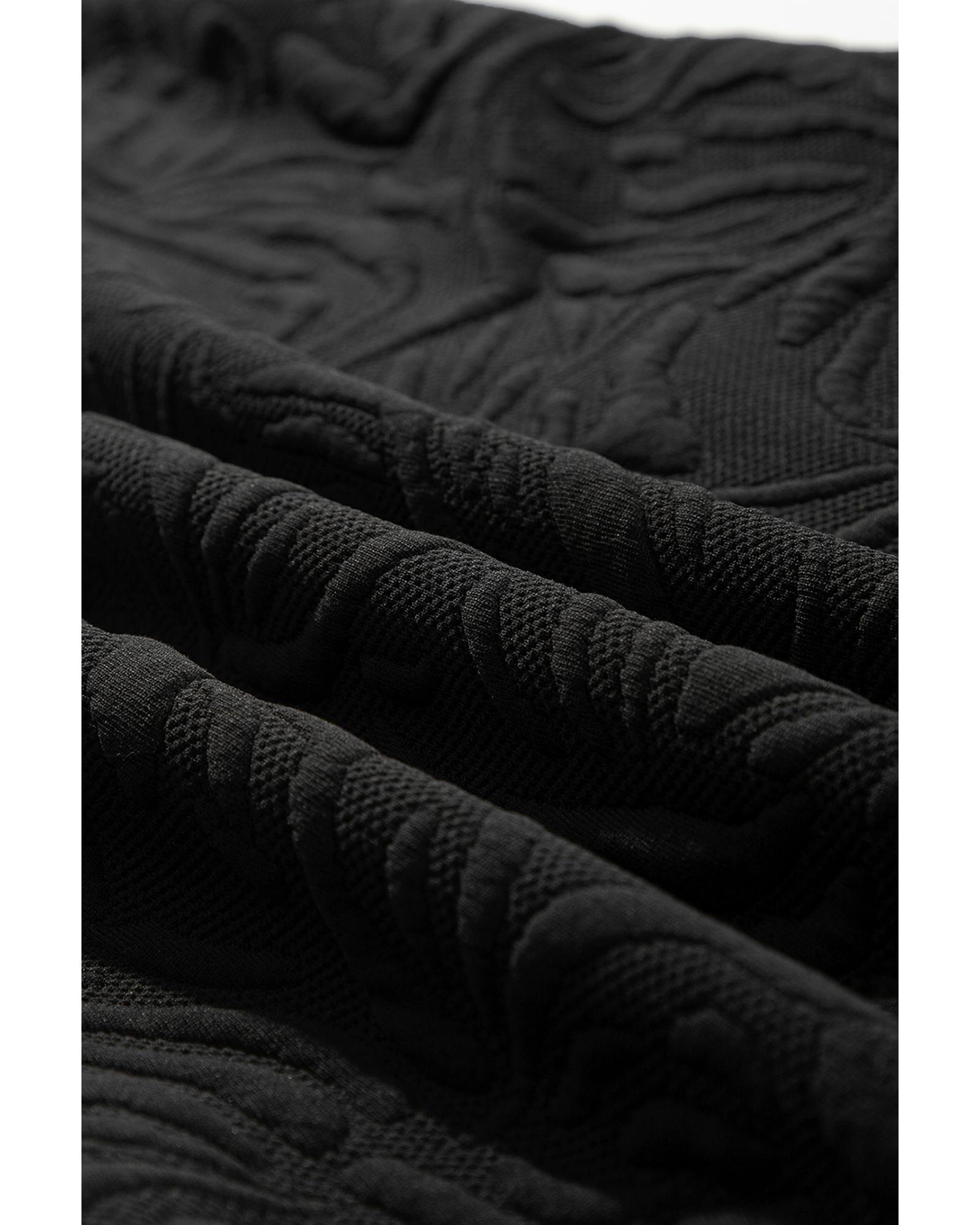Black Jacquard Textured Quarter Zipper Shift Mini Dress – L