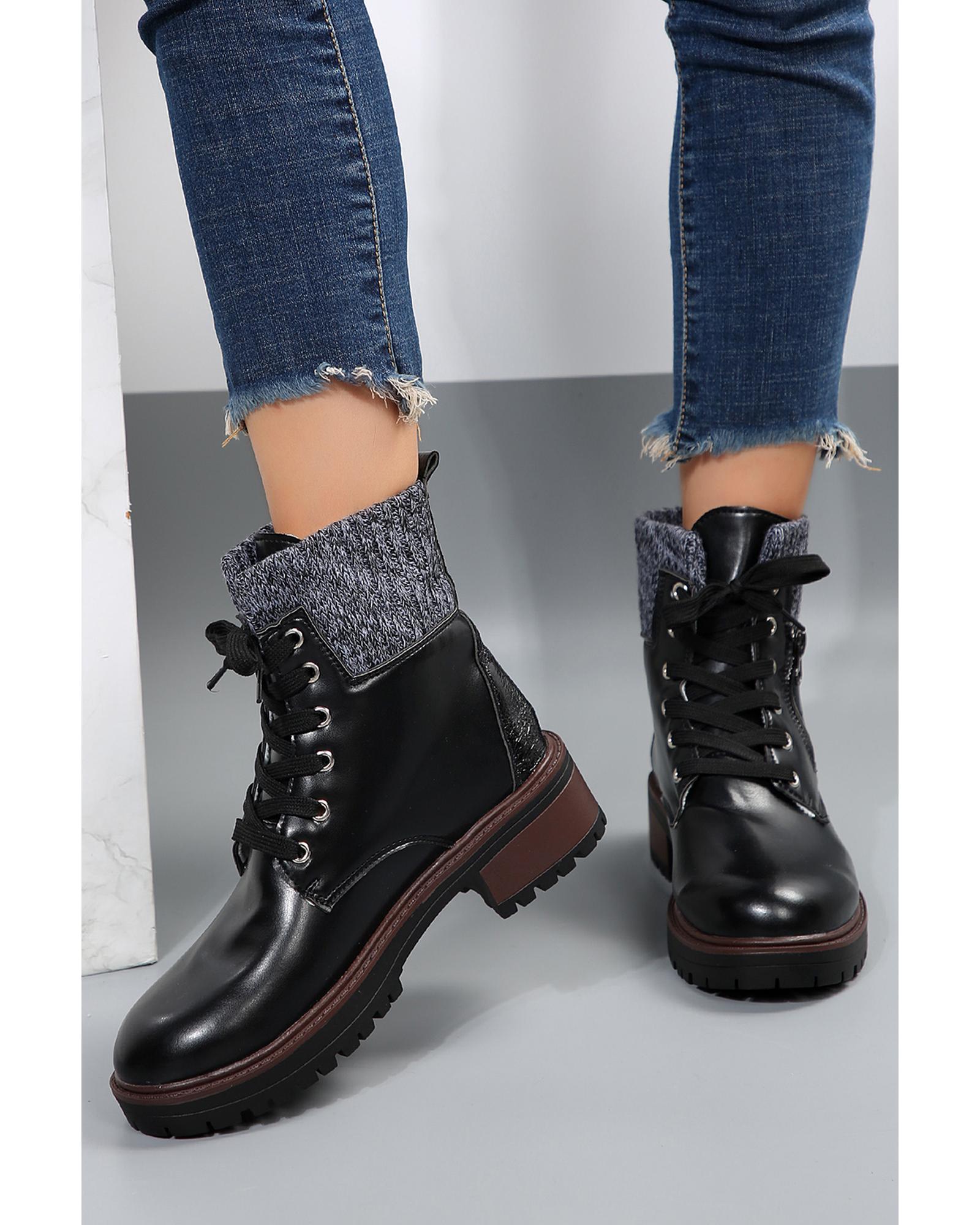 Black Knitted Patched Lace-up Heeled Ankle Boots – 42 EU
