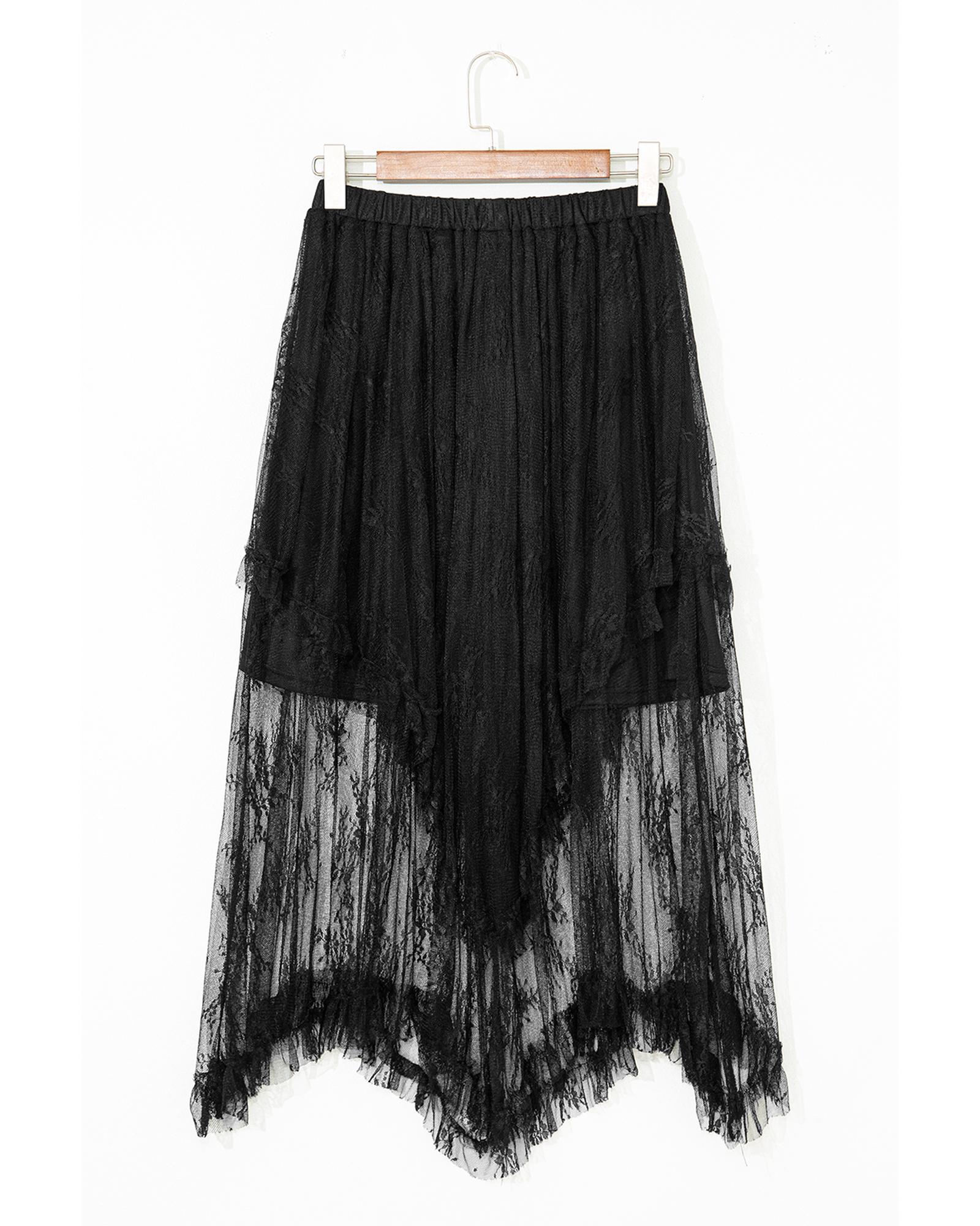 Black Lace Cascading Tiered High Waist Maxi Skirt – XL