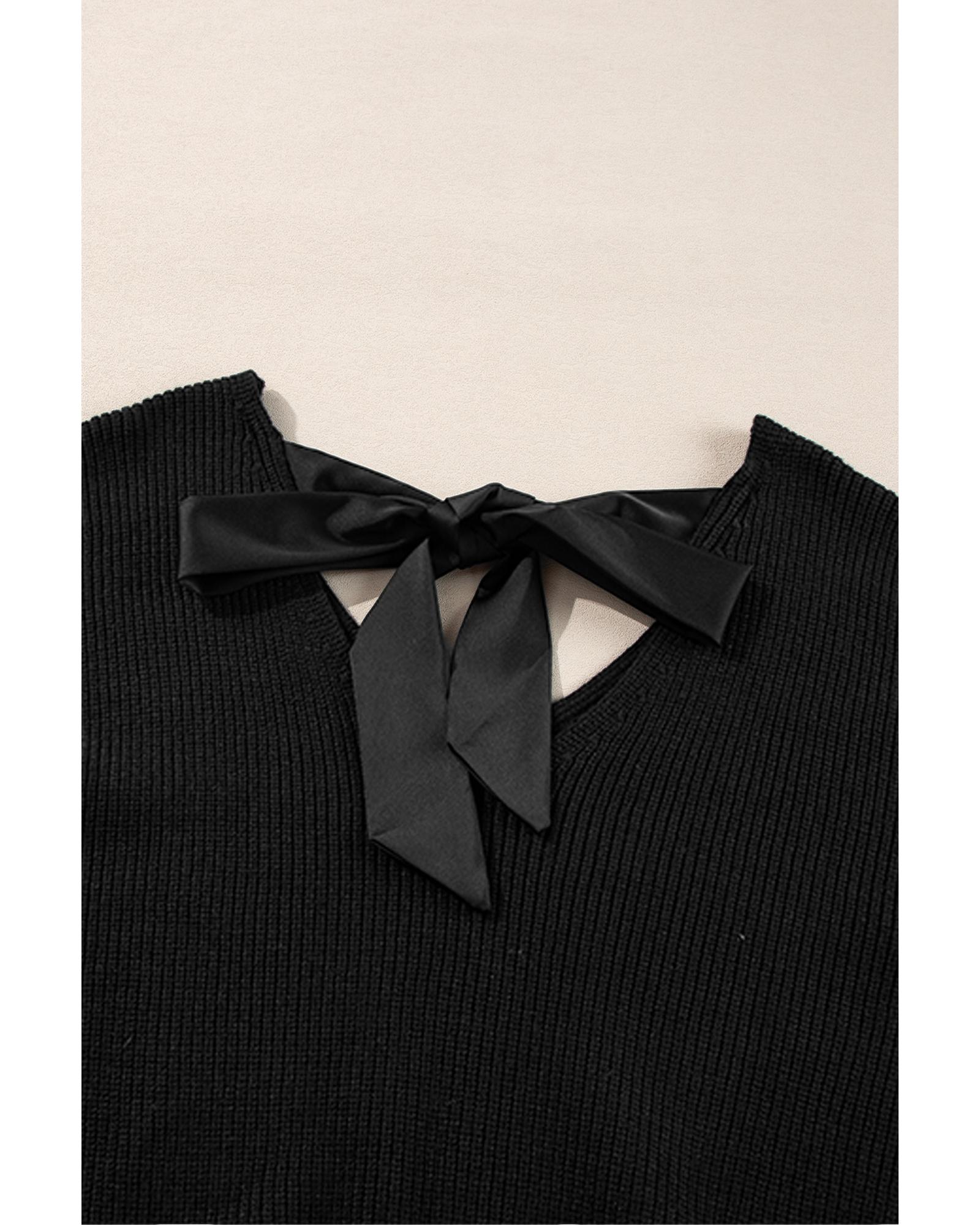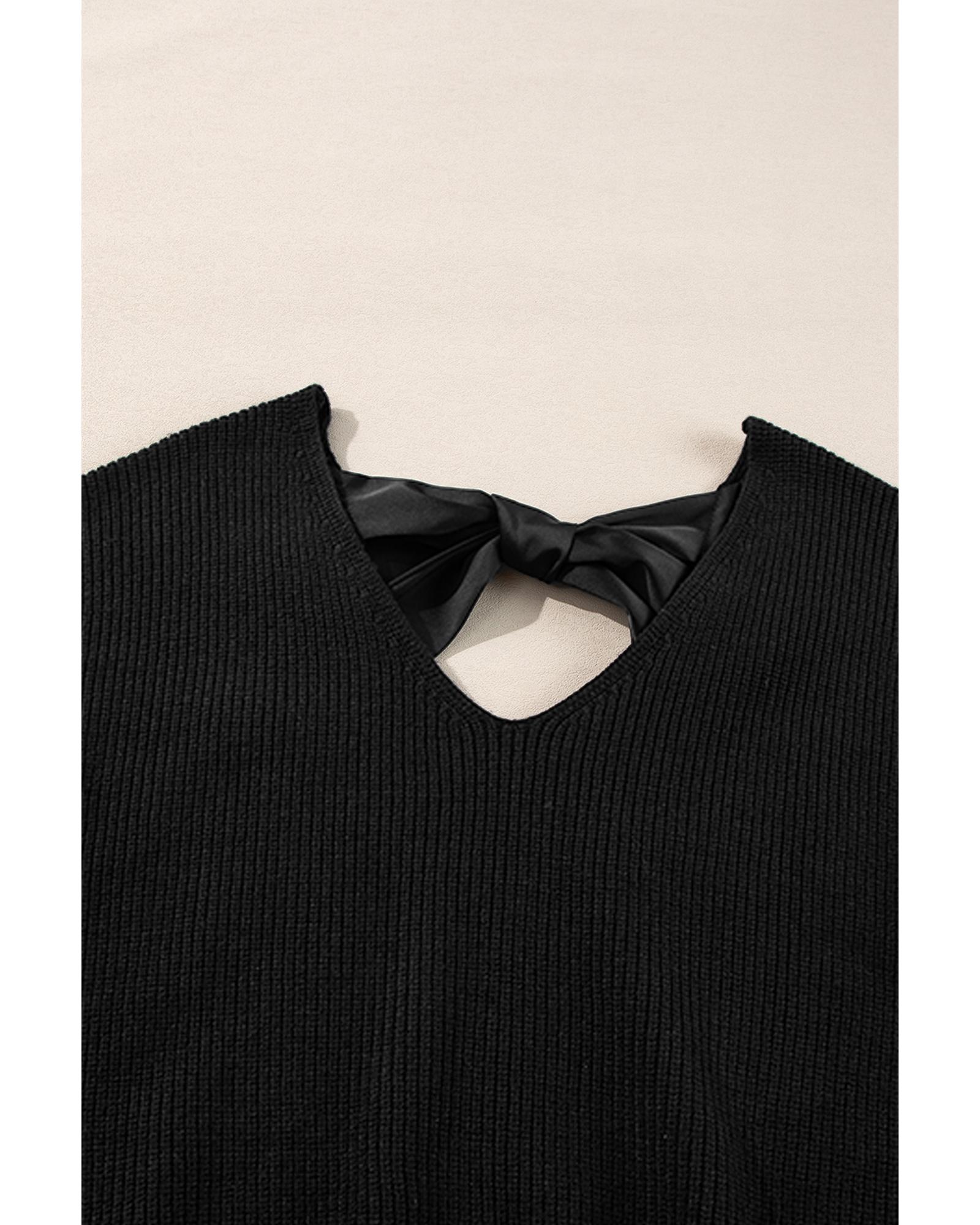 Black Lantern Sleeve V Neck Knot Back Sweater – L