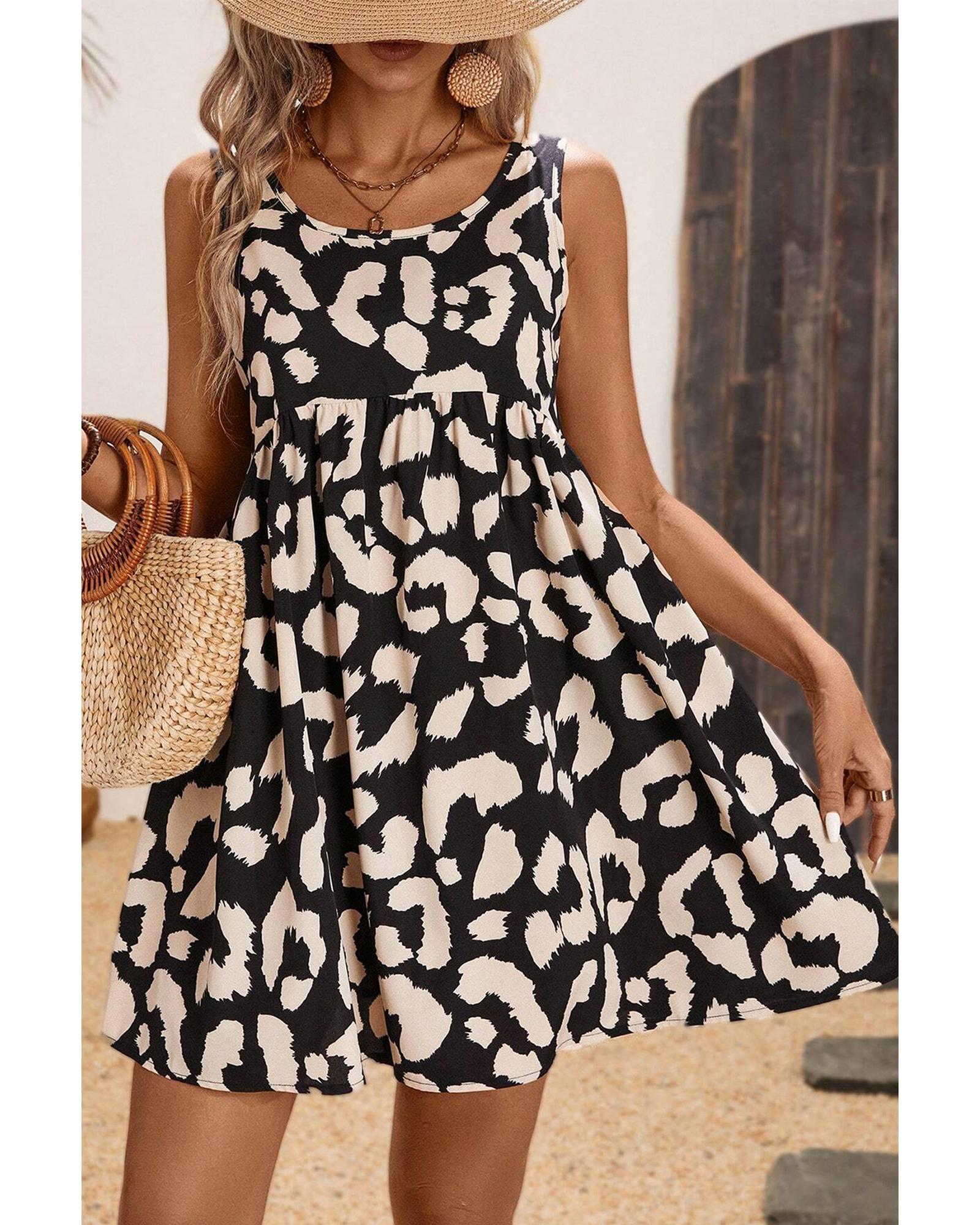 Black Leopard Print U Neck Sleeveless High Waist Dress – M