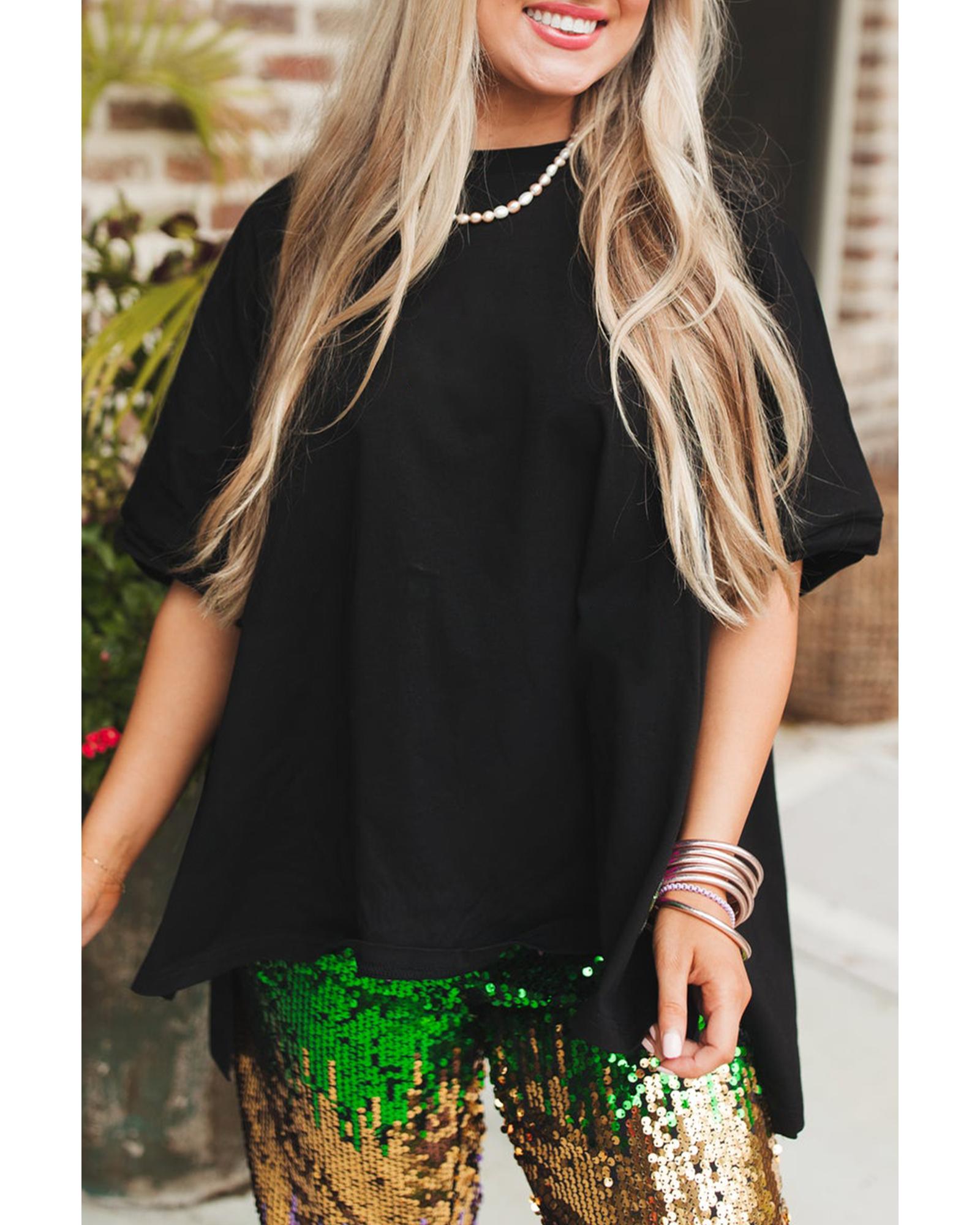 Black Loose Half Sleeve Hi Low Hem T Shirt – XL