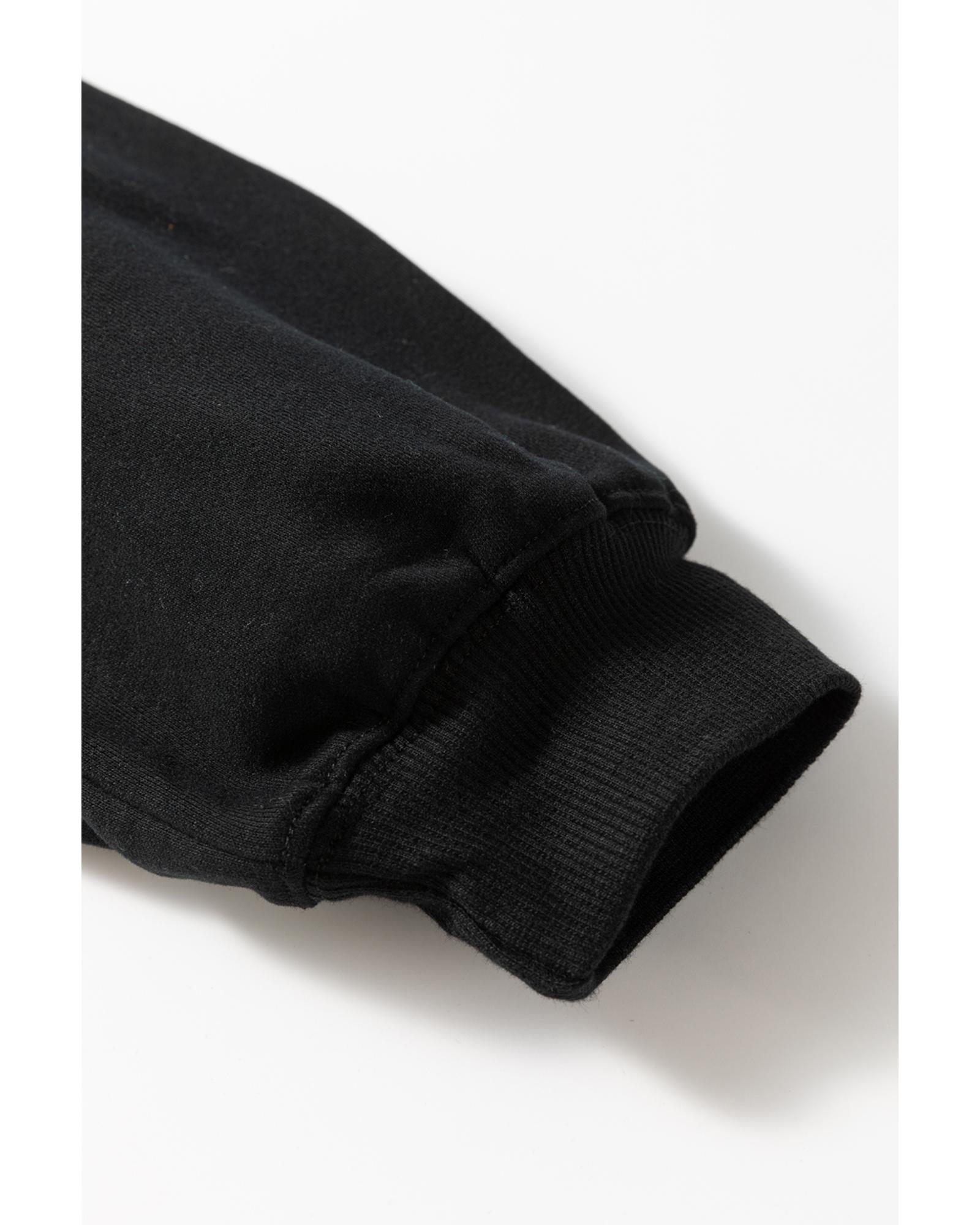 Black Loose Patchwork Crewneck Plus Size Sweatshirt – 1X