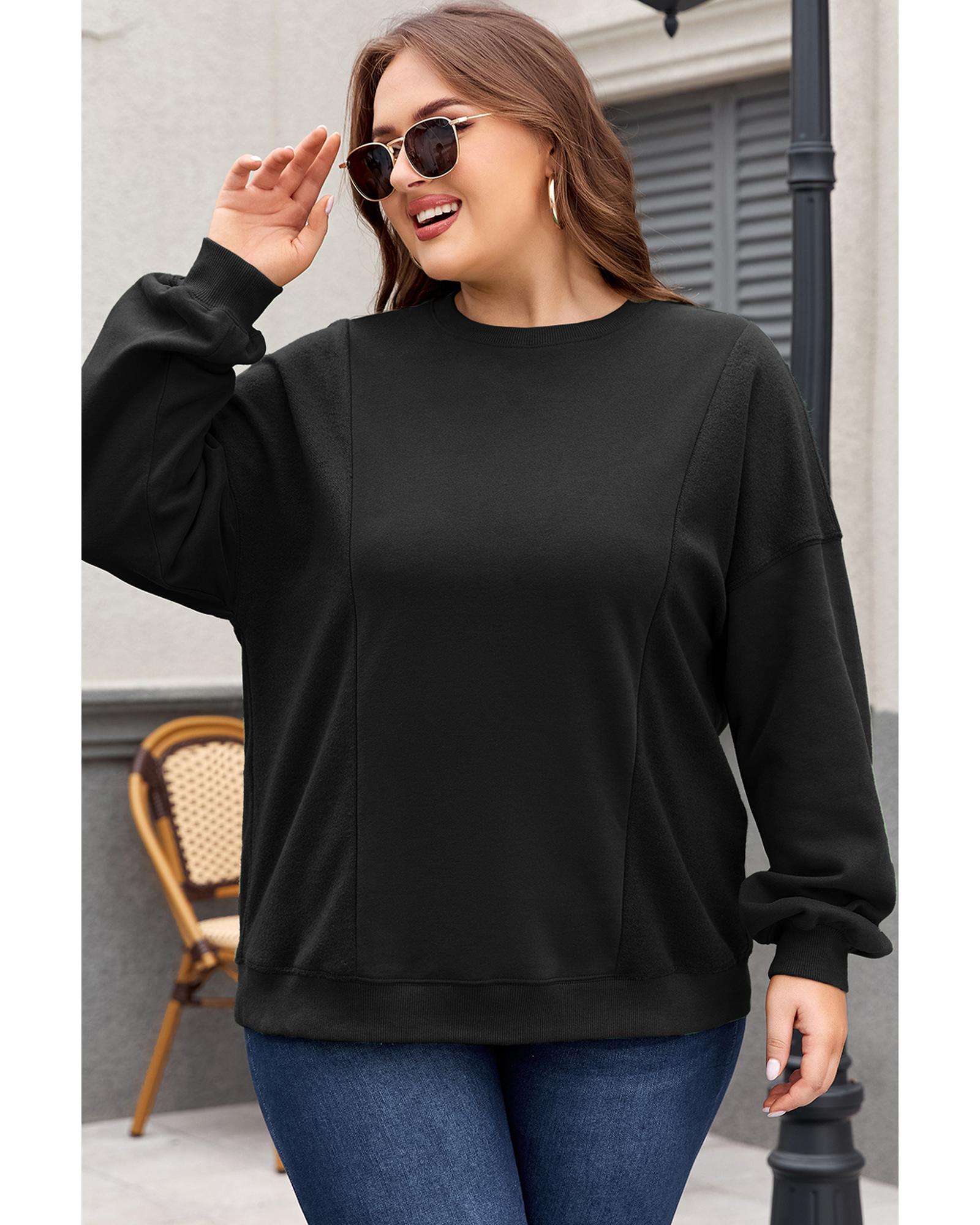 Black Loose Patchwork Crewneck Plus Size Sweatshirt – 2X