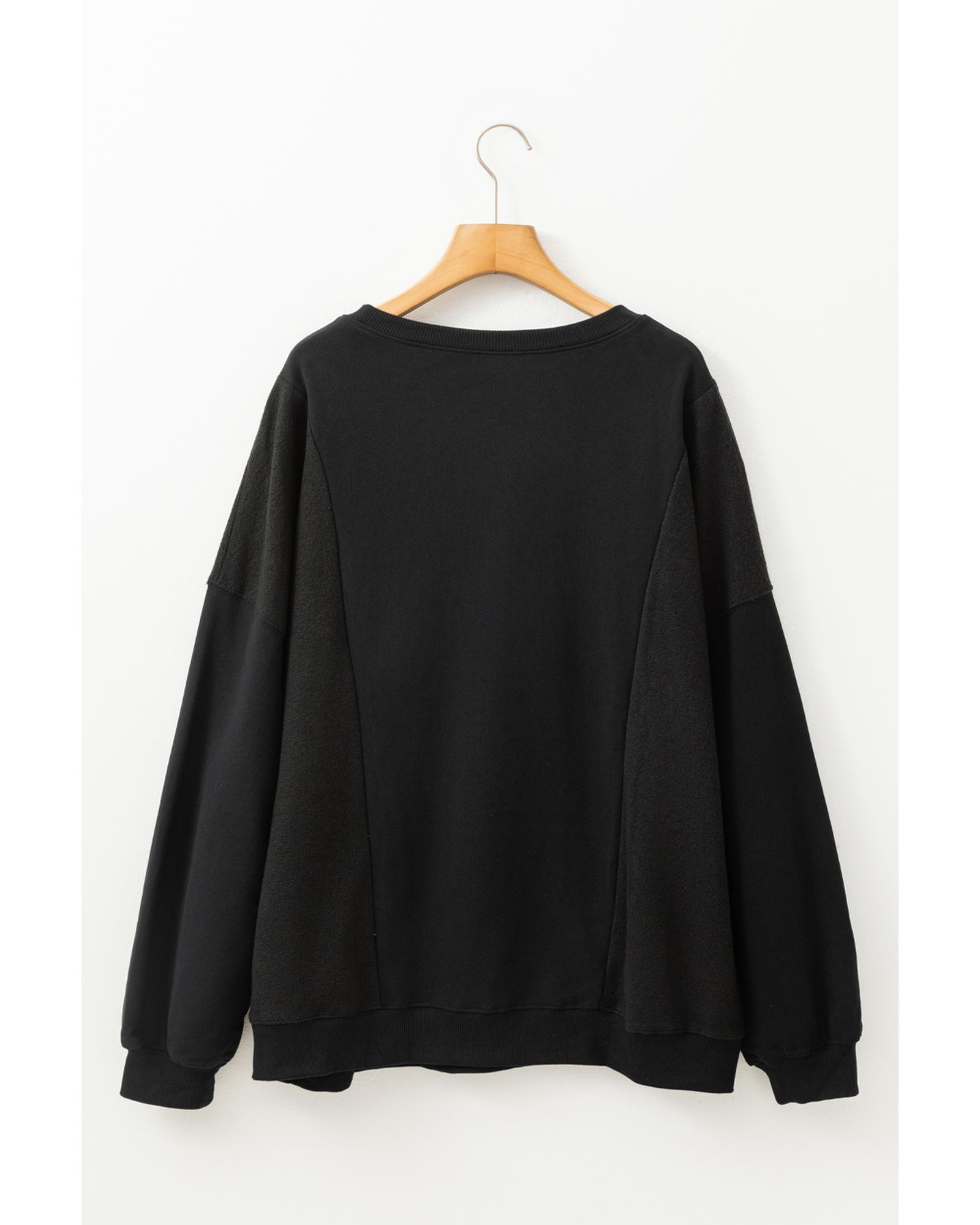 Black Loose Patchwork Crewneck Plus Size Sweatshirt – 3X
