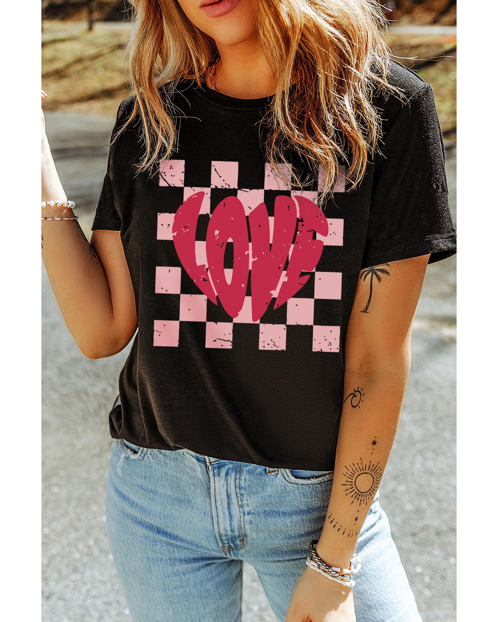 - Black LOVE Checkered Graphic Valentine Tee
