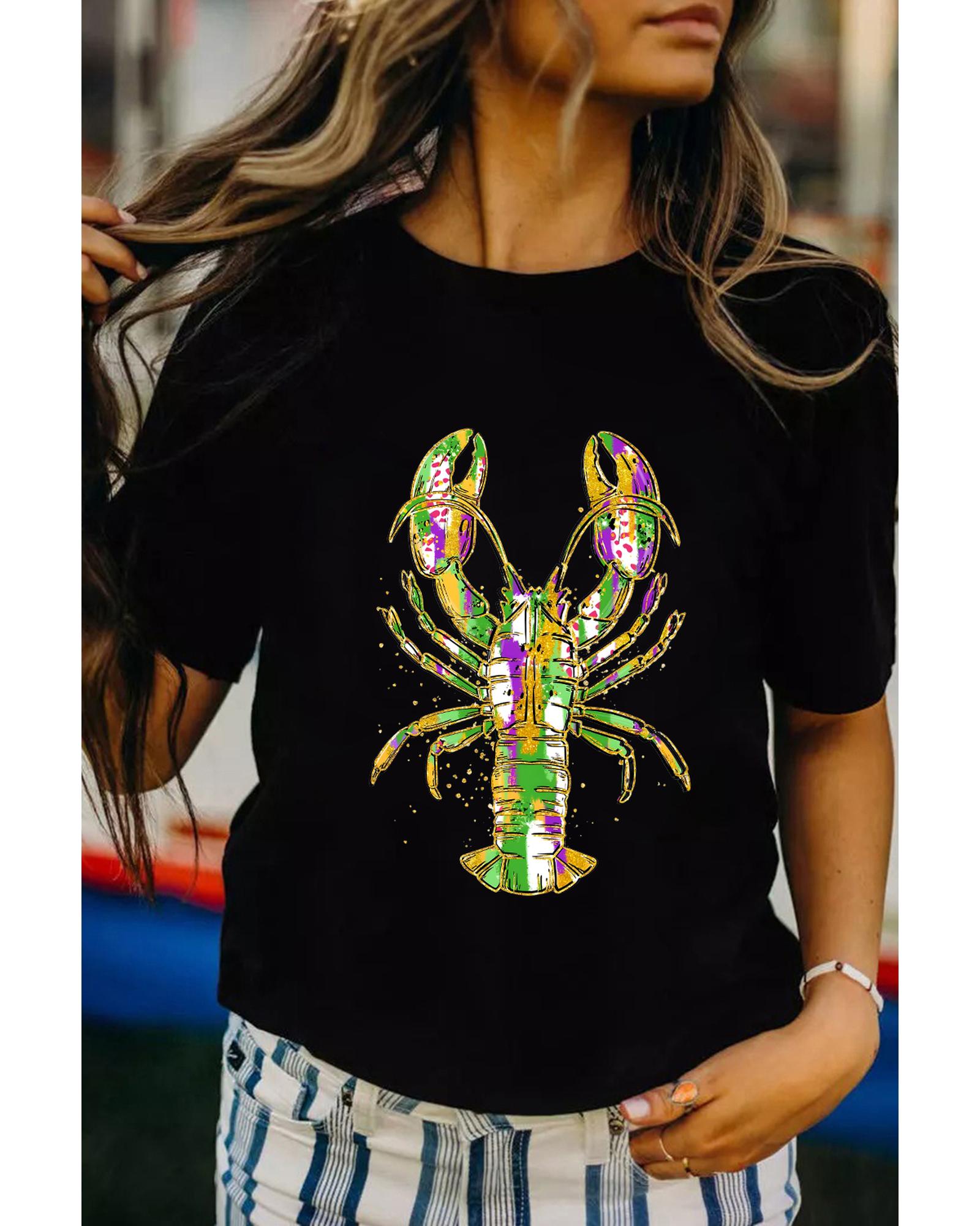 Black Mardi Gras Lobster Heat Transfer Graphic T Shirt – S