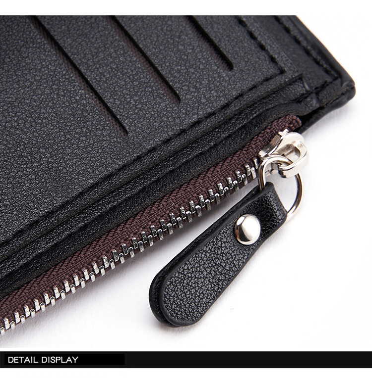 Black Men’s Slim Vertical Bifold Wallet – PU Leather Card Holder with Zipper Coin Pocket and ID Window