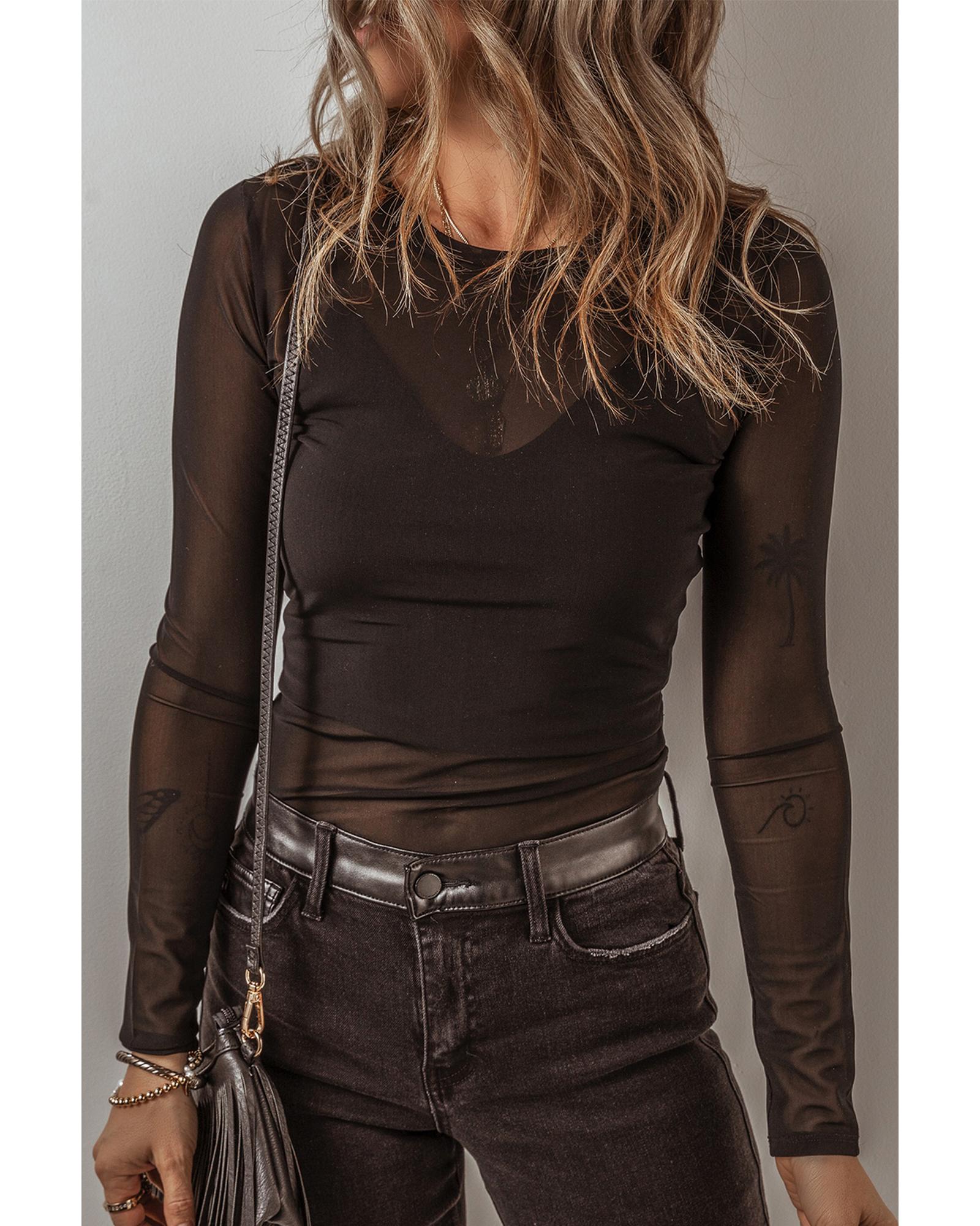- Black Mesh Long Sleeve Slim Fit Bodysuit