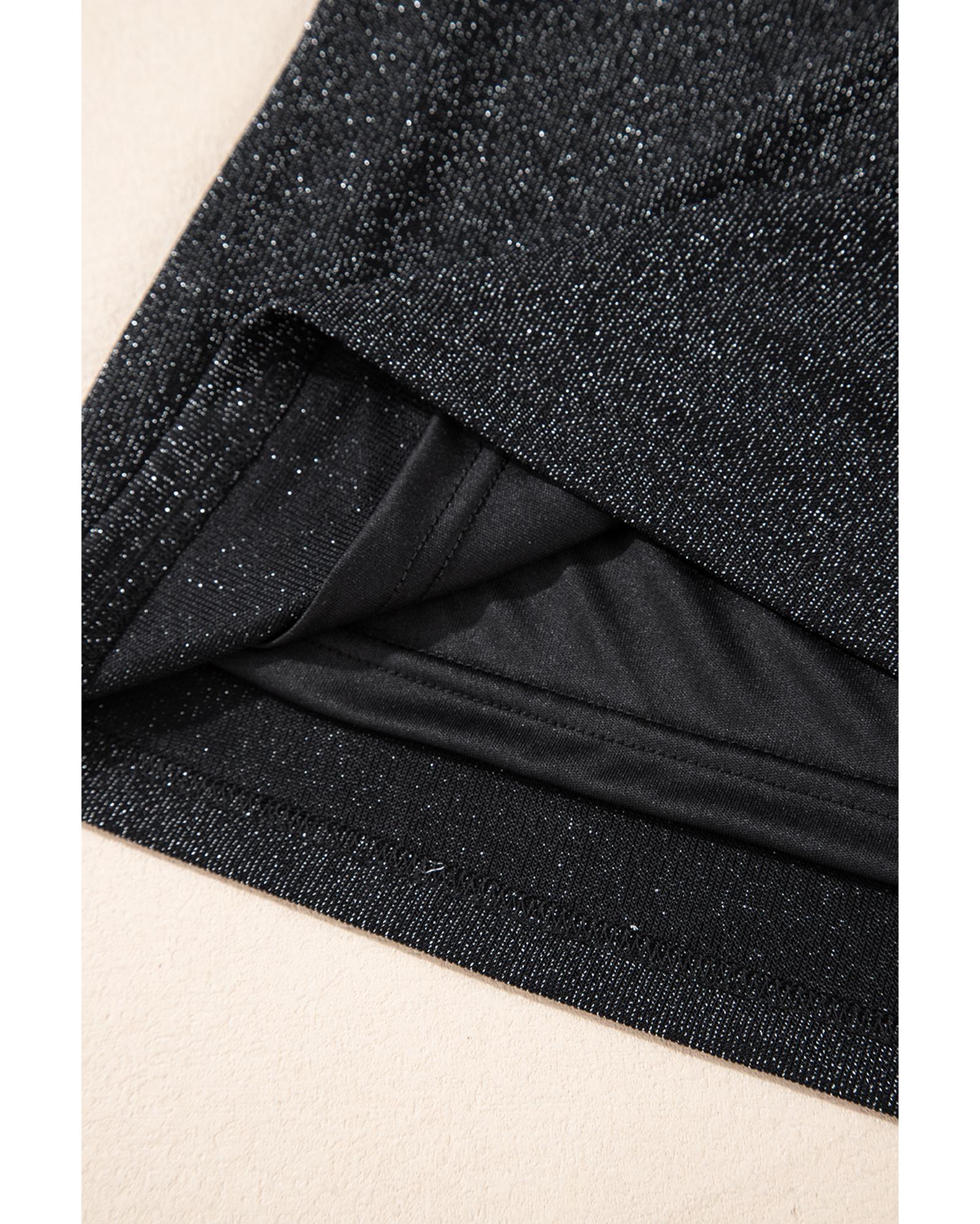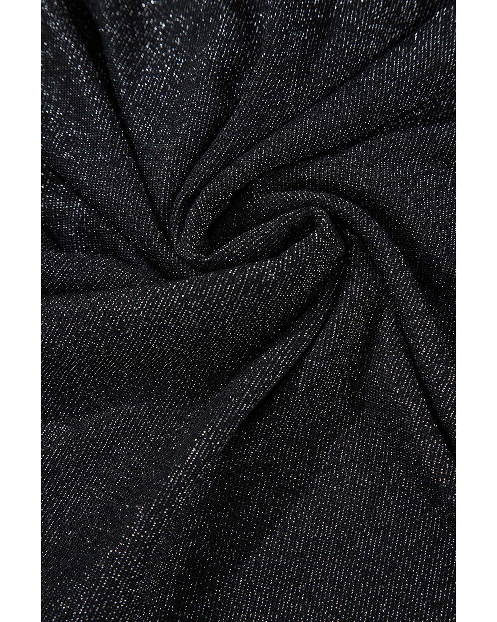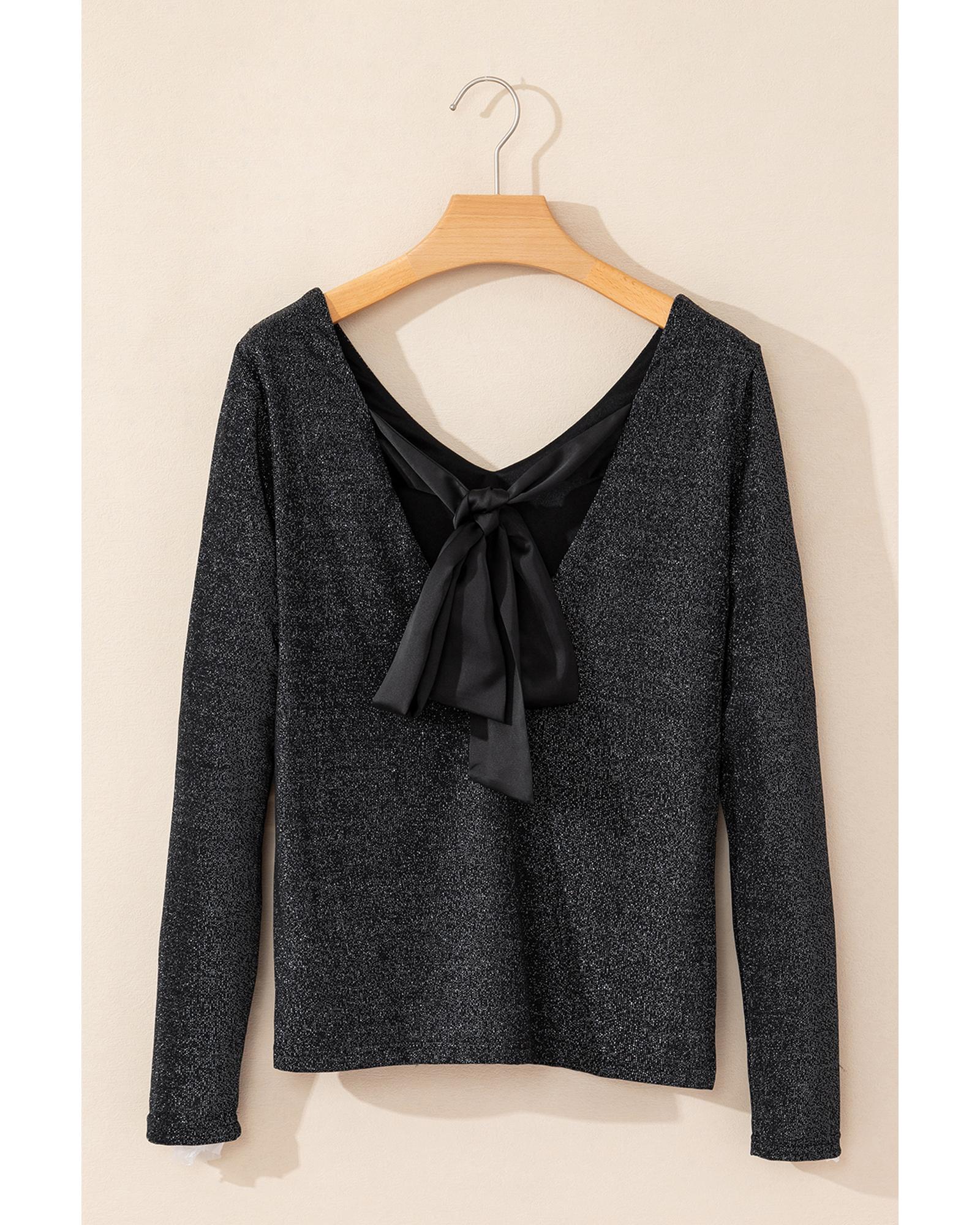 Black Metallic Bowknot Open Back V Neck Top – M