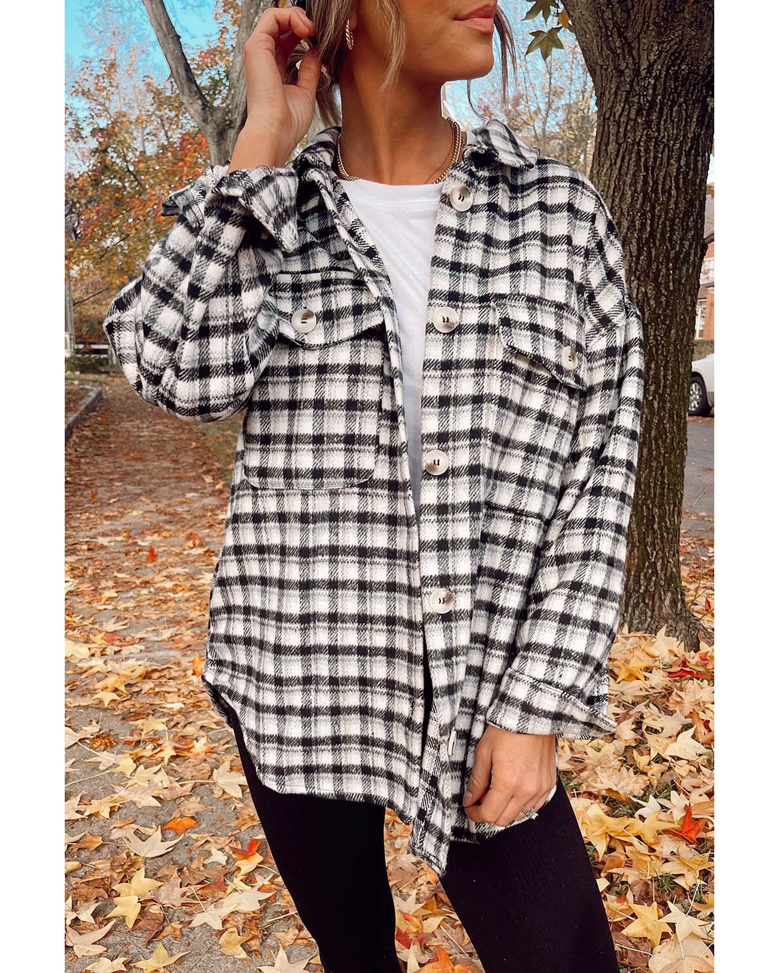 - Stylish black plaid print tunic shacket